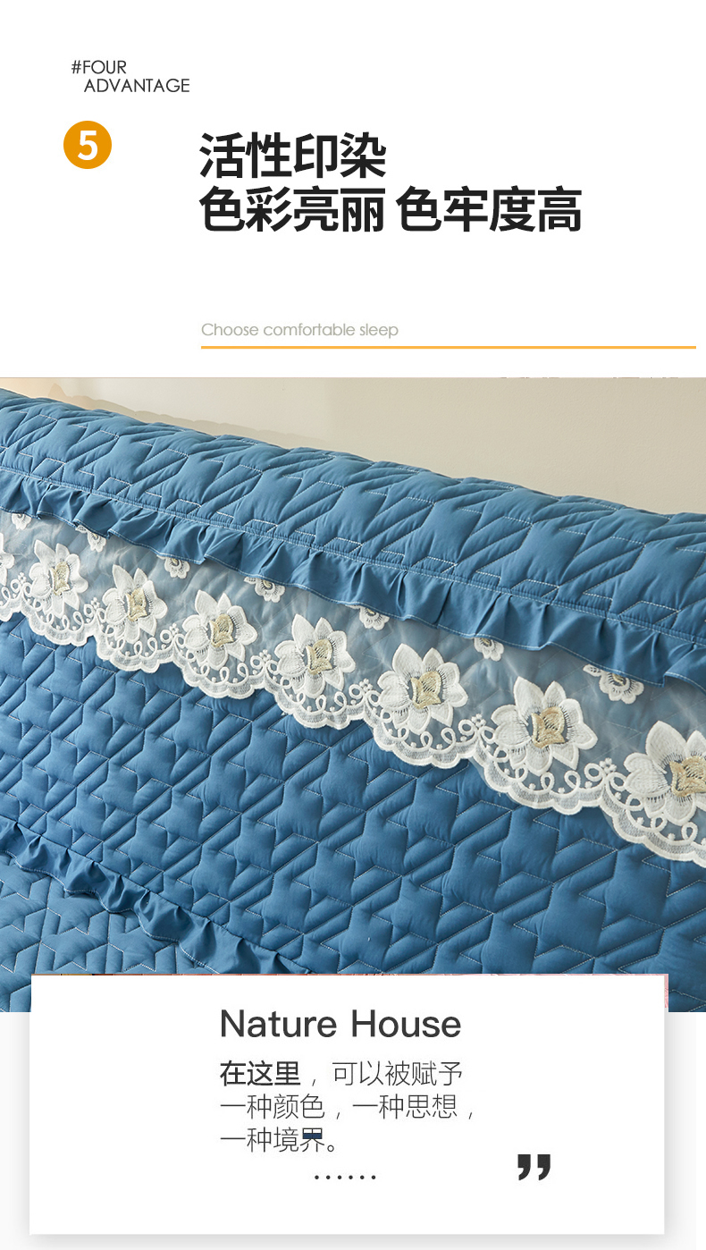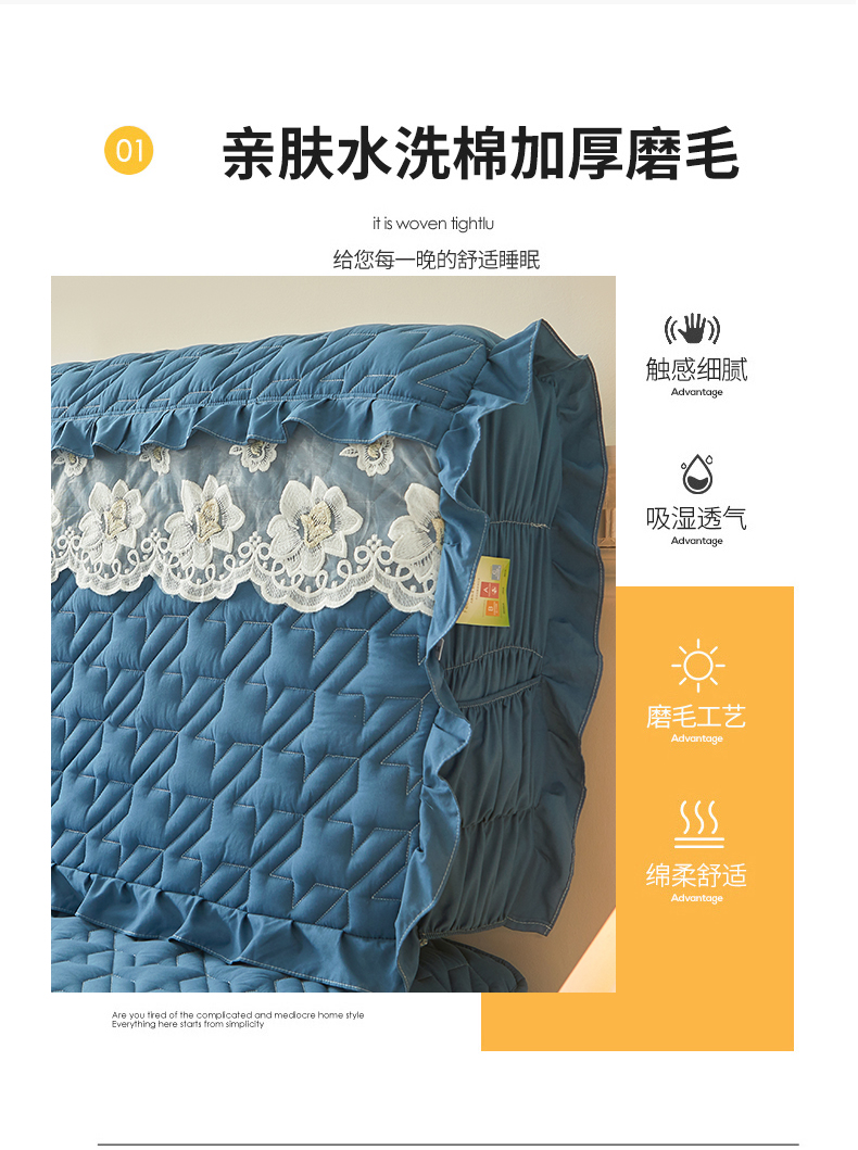 商品名称:(总)十个点家纺 2025新款千鸟格磨毛绗缝夹棉纯色花边床头罩