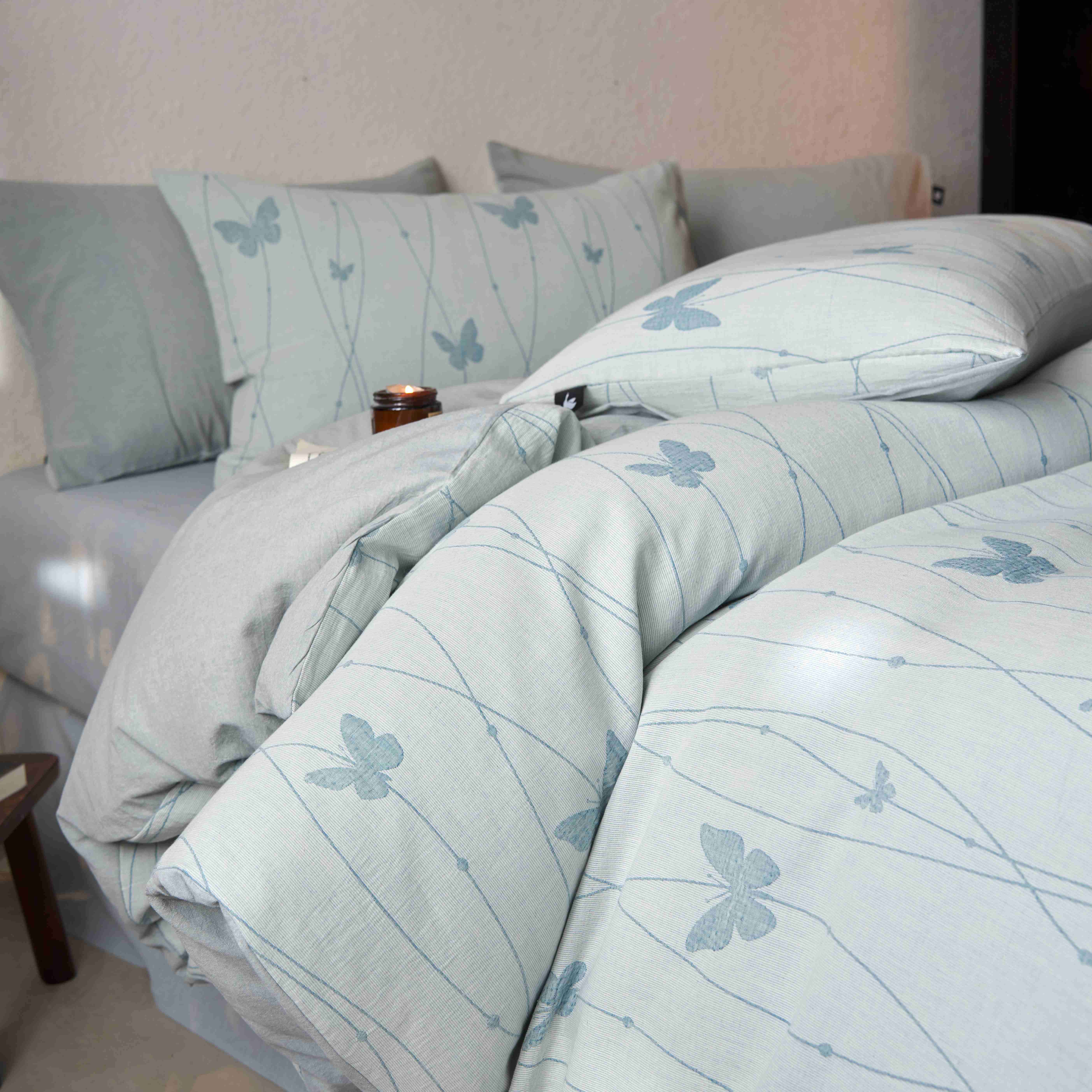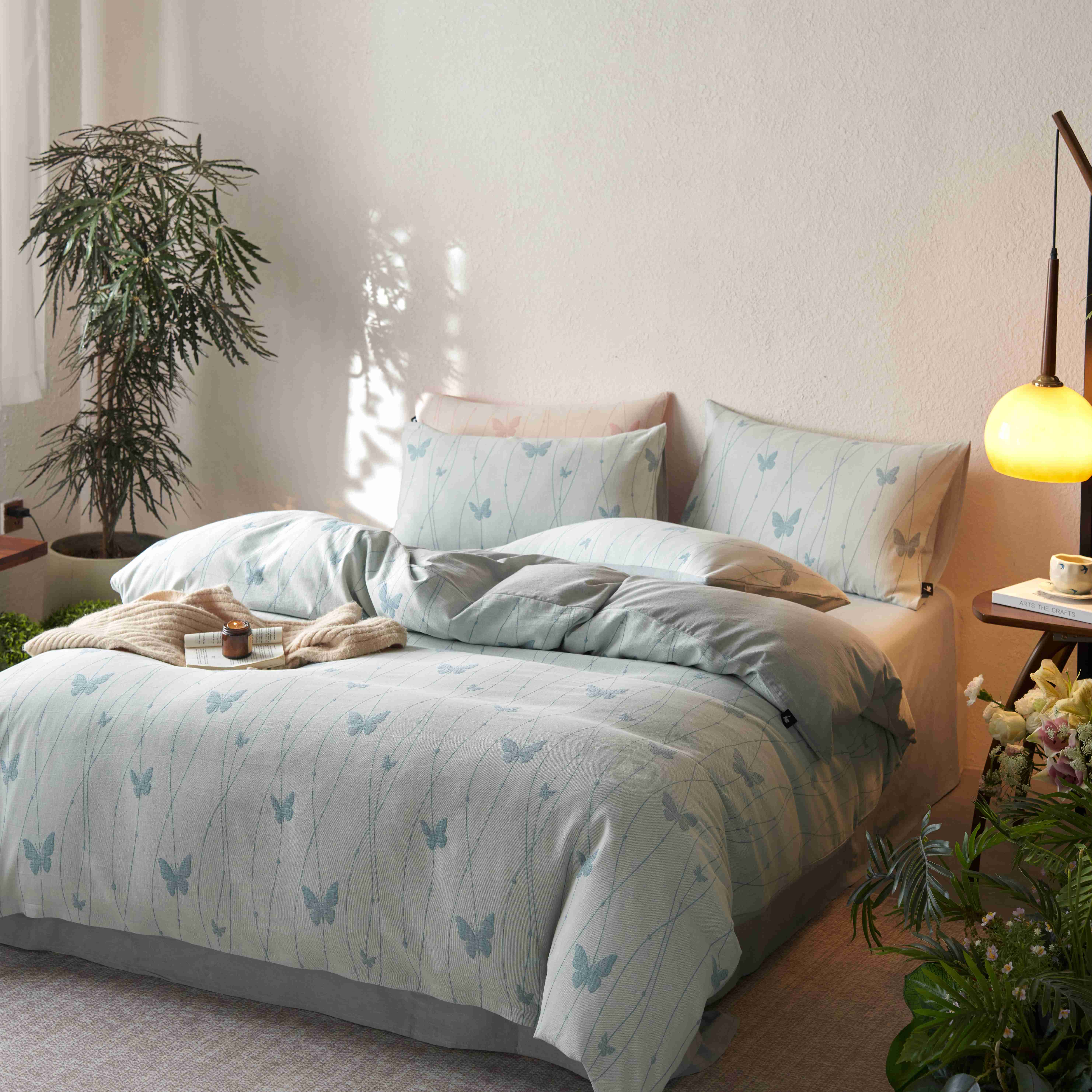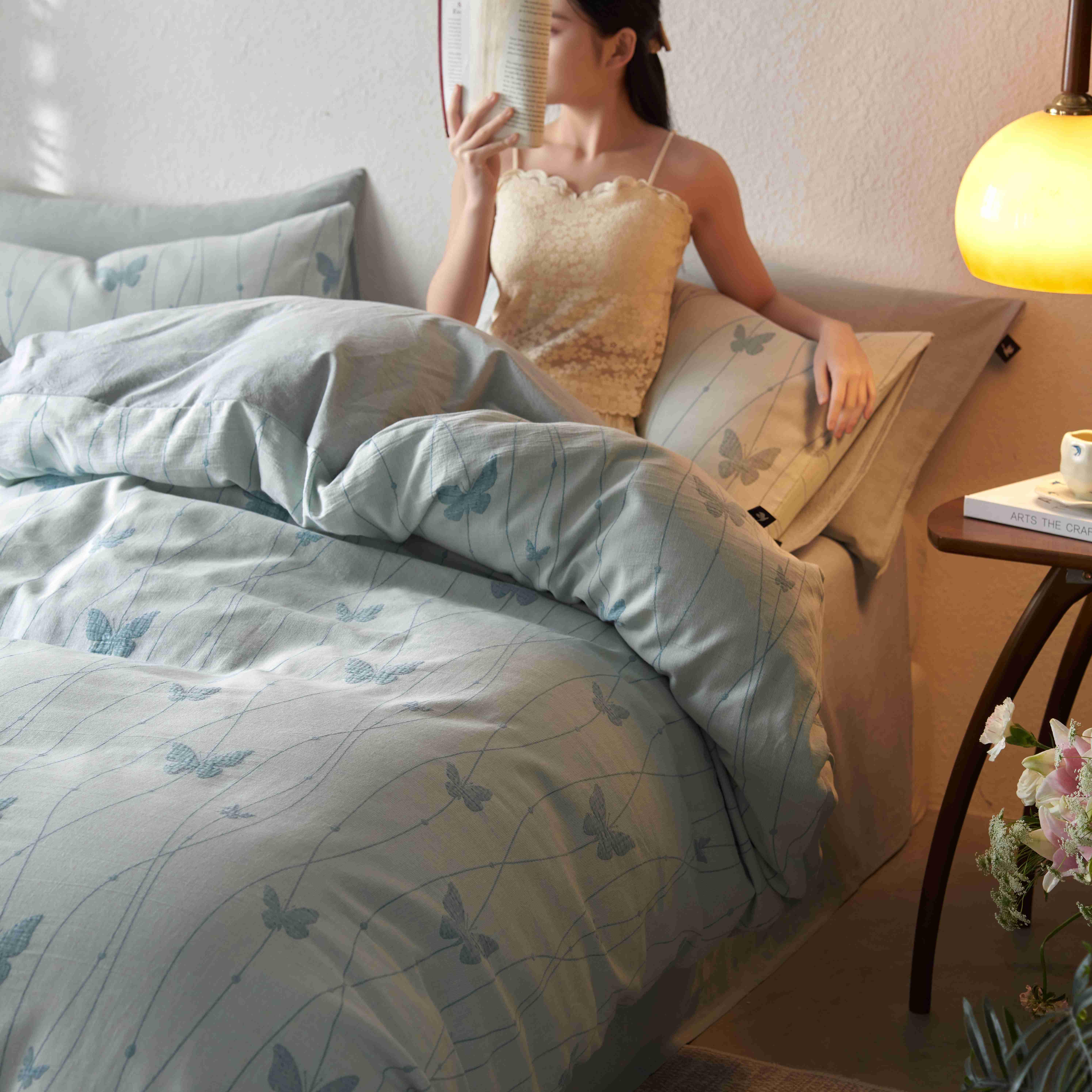 (总)安莱生活 2025春夏新款空气层色织提花四件套蝴蝶美梦系列,蝴蝶美梦-灰紫,蝴蝶美梦-卡其,蝴蝶美梦-蓝黄,蝴蝶美梦-深灰