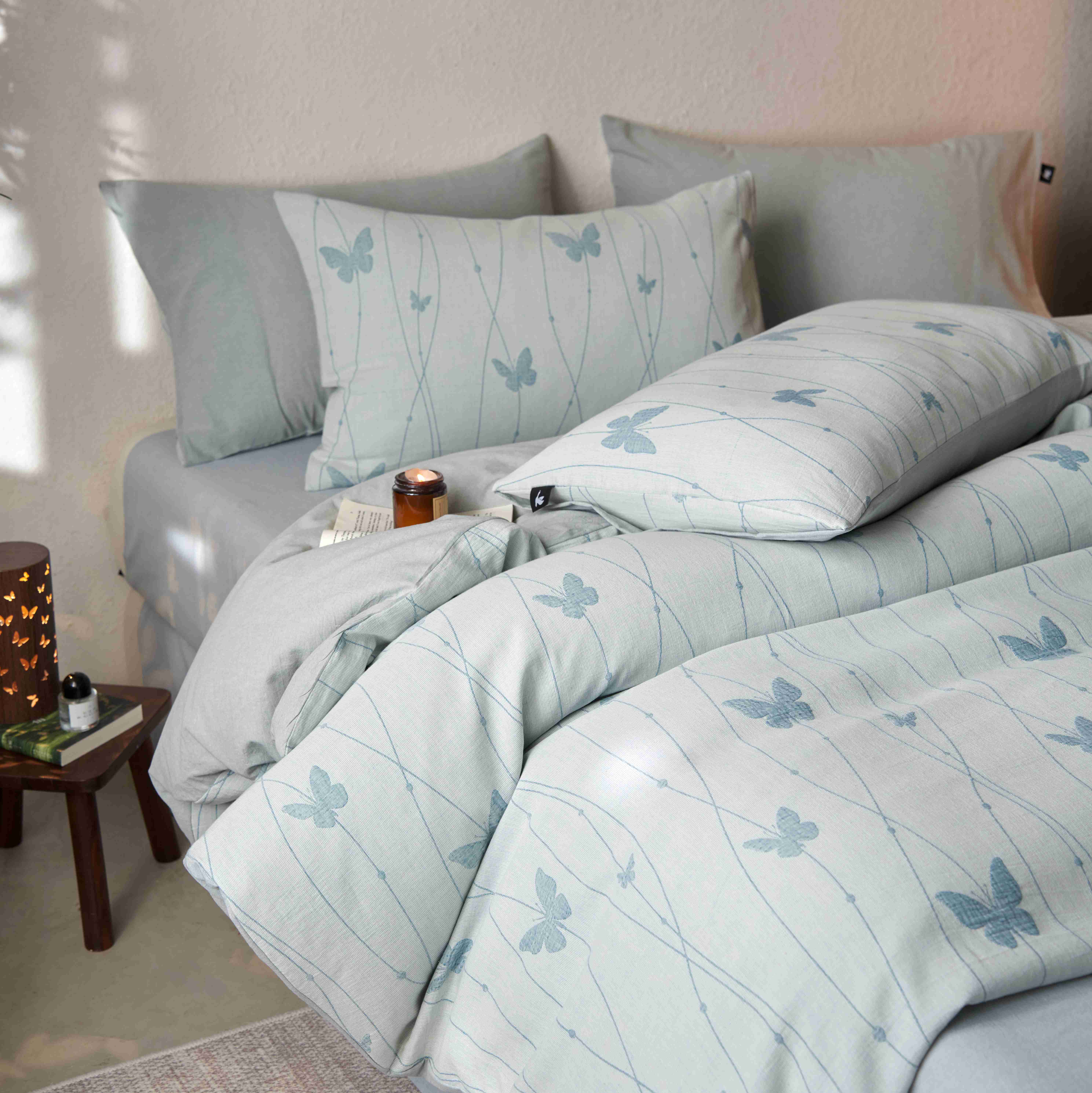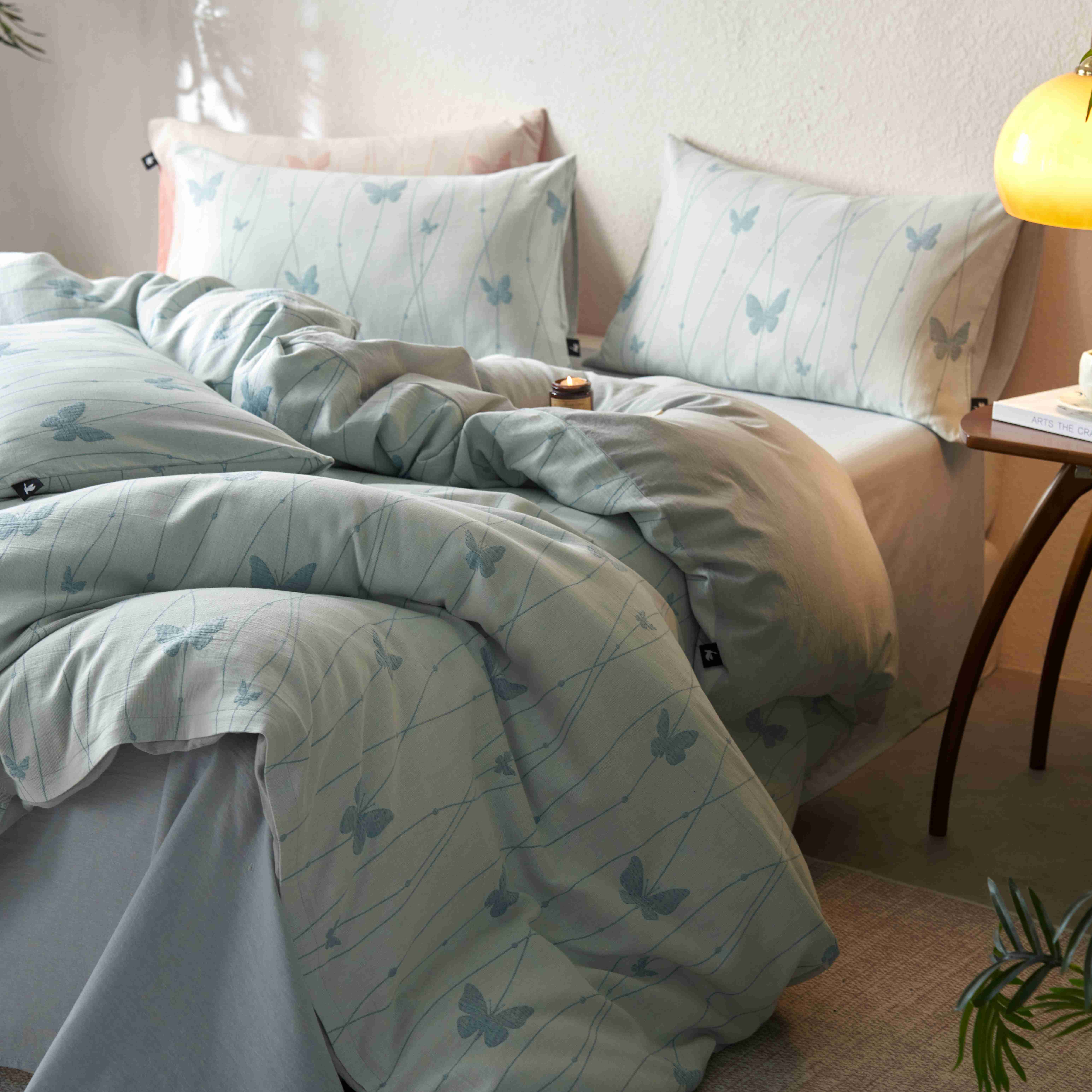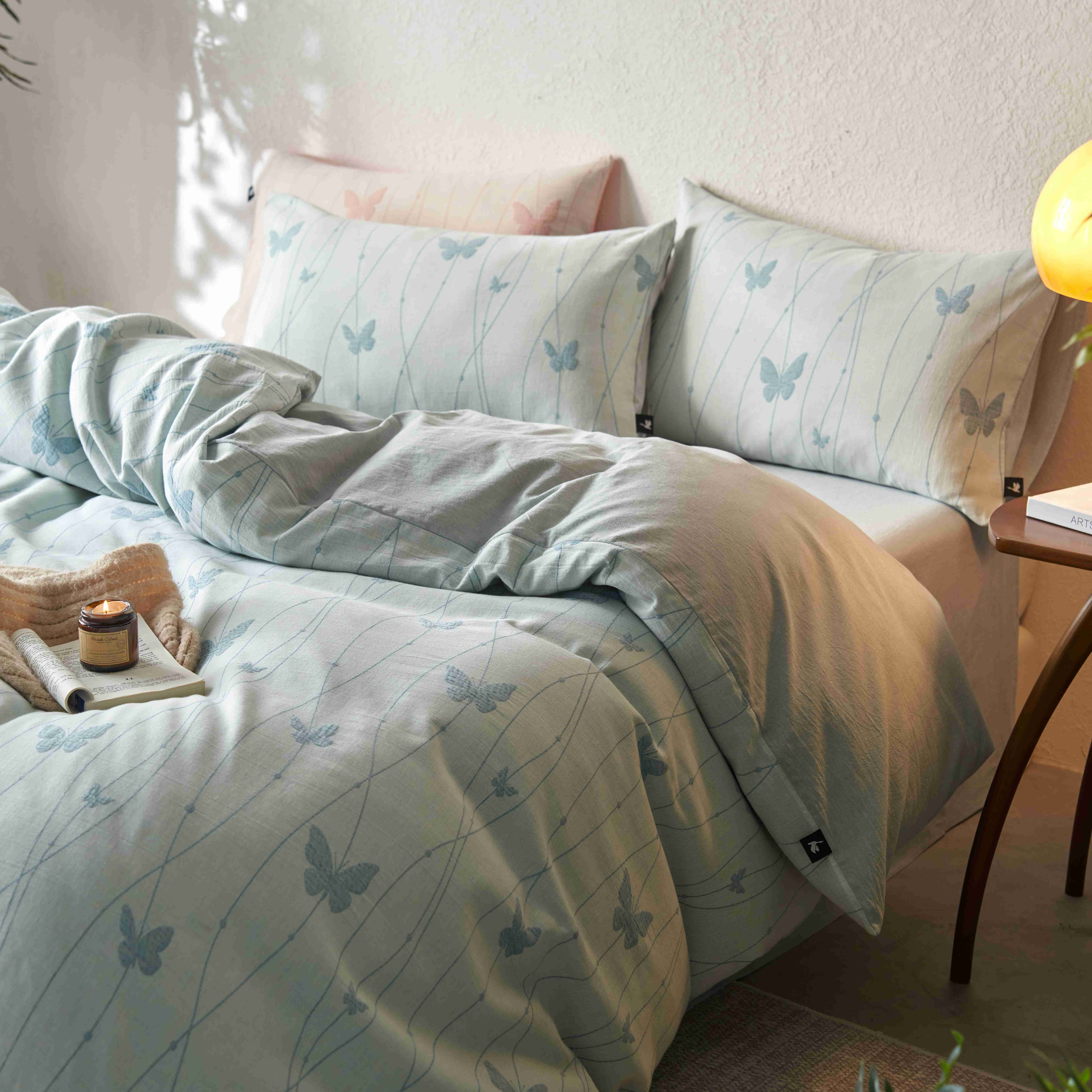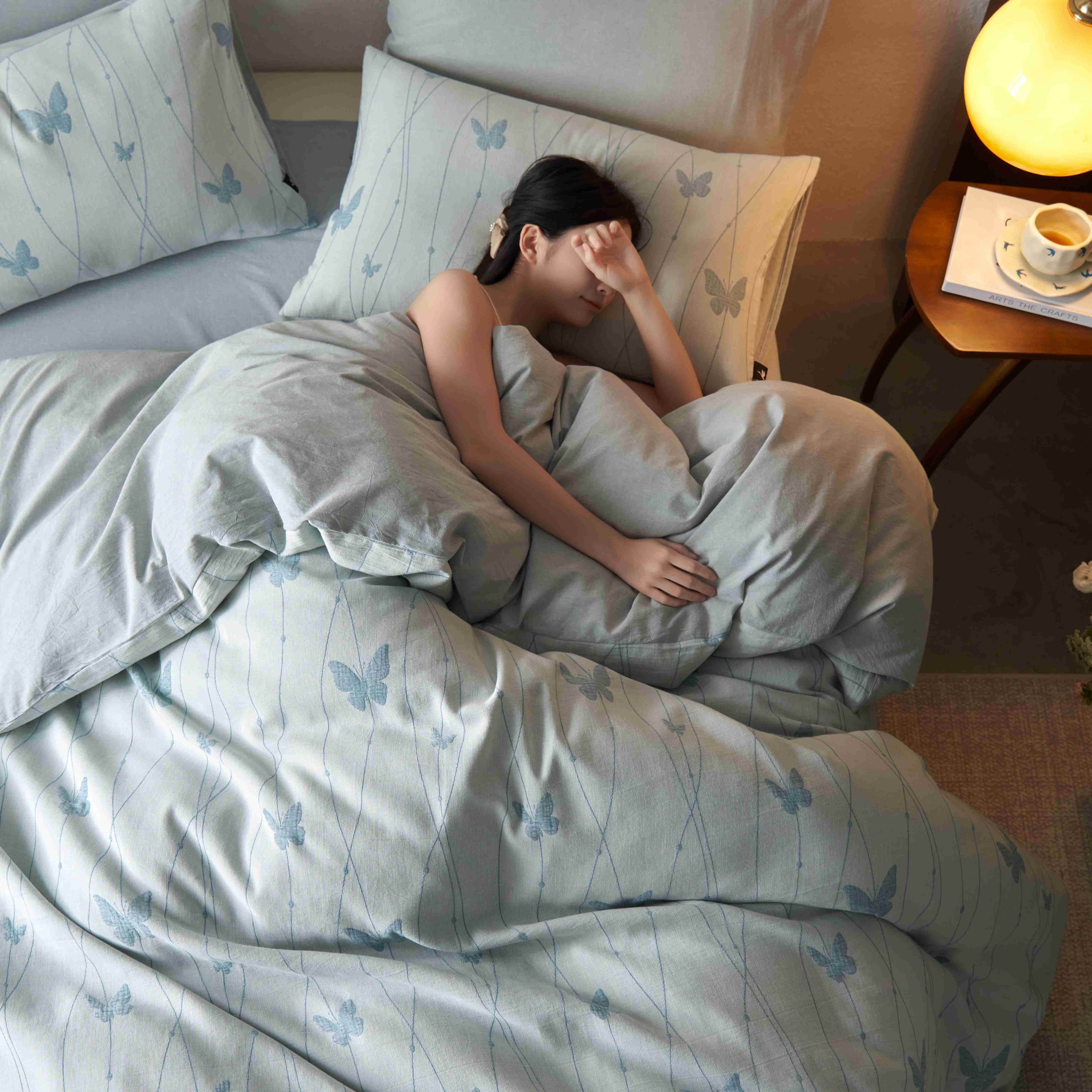 (总)安莱生活 2025春夏新款空气层色织提花四件套蝴蝶美梦系列,蝴蝶美梦-灰紫,蝴蝶美梦-卡其,蝴蝶美梦-蓝黄,蝴蝶美梦-深灰
