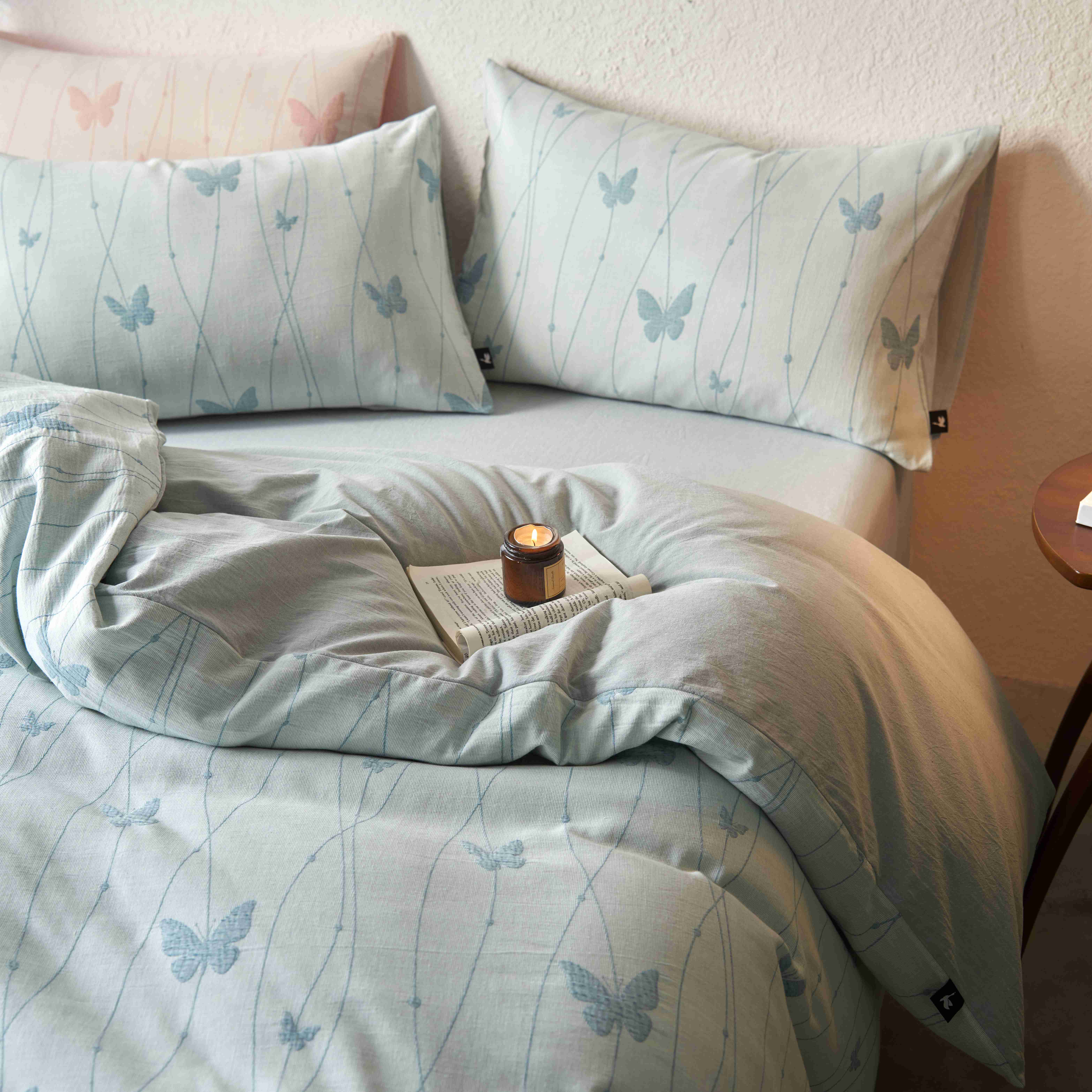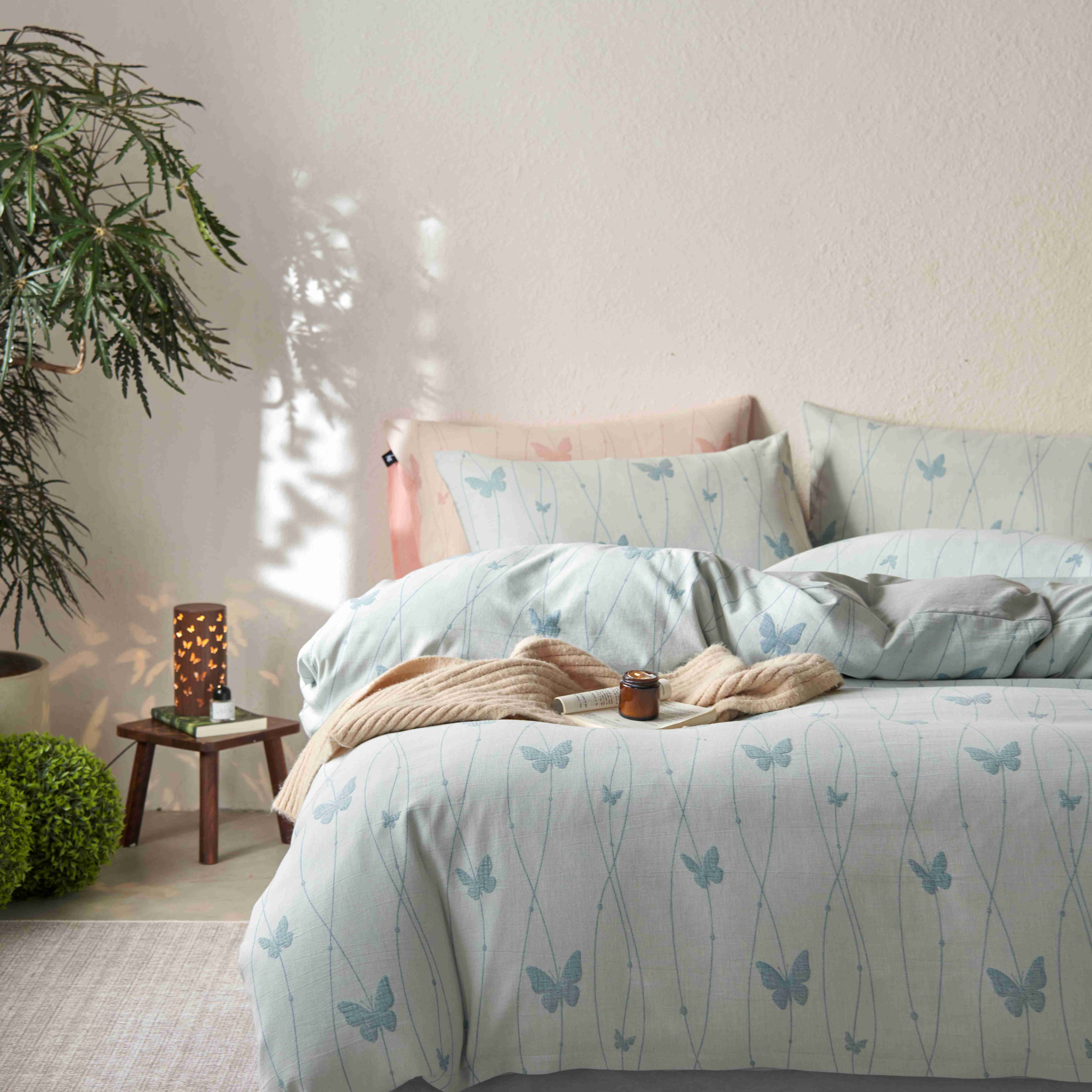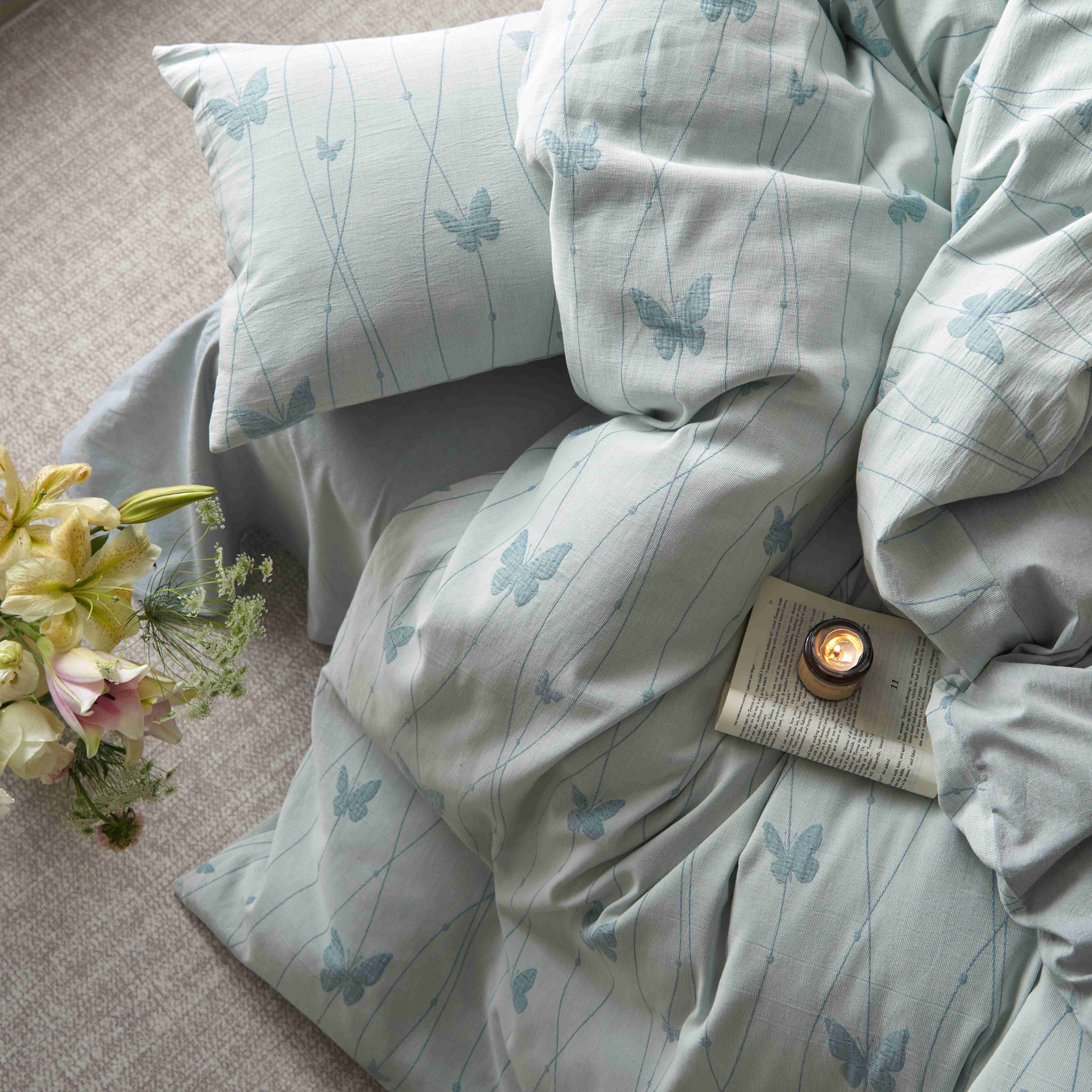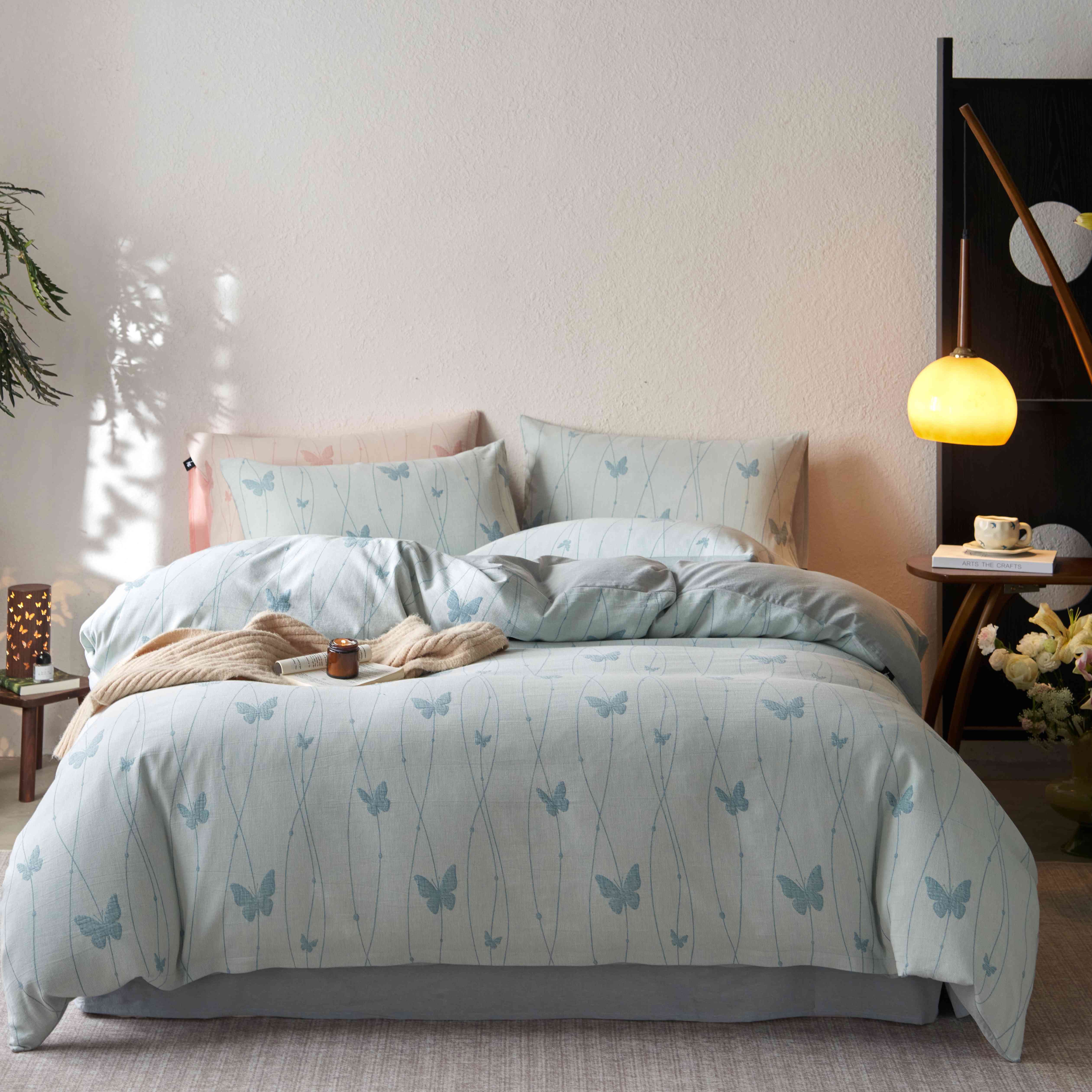 商品名称:安莱生活 2025新款60s双层纱色织大提花蝶舞翩翩四件套系列 蝶舞翩翩-浅蓝