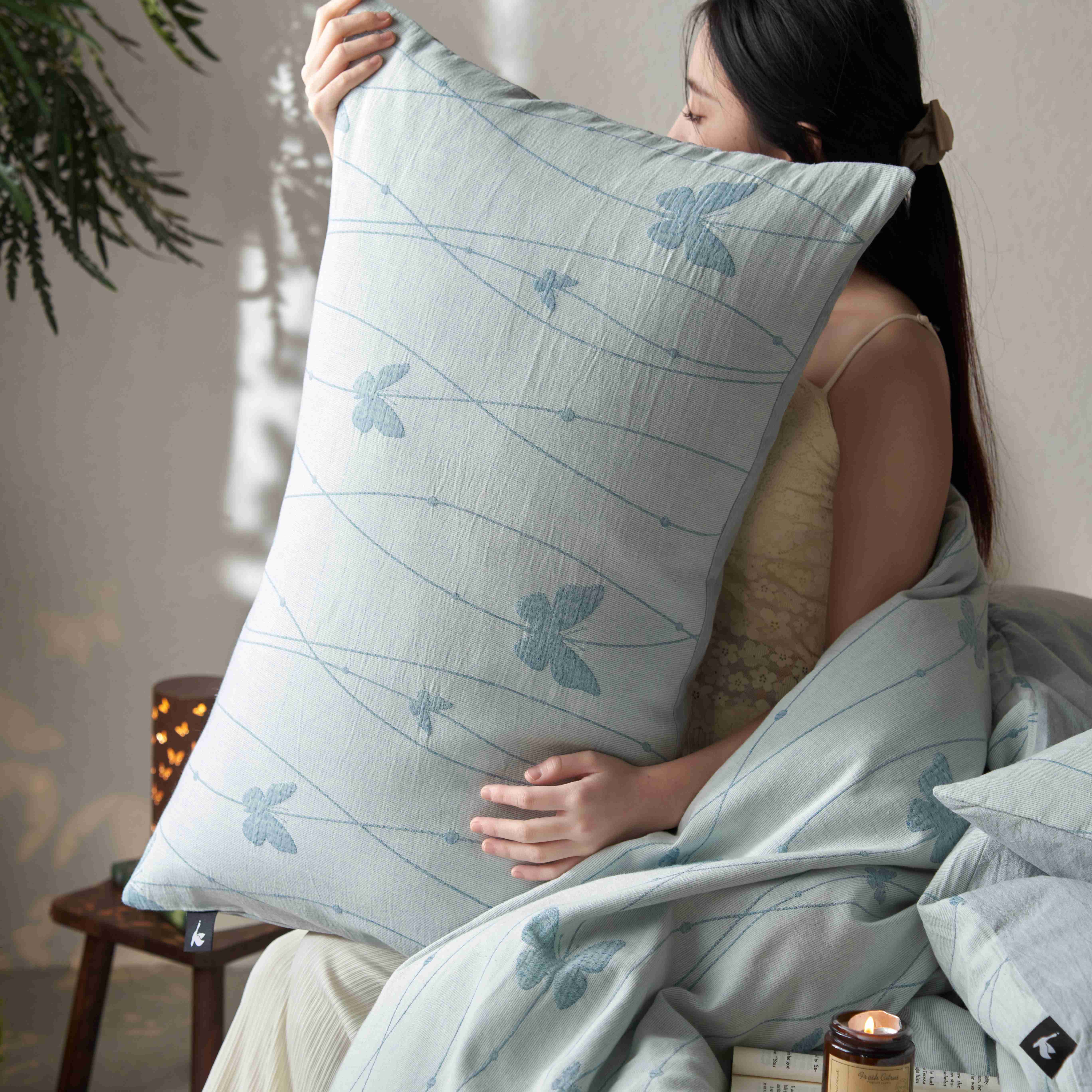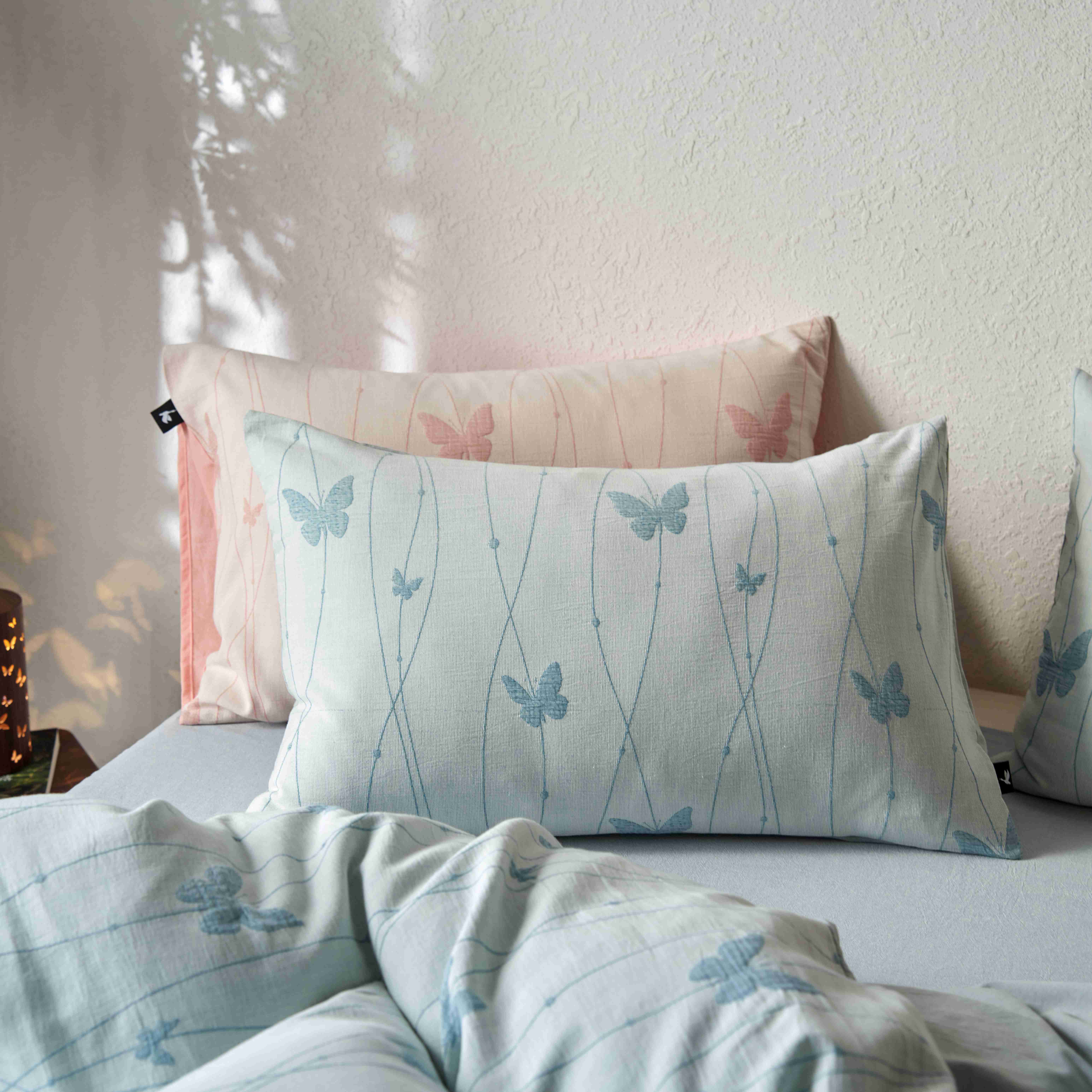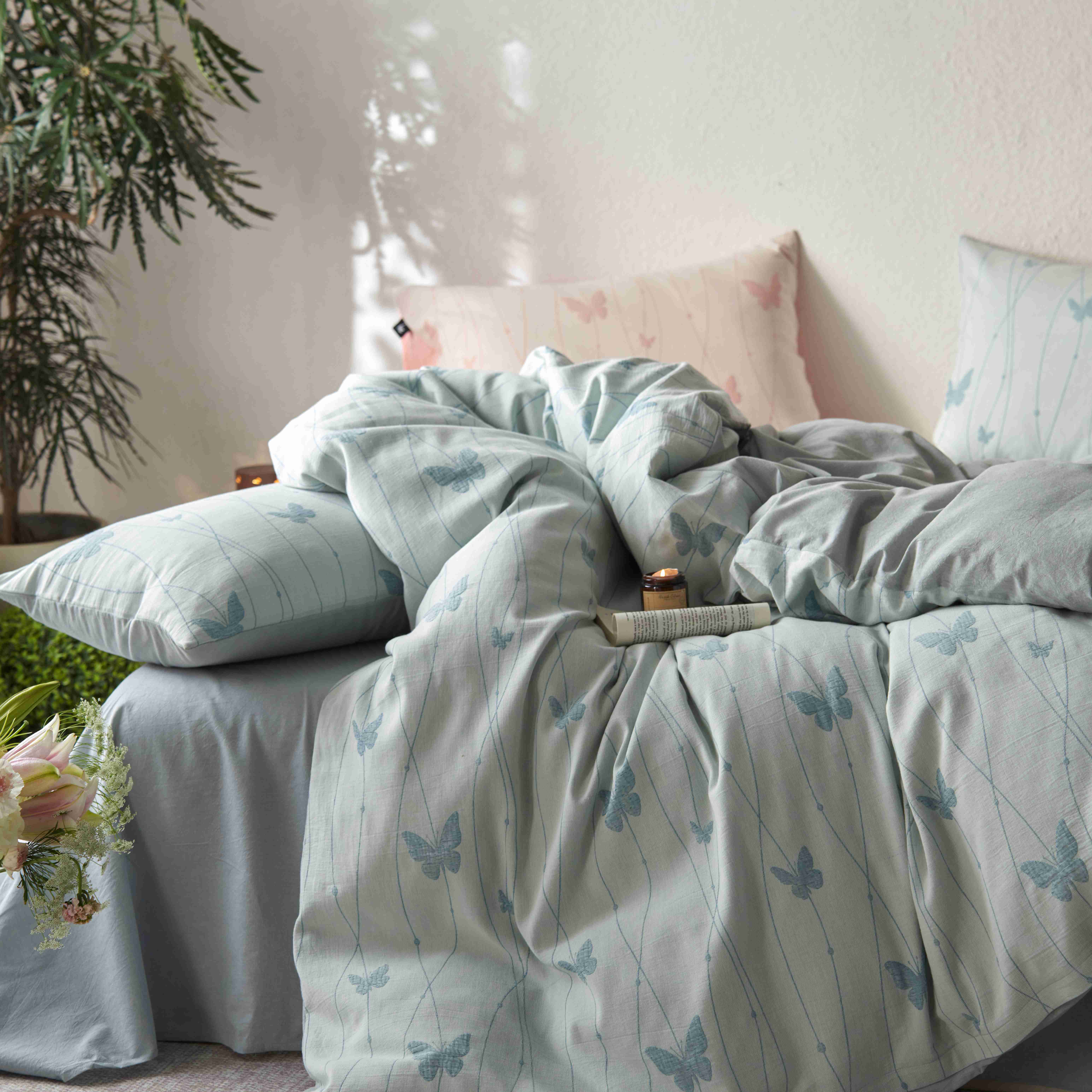 安莱生活 2025新款60s双层纱色织大提花蝶舞翩翩四件套系列 蝶舞翩翩-浅蓝