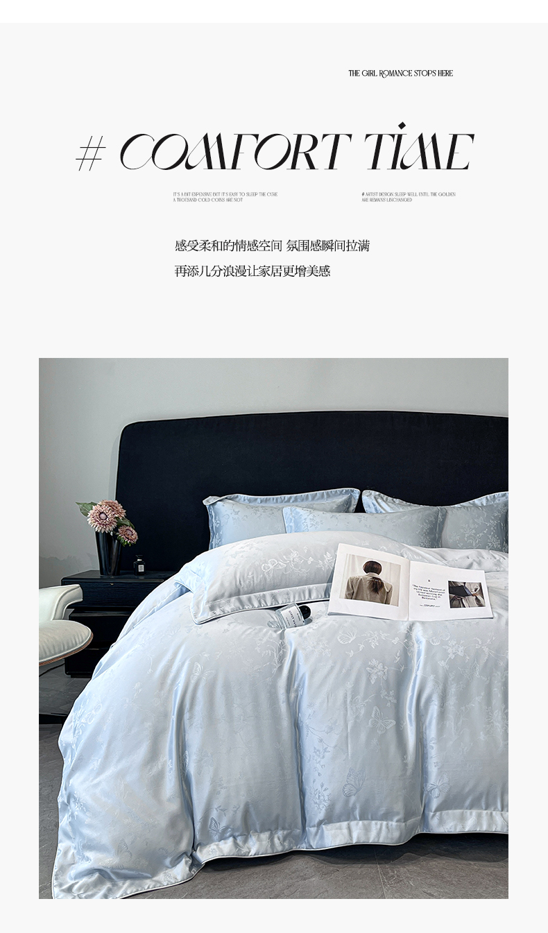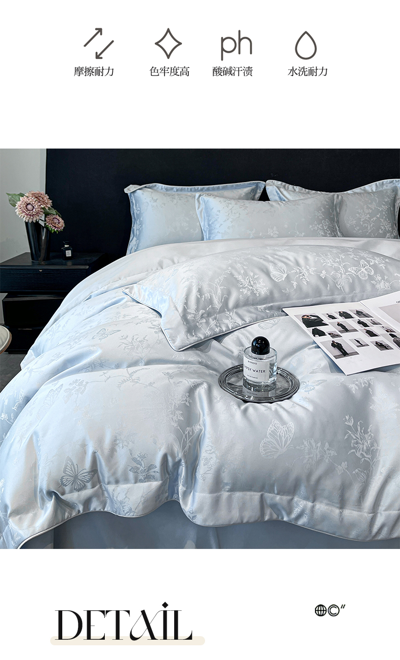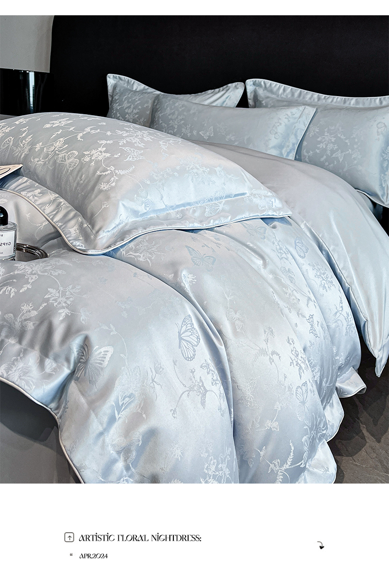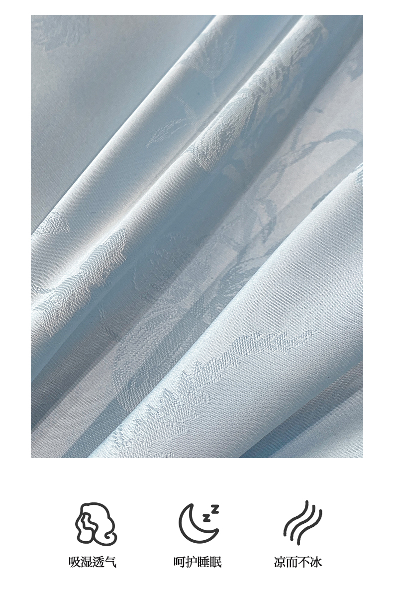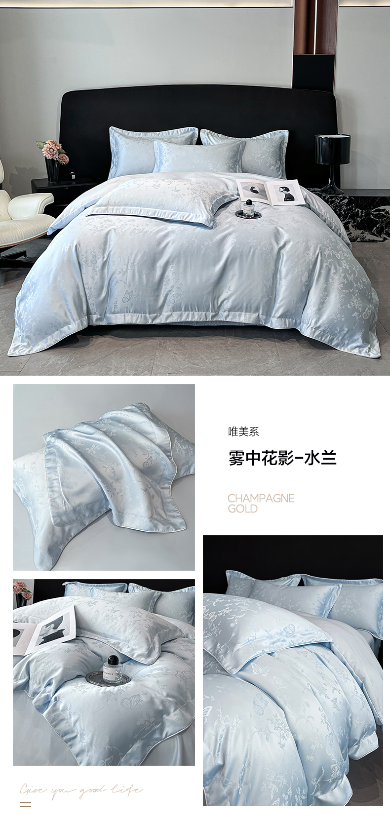 商品名称:米彩家纺 2025新款A类水洗真丝天丝提花四件套 雾中花影水兰