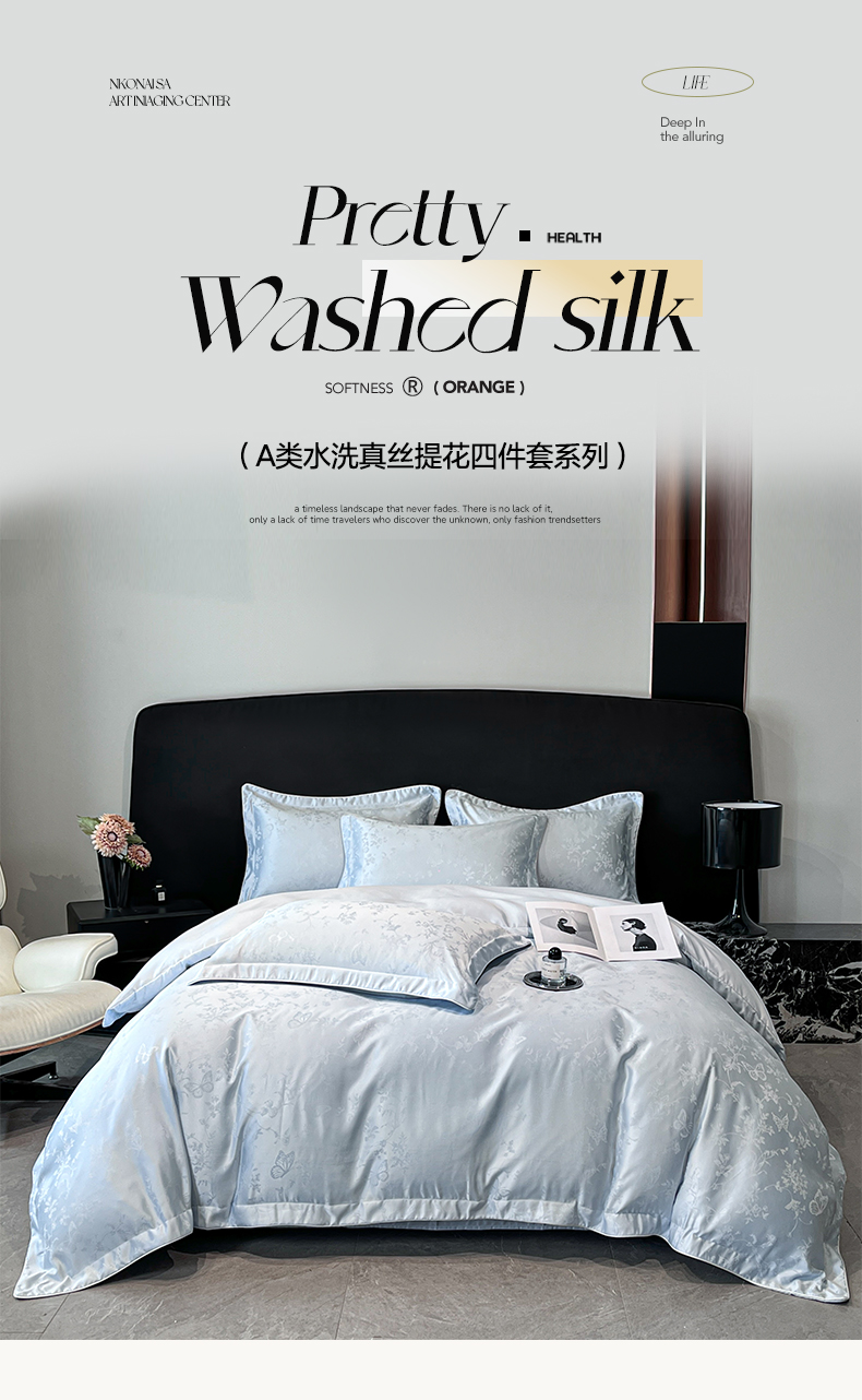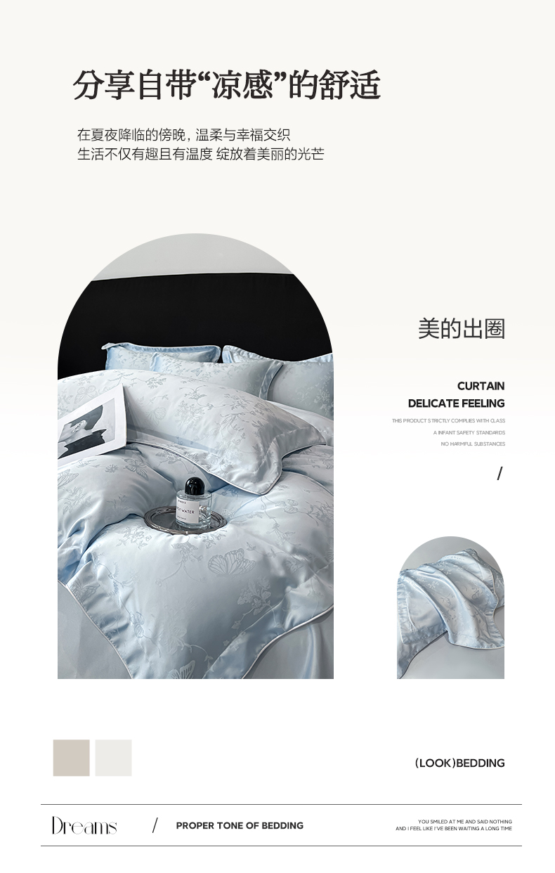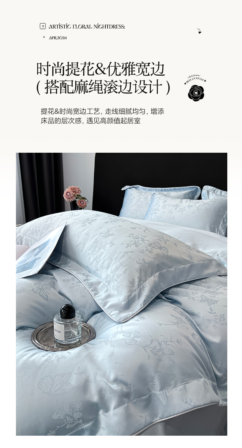 米彩家纺 2025新款A类水洗真丝天丝提花四件套 雾中花影水兰