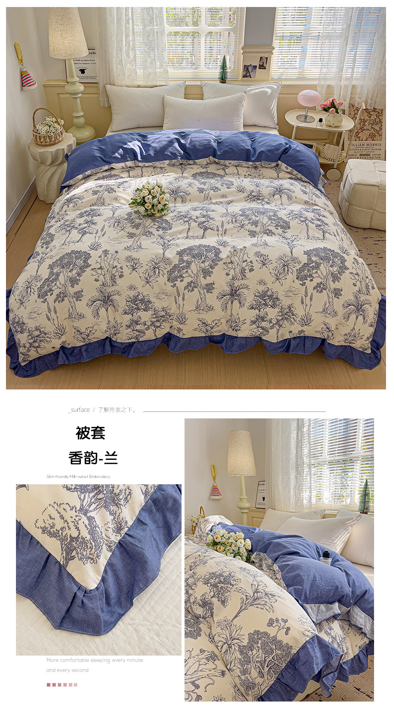 商品名称:忆生活家纺 2025新款韩版全棉花边款-单被套系列 香韵-兰