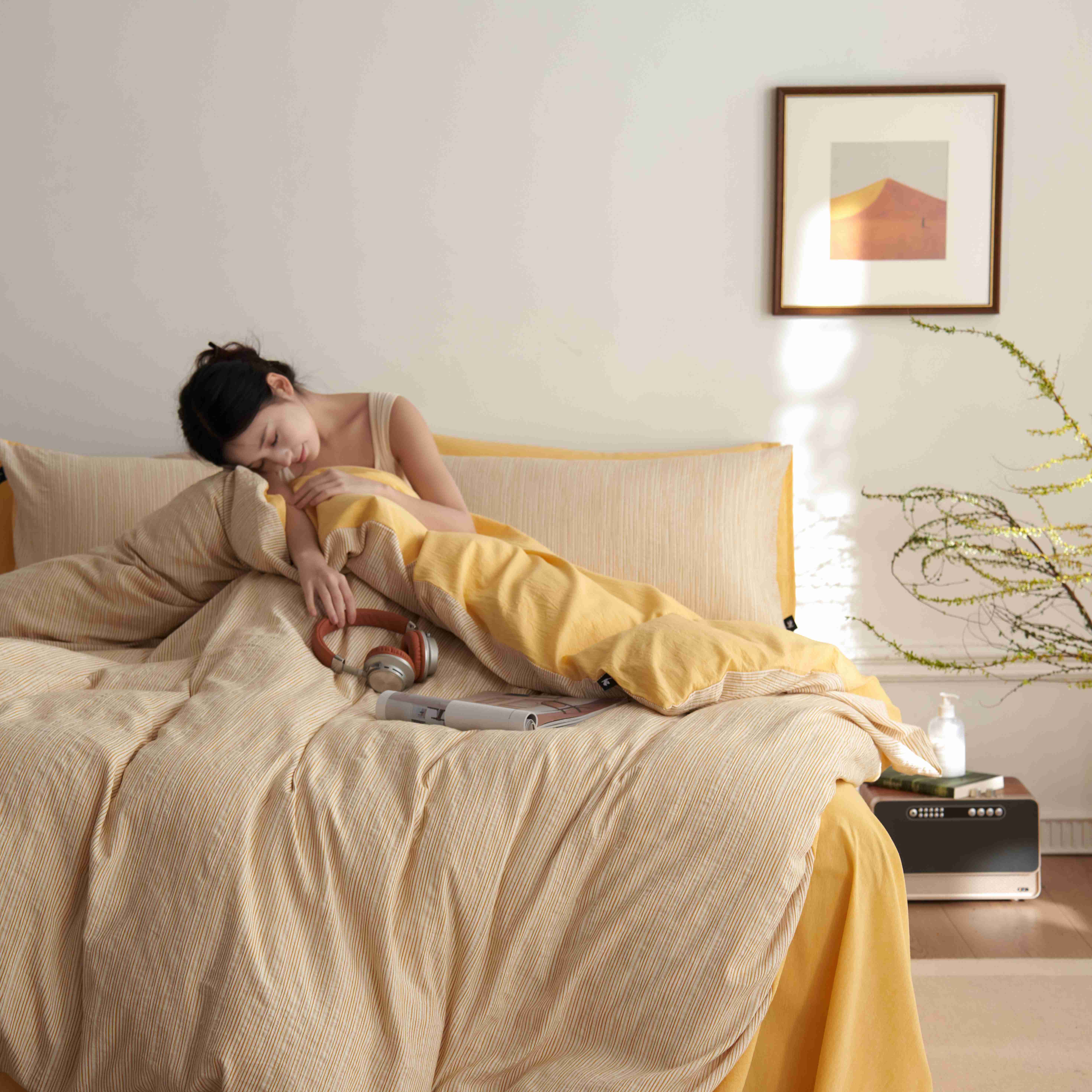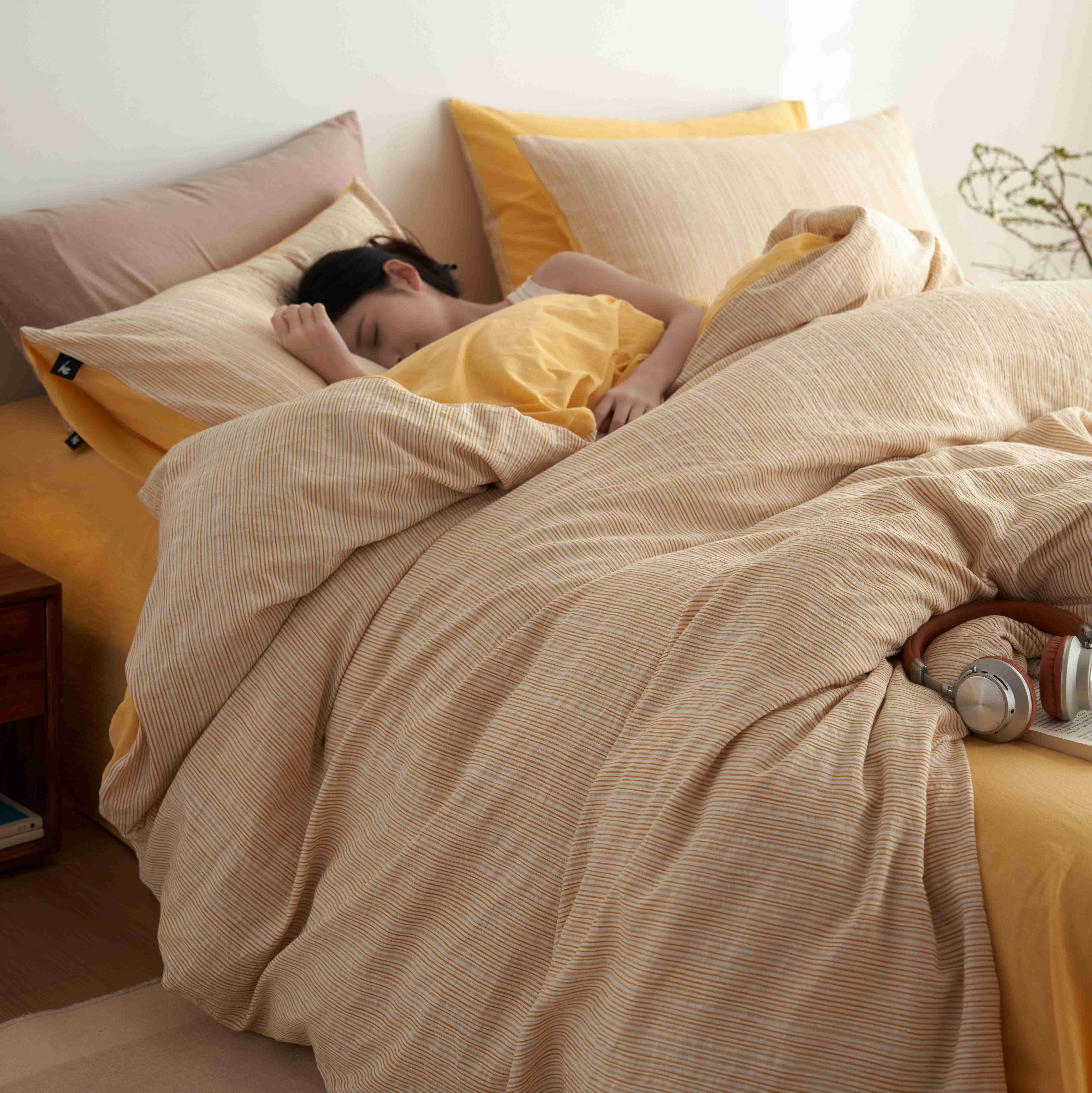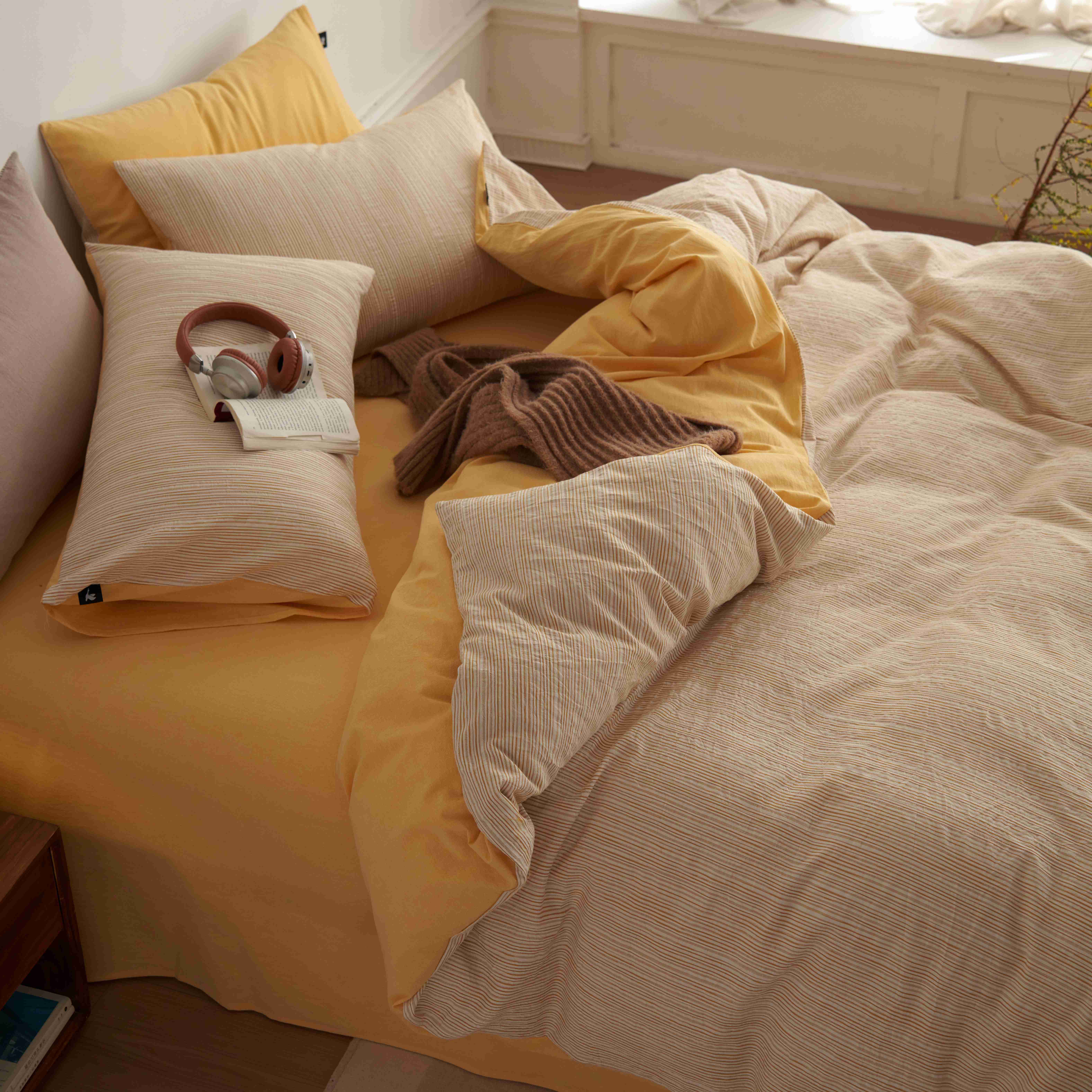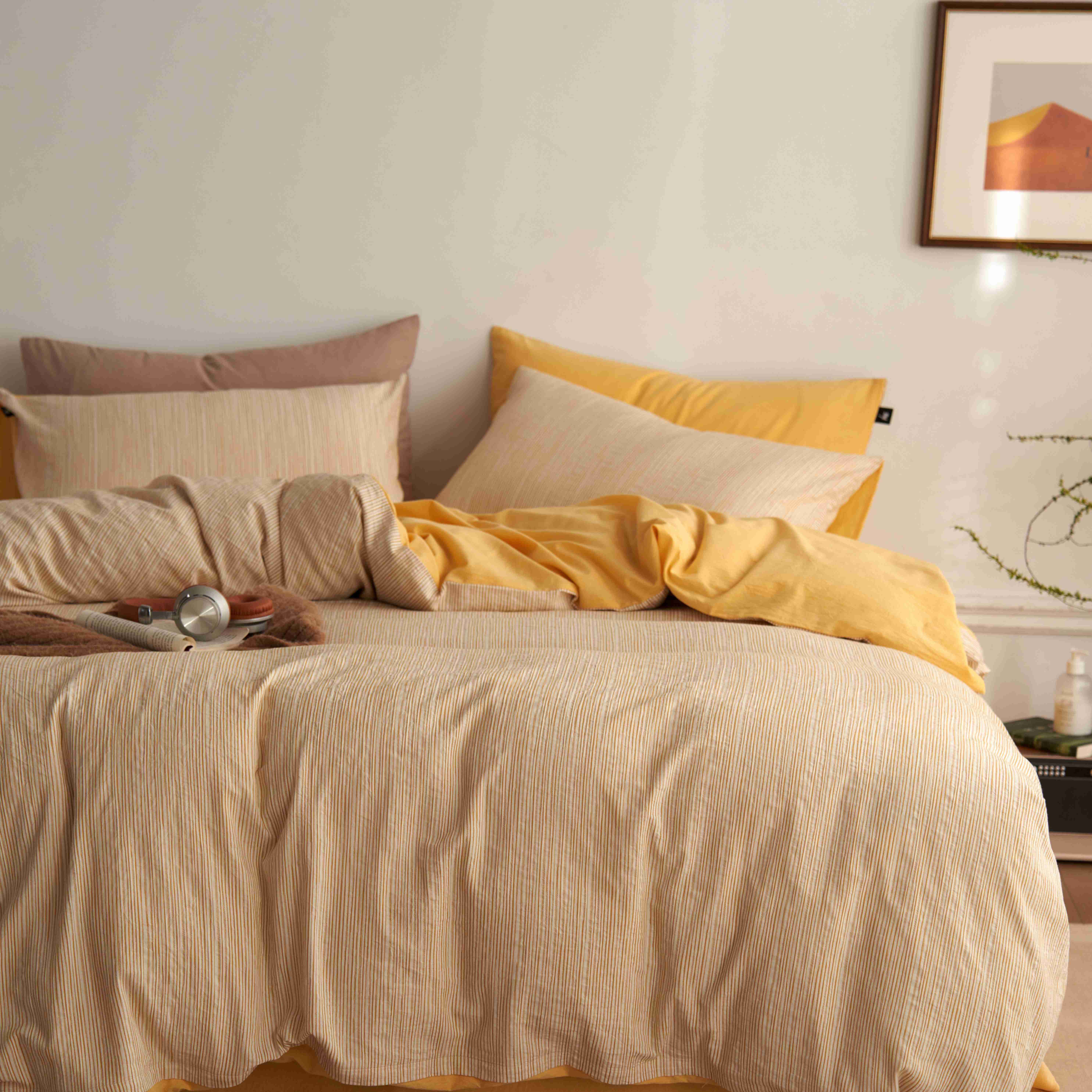 商品名称:安莱生活 2025新款60s色织大提花秘境条纹四件套系列 驼黄混条