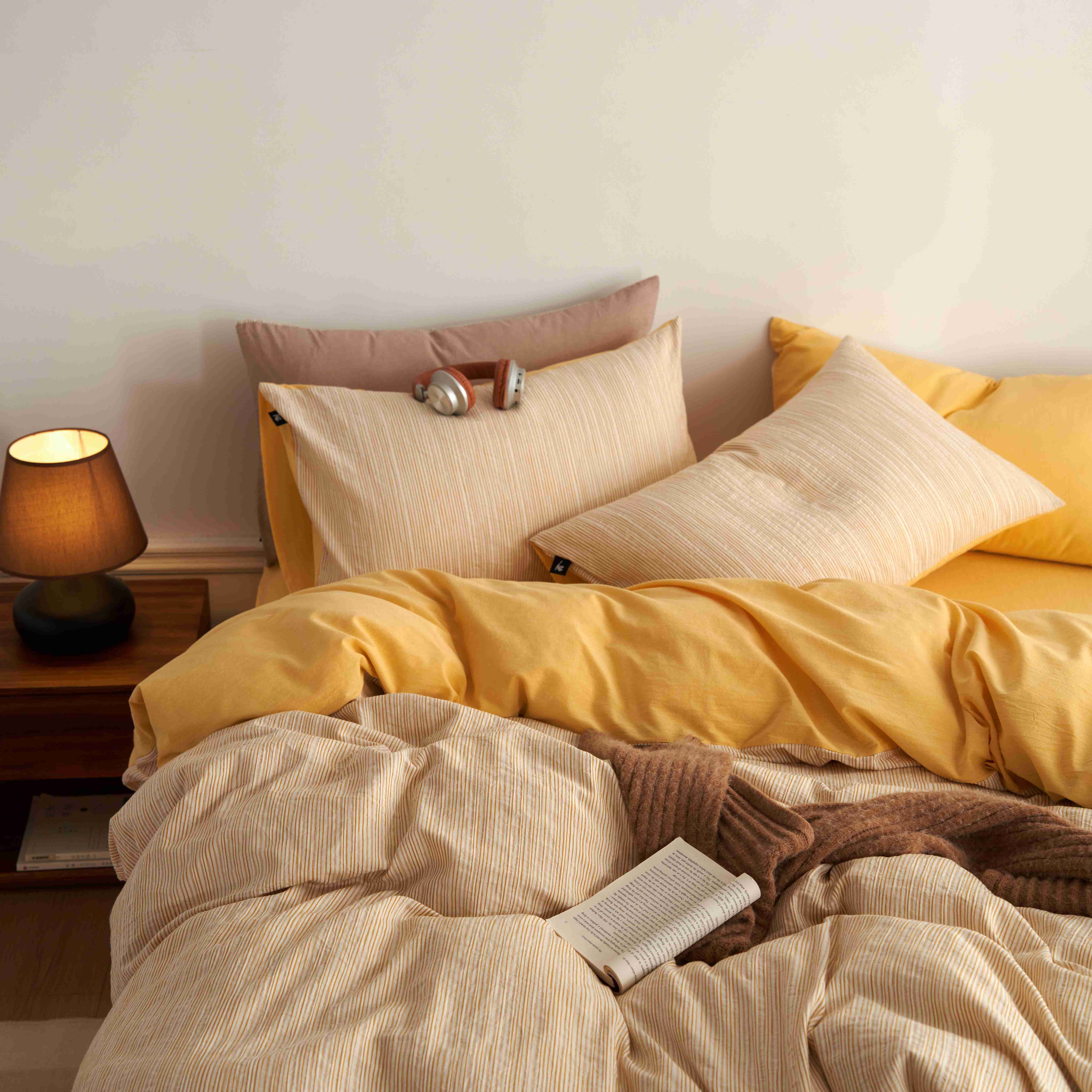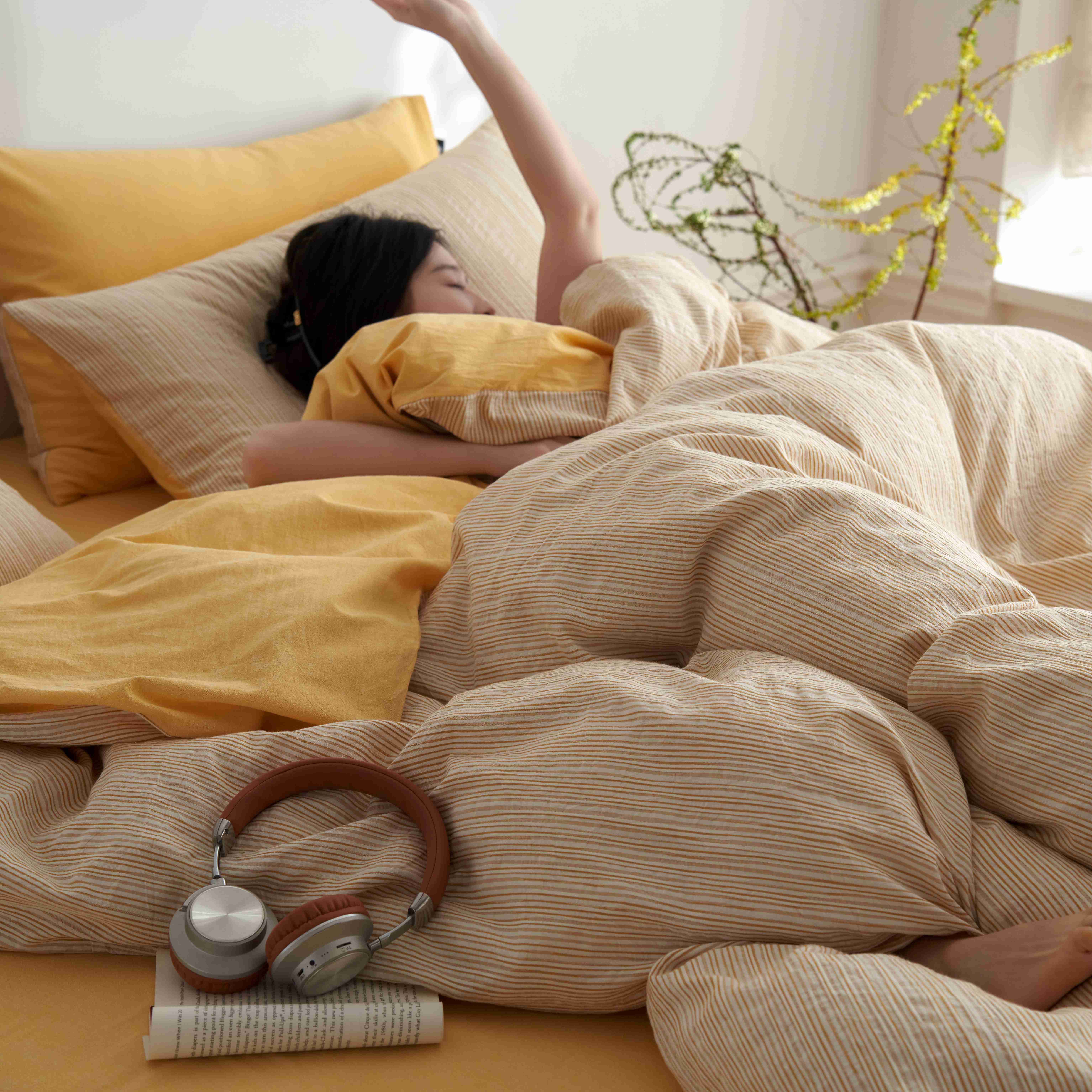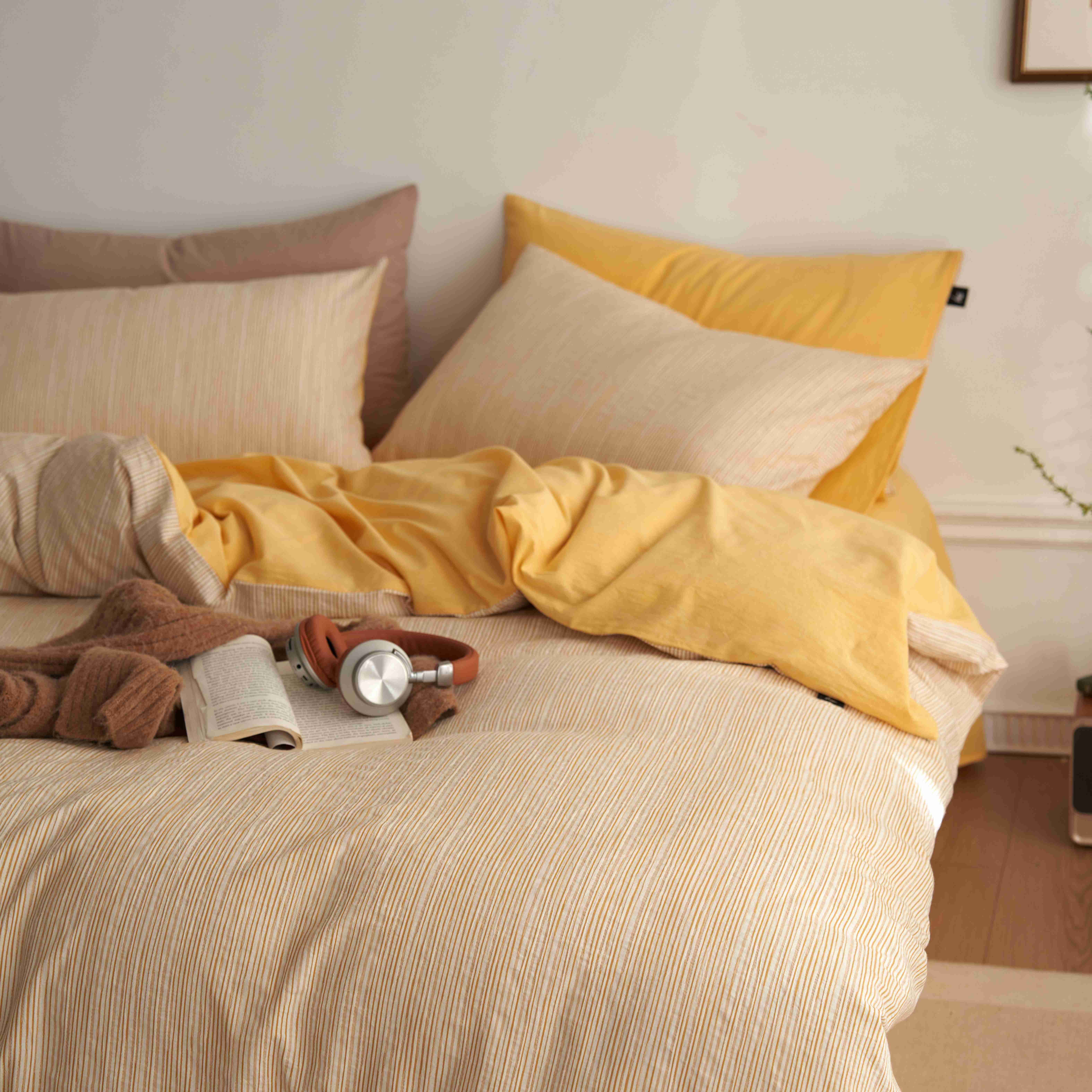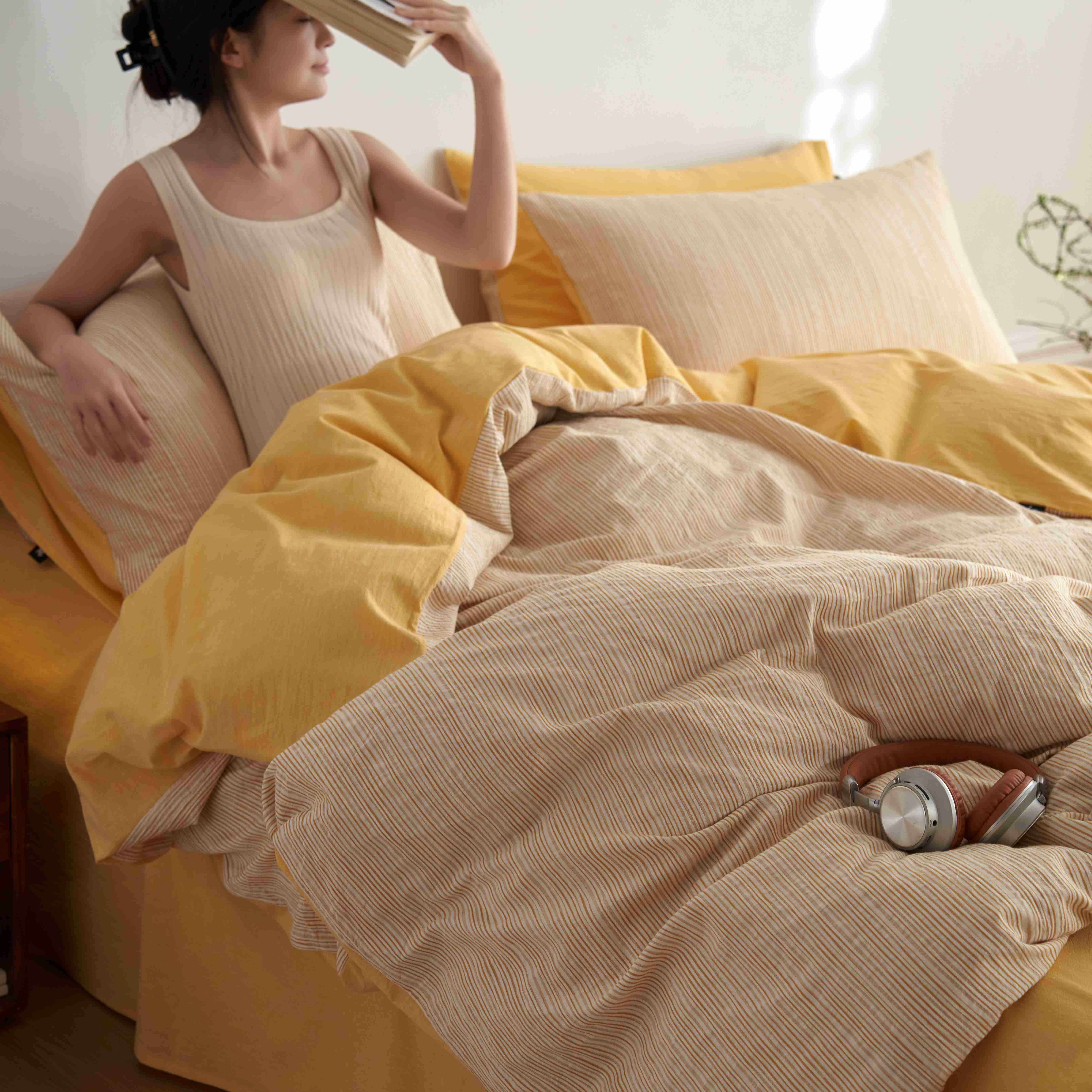 商品名称:安莱生活 2025新款60s色织大提花秘境条纹四件套系列 驼黄混条