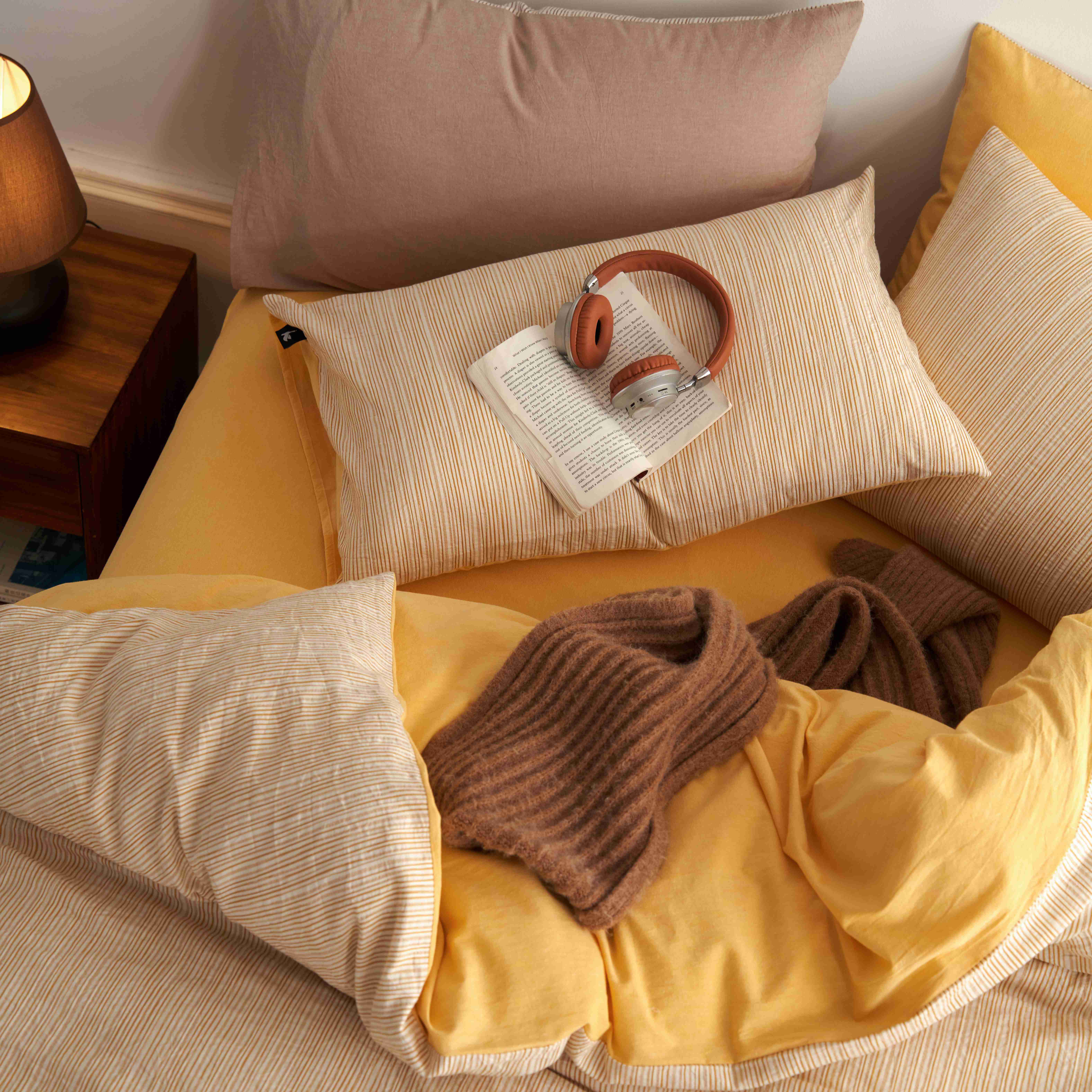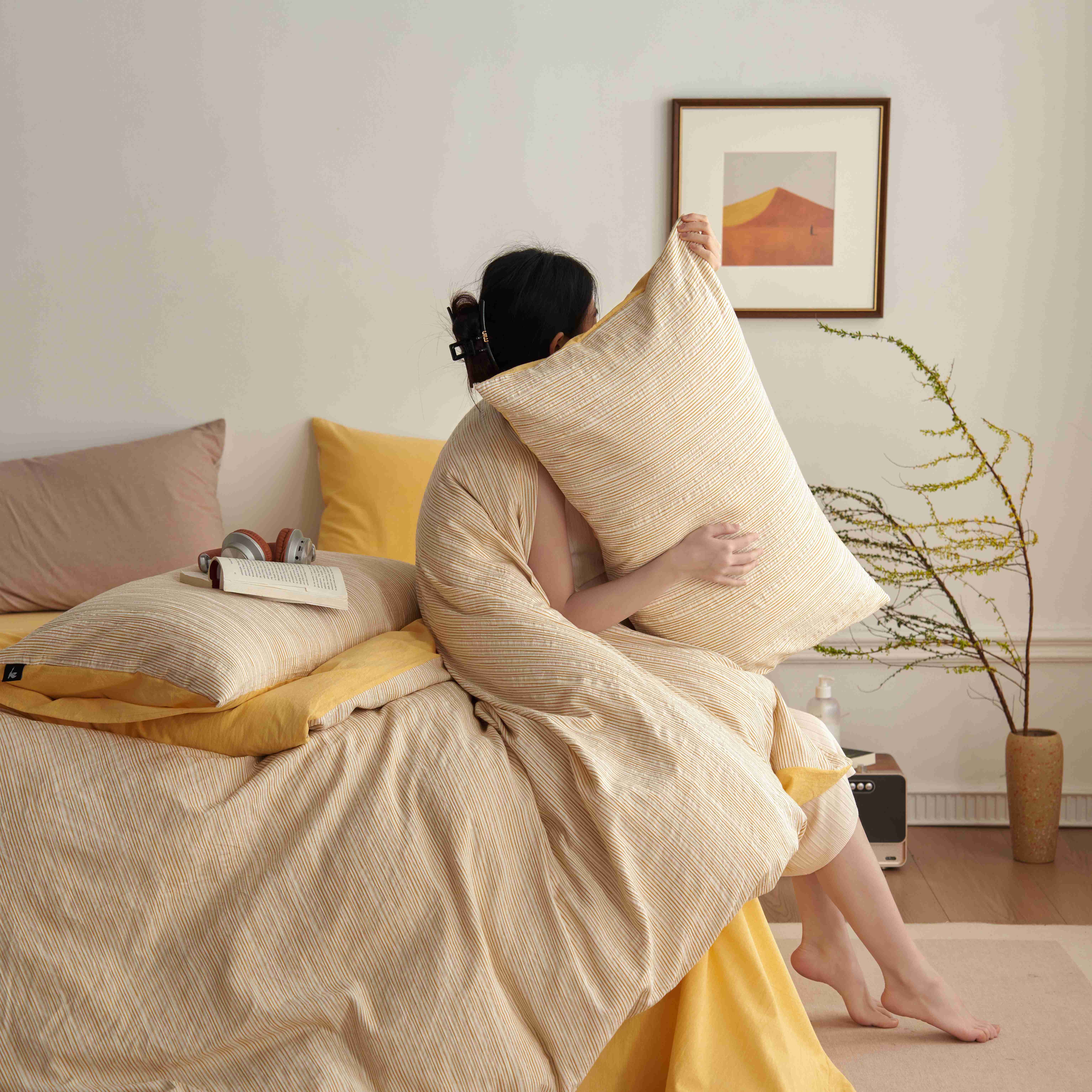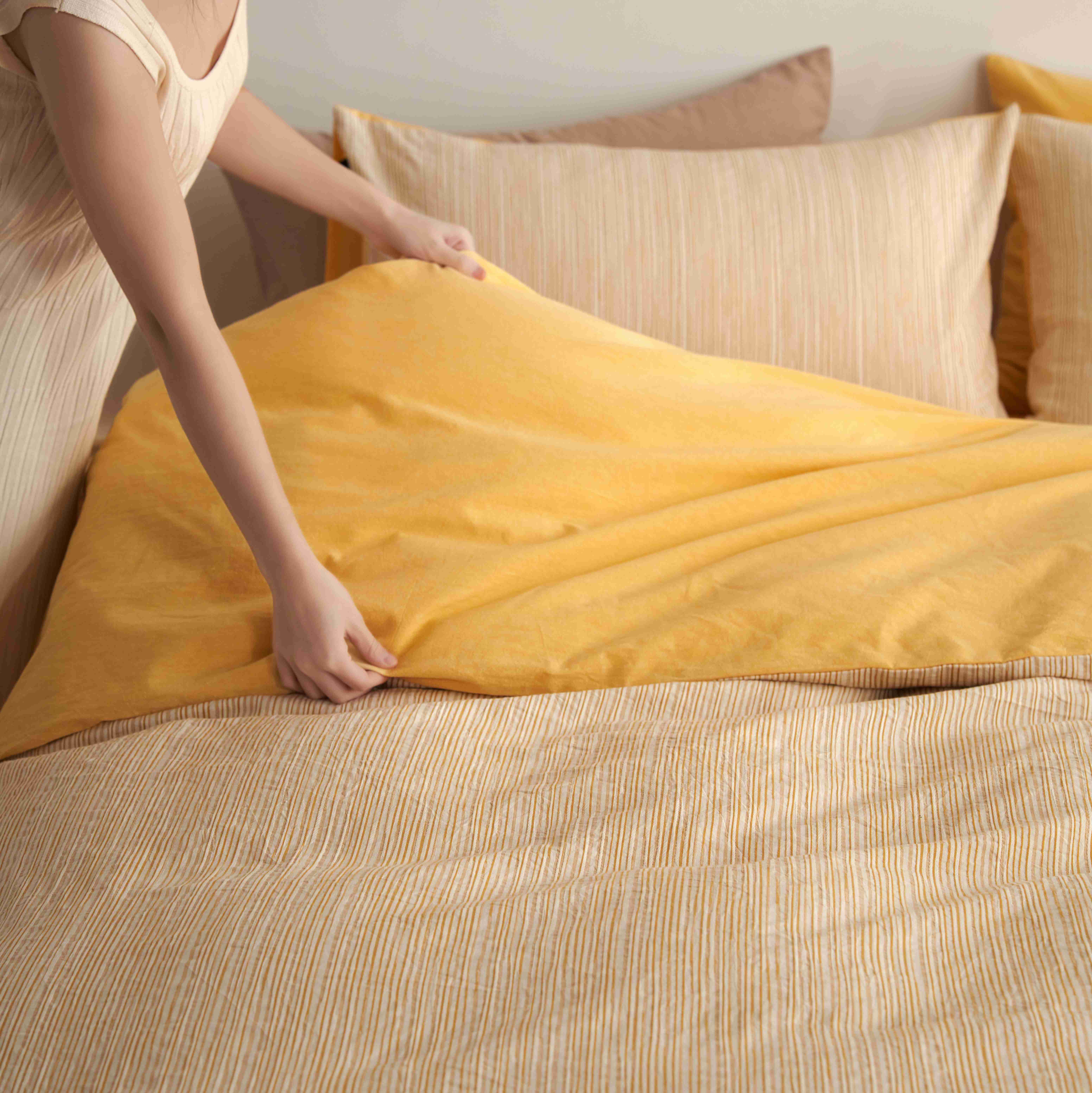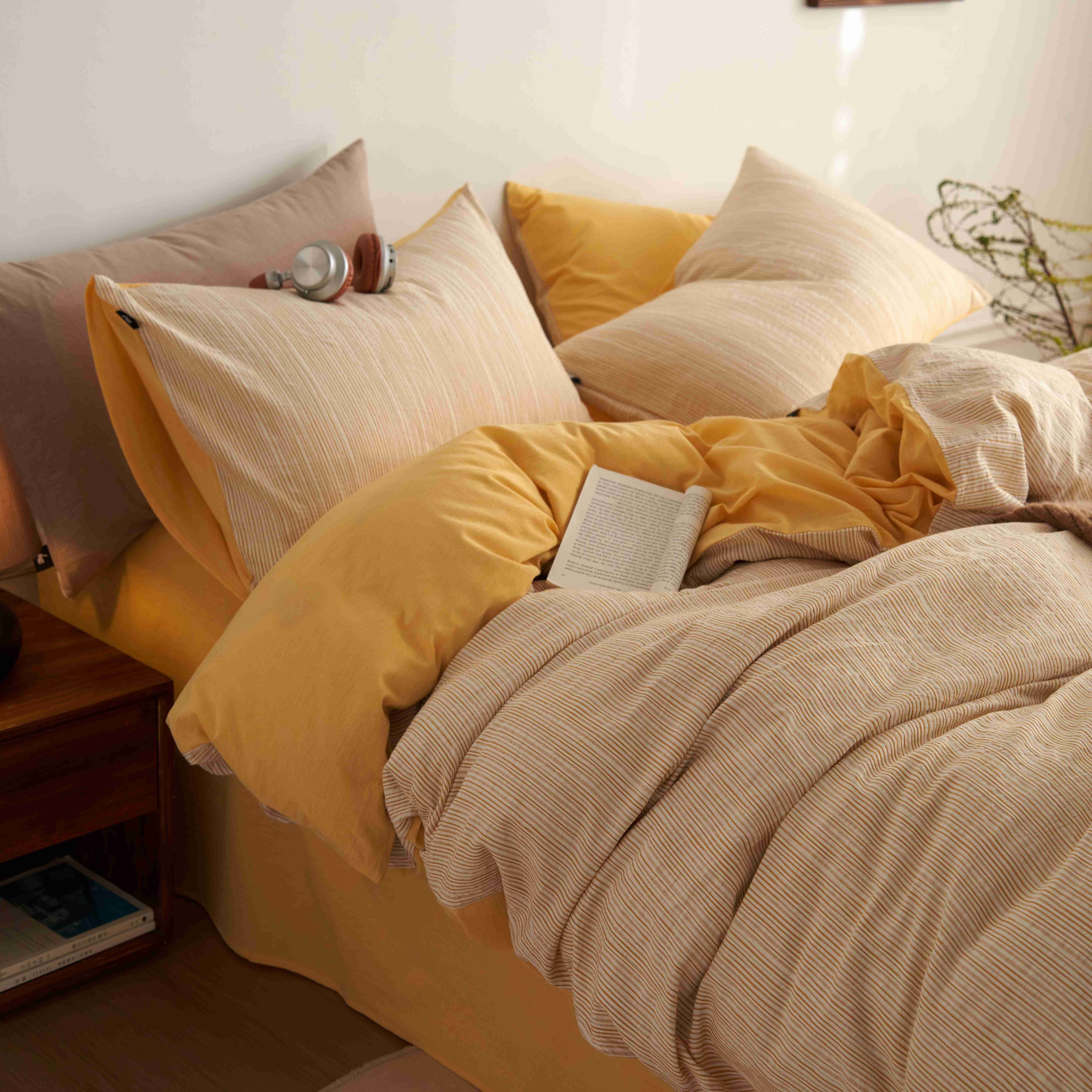 商品名称:安莱生活 2025新款60s色织大提花秘境条纹四件套系列 驼黄混条