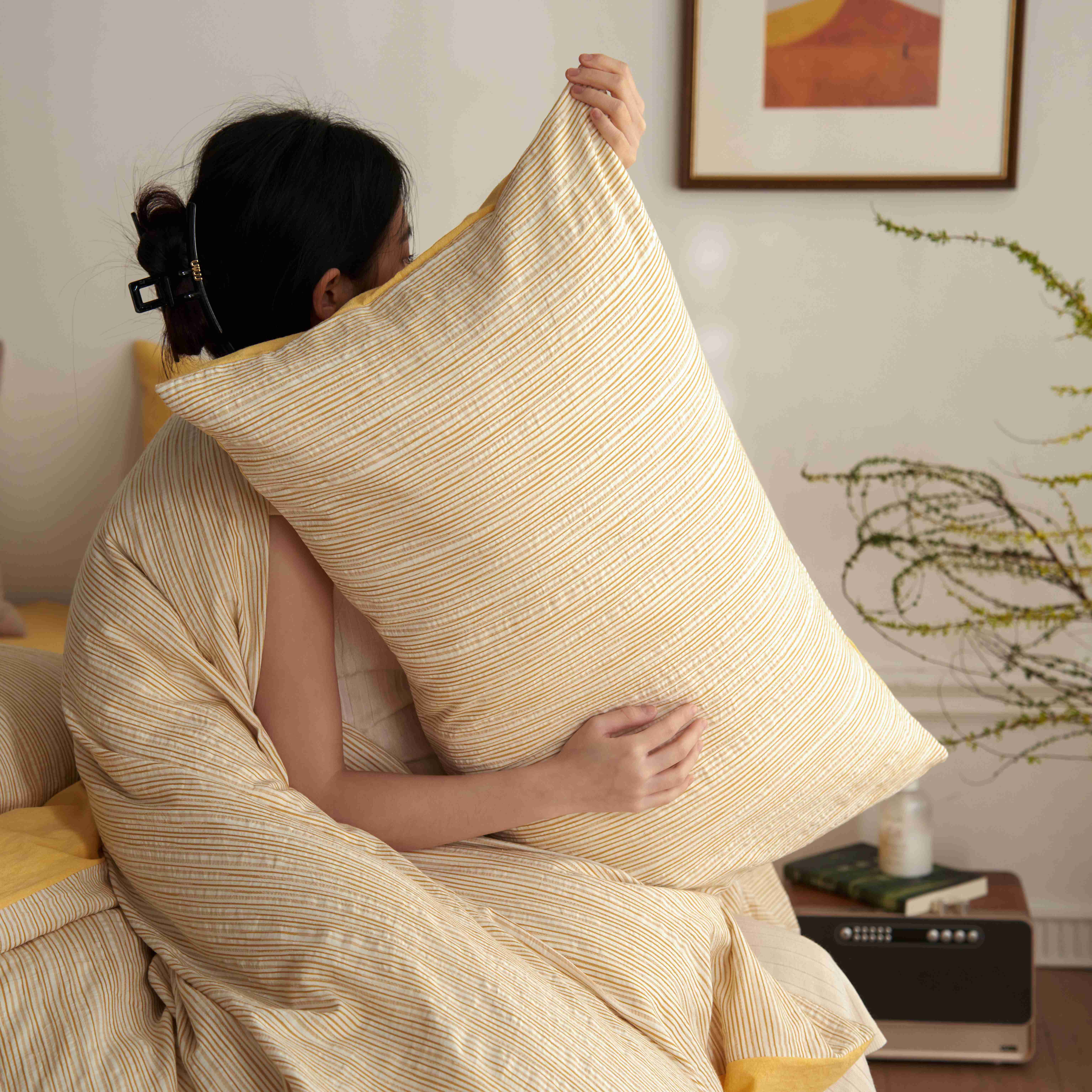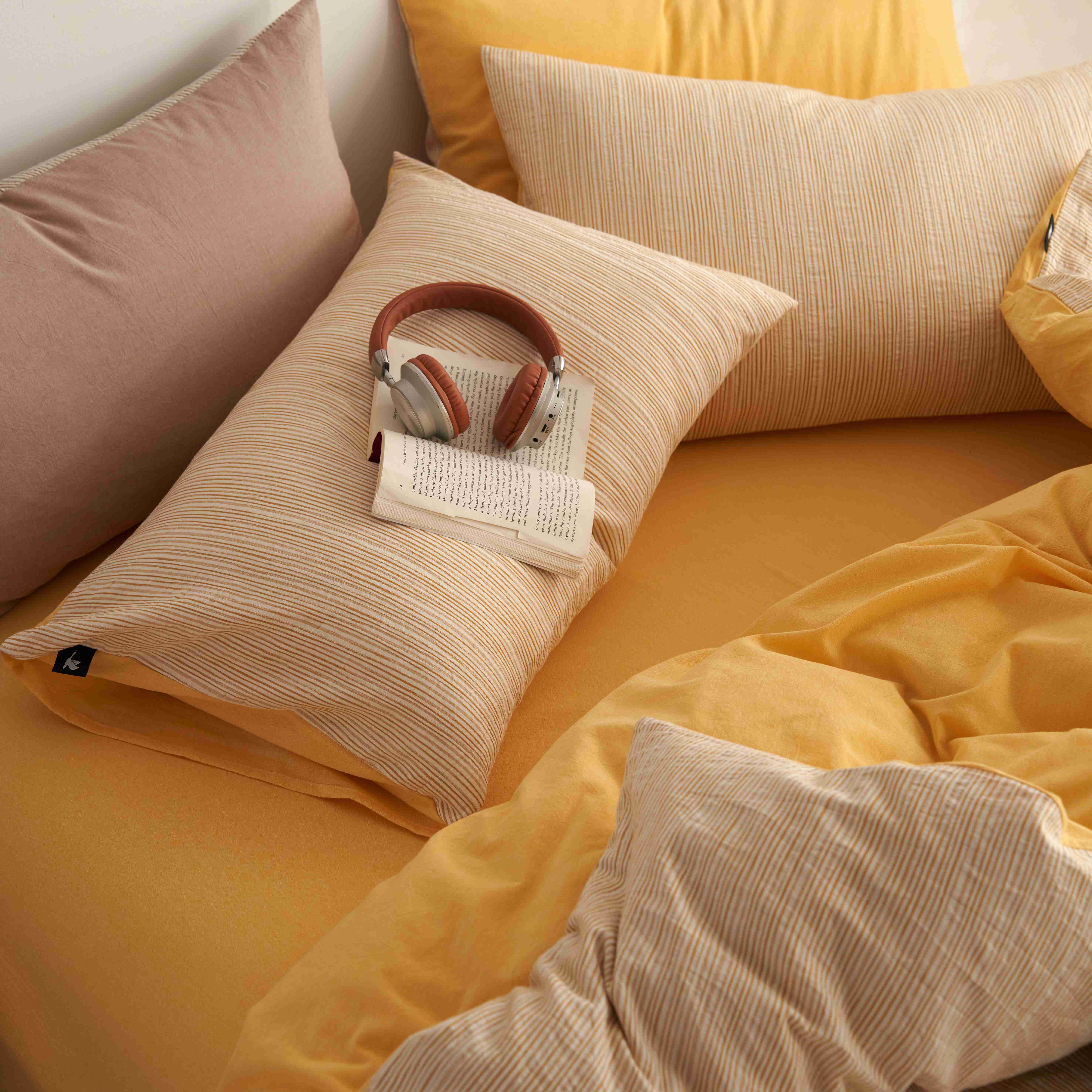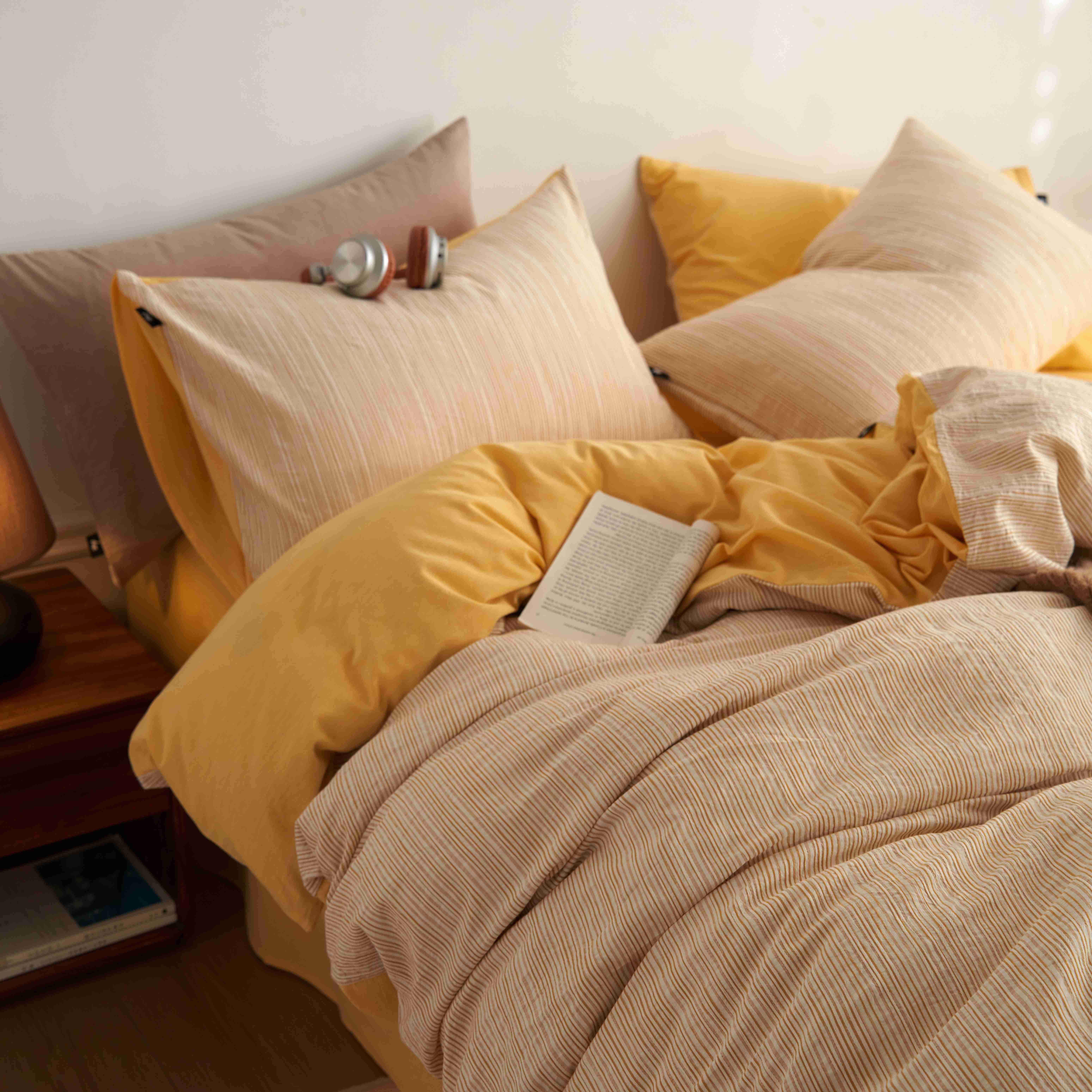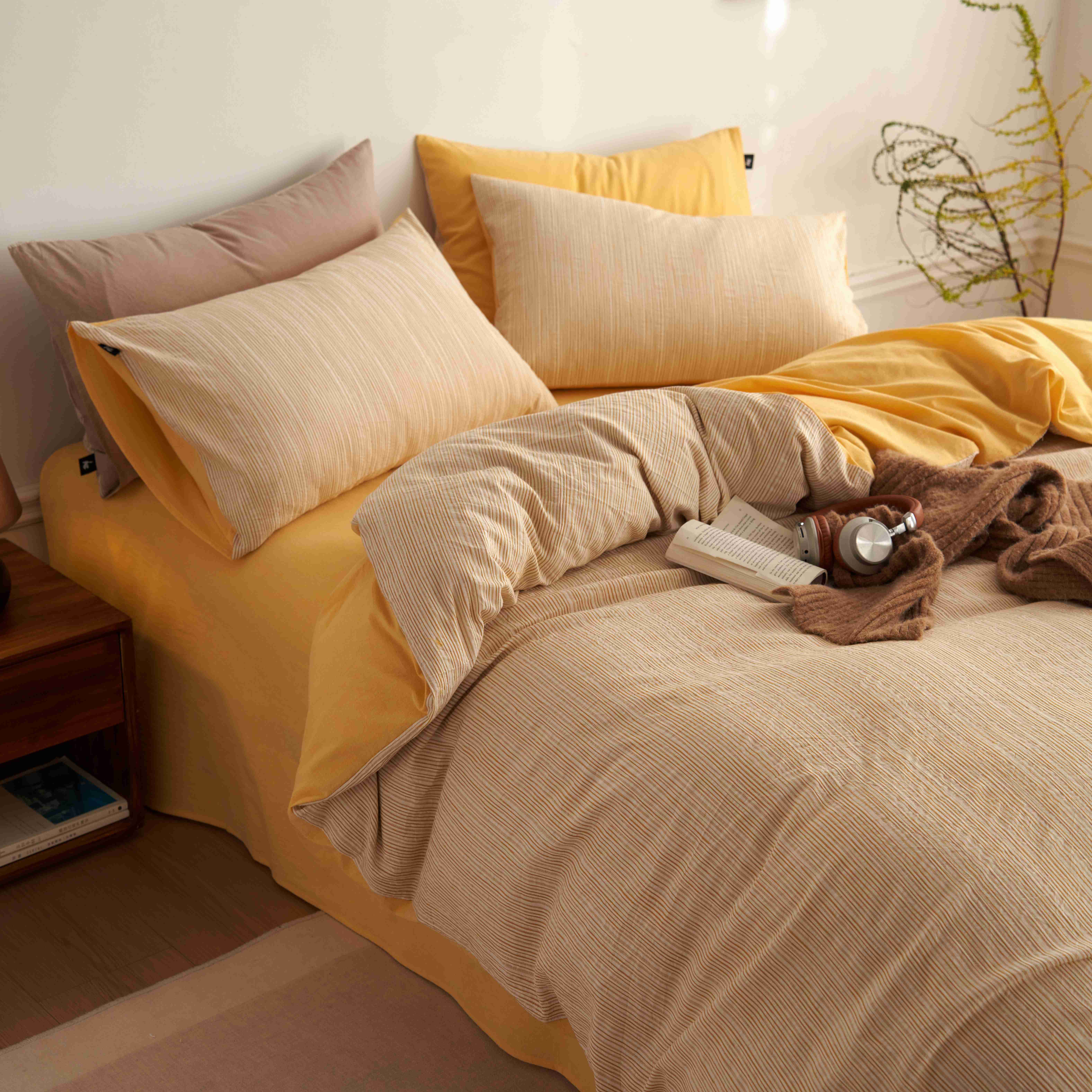 安莱生活 2025新款60s色织大提花秘境条纹四件套系列 驼黄混条