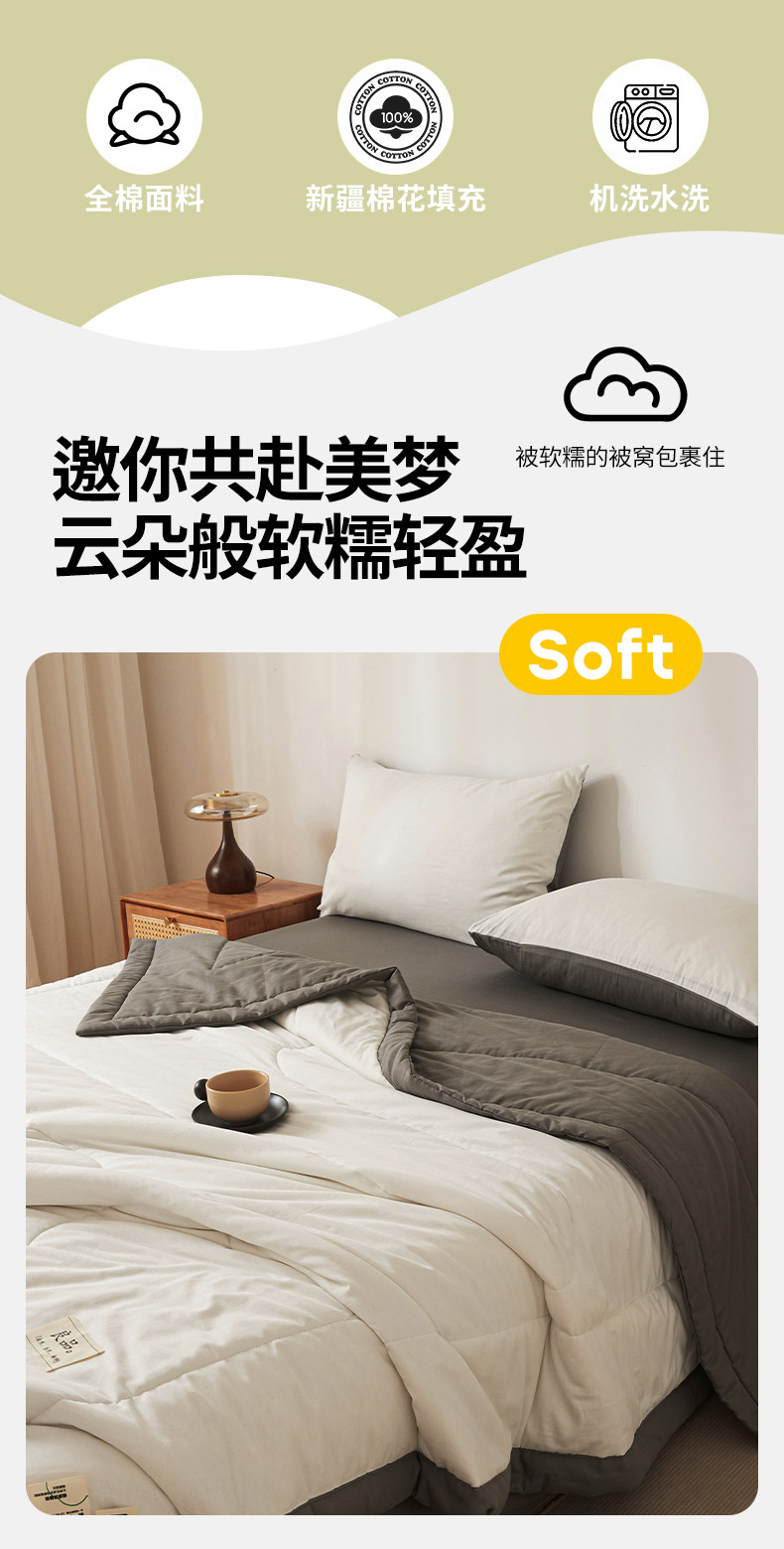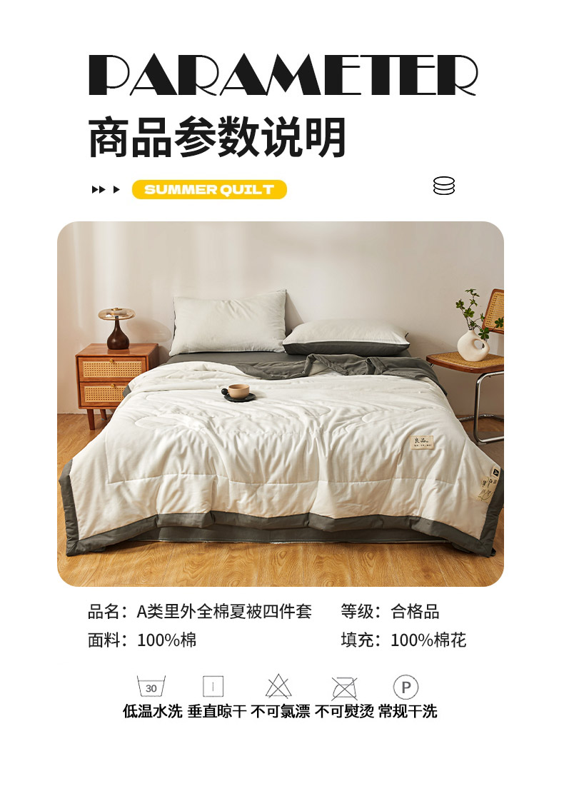 当前位置: 91家纺网 > 商品网购 > 床品套件 > 四件套 > 夏被四件套 > 熙宴家纺 2025新款纯色里外全棉夏被四件套 皓月白+高级灰
