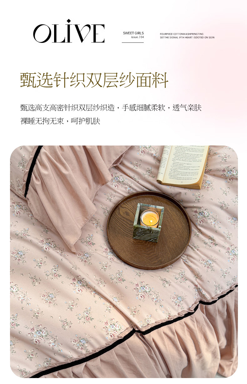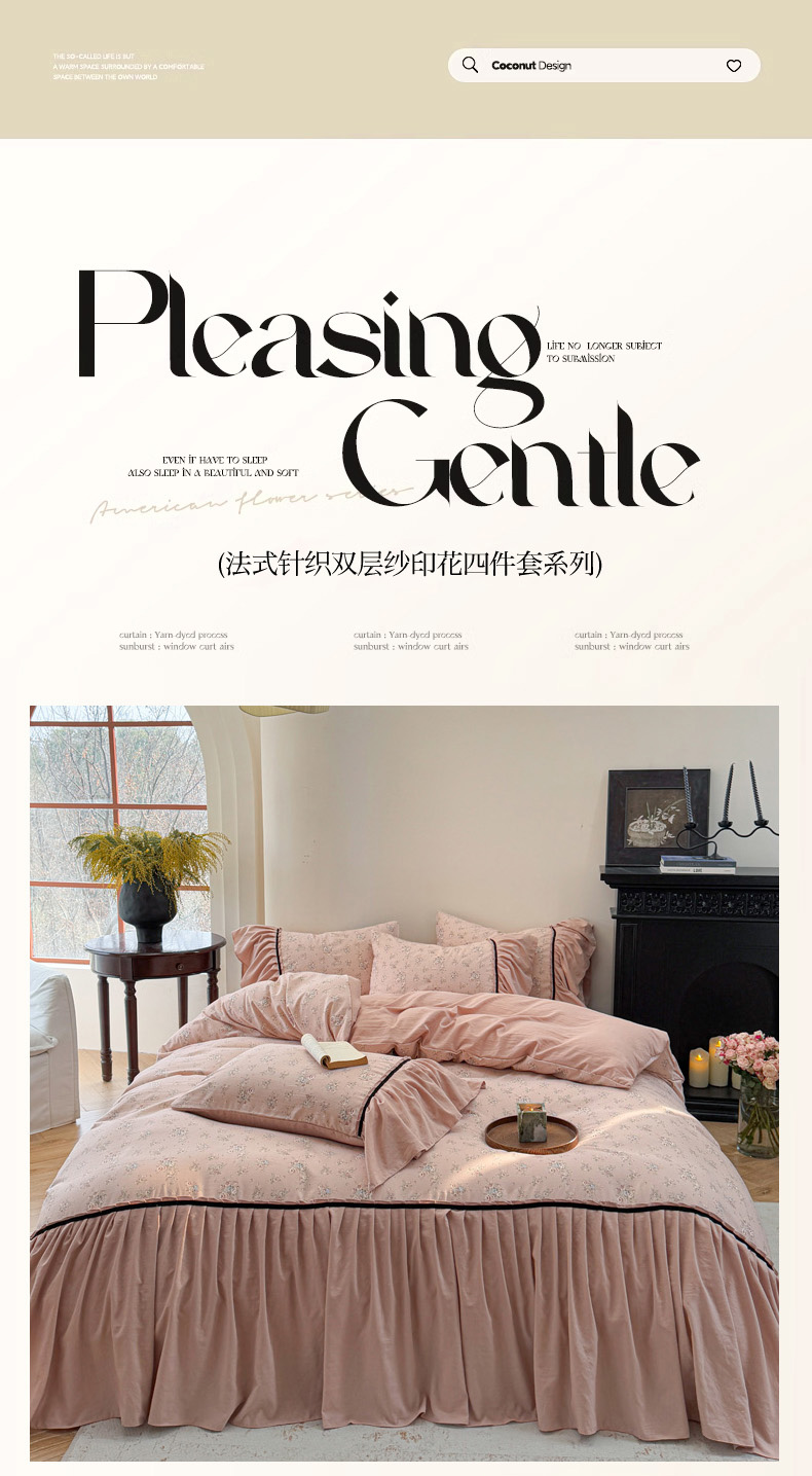 当前位置: 91家纺网 > 商品网购 > 床品套件 > 四件套 > 其它四件套 > 沐慕 2025新款法式针织双层纱印花系列四件套 春和
