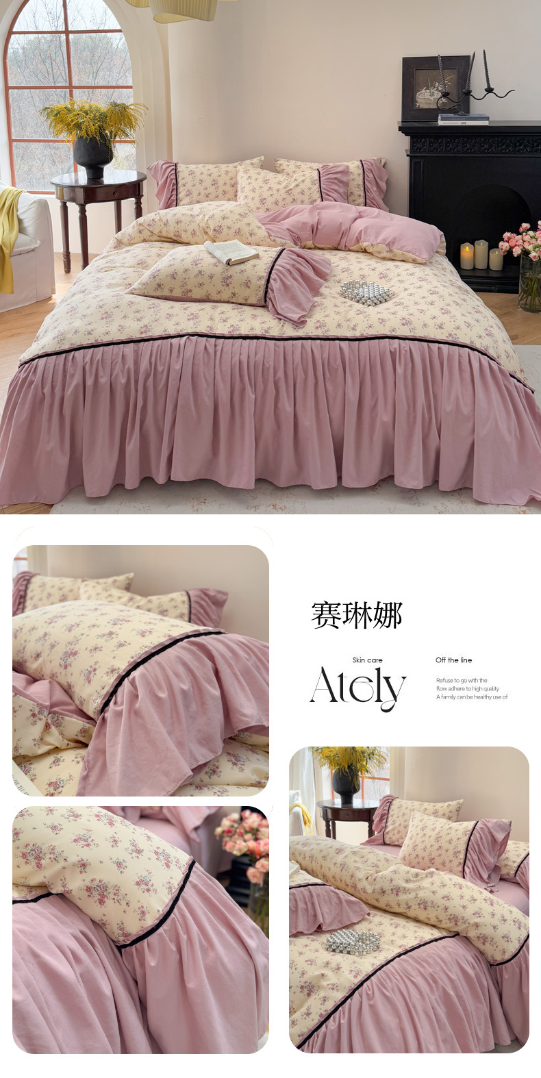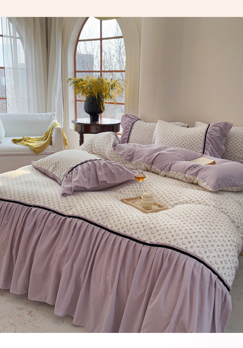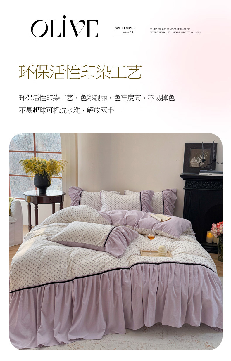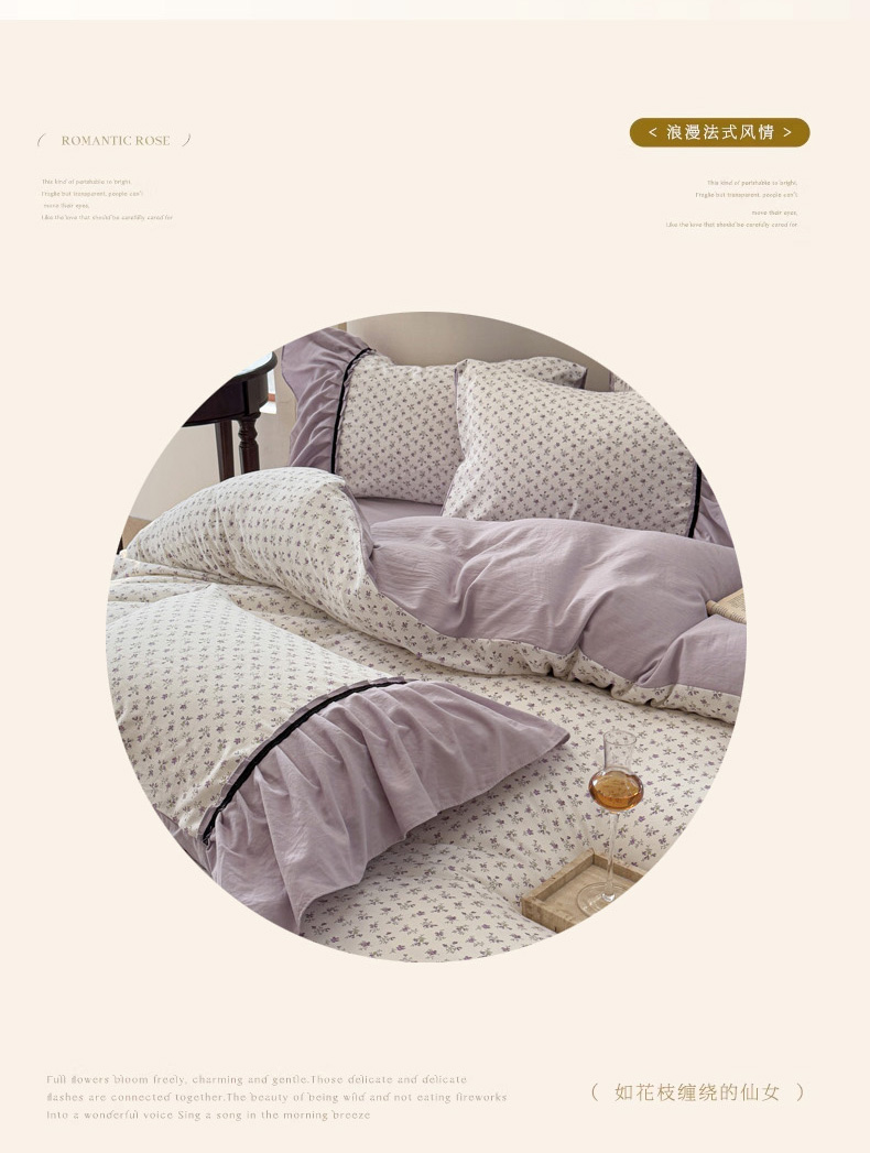 当前位置: 91家纺网 > 商品网购 > 床品套件 > 四件套 > 其它四件套 > 沐慕 2025新款法式针织双层纱印花系列四件套 紫苏