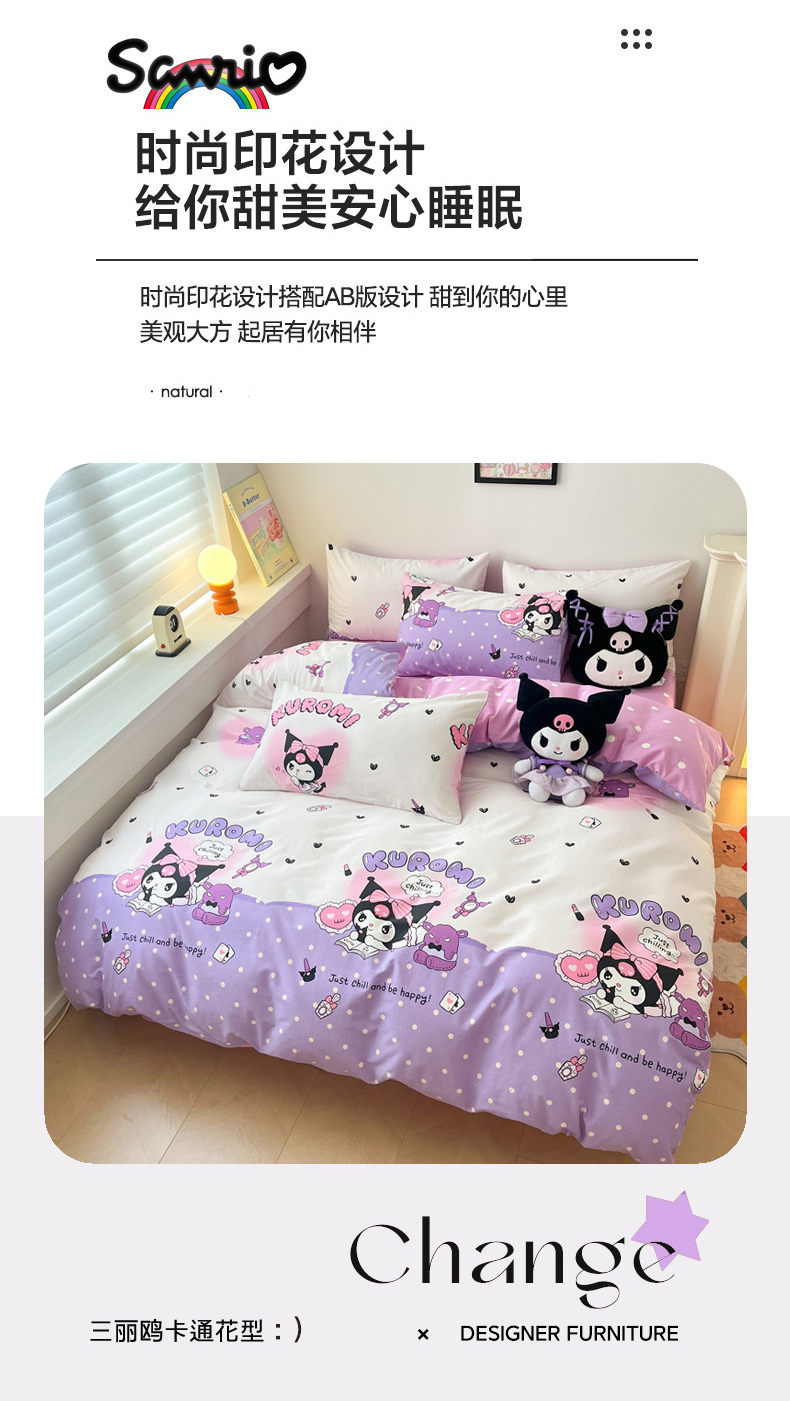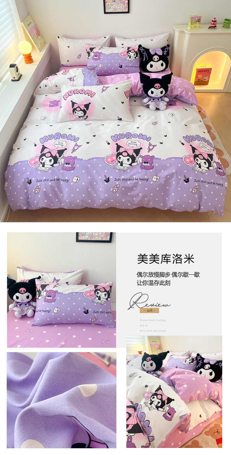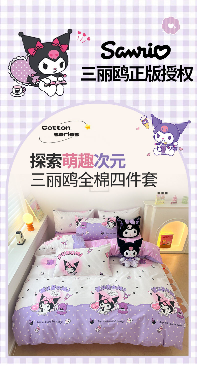 当前位置: 91家纺网 > 商品网购 > 床品套件 > 四件套 > 其它四件套 > 暮思家居 2025新款正版授权三丽鸥全棉四件套系列四件套 美美库洛米