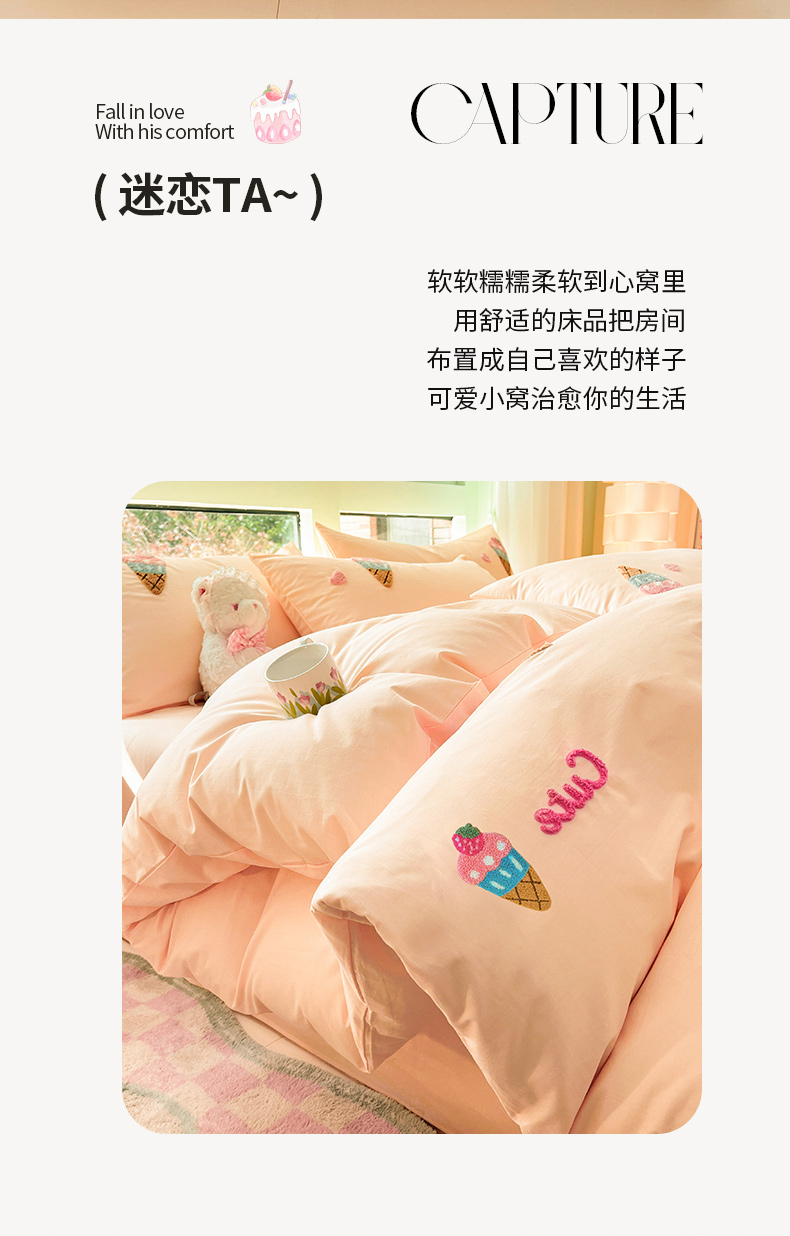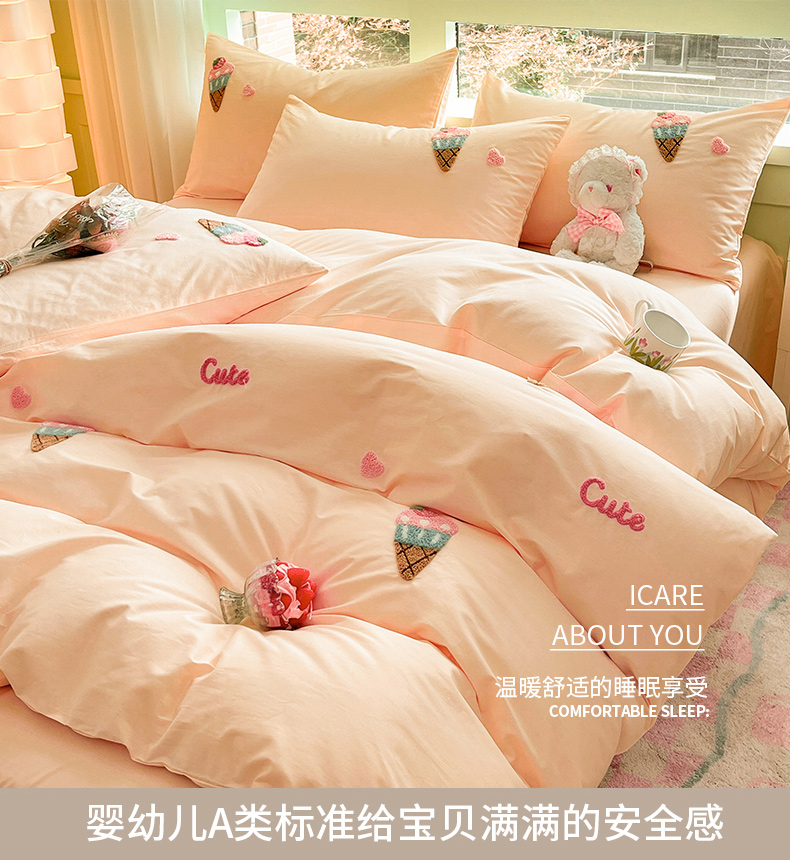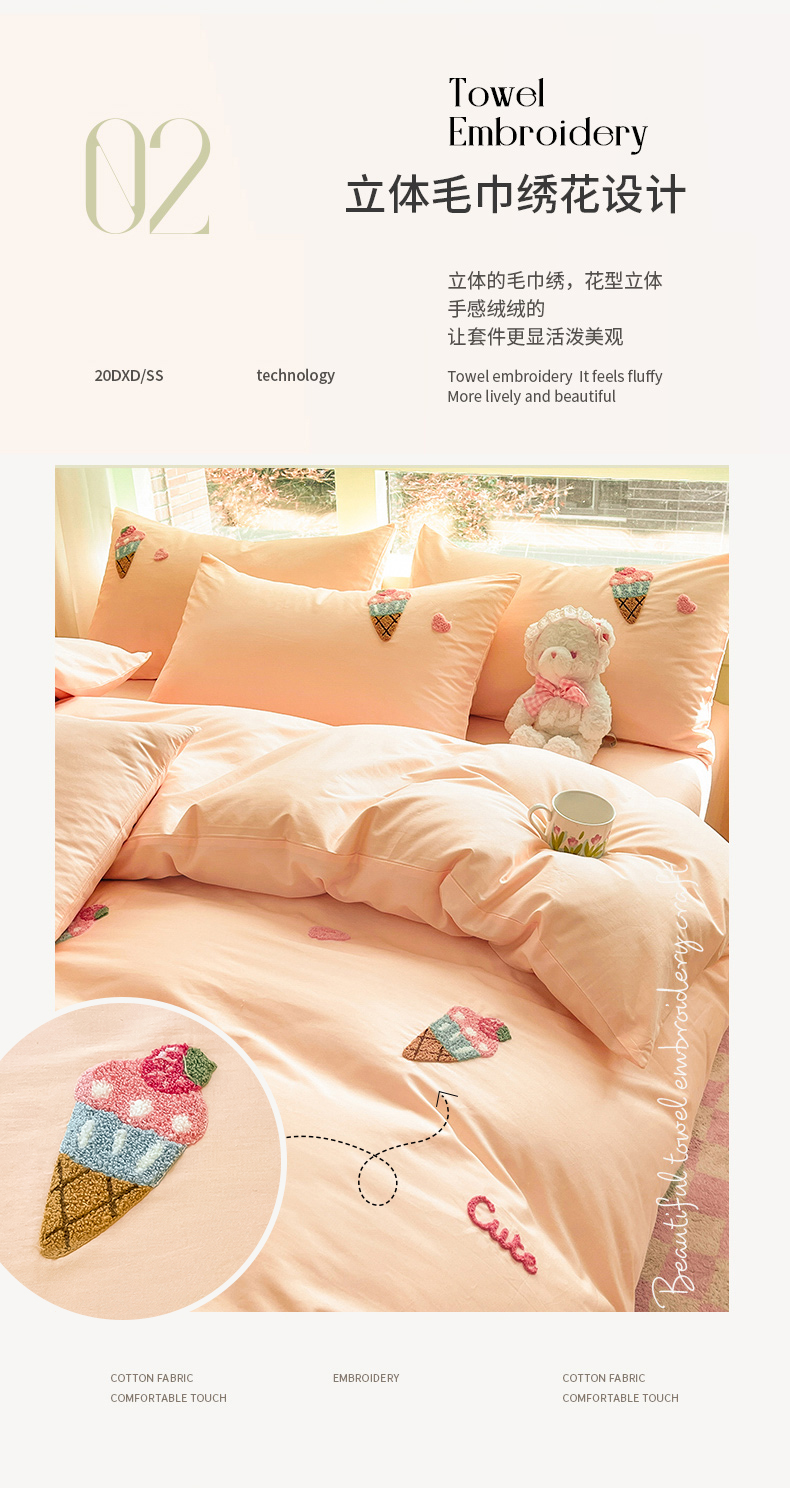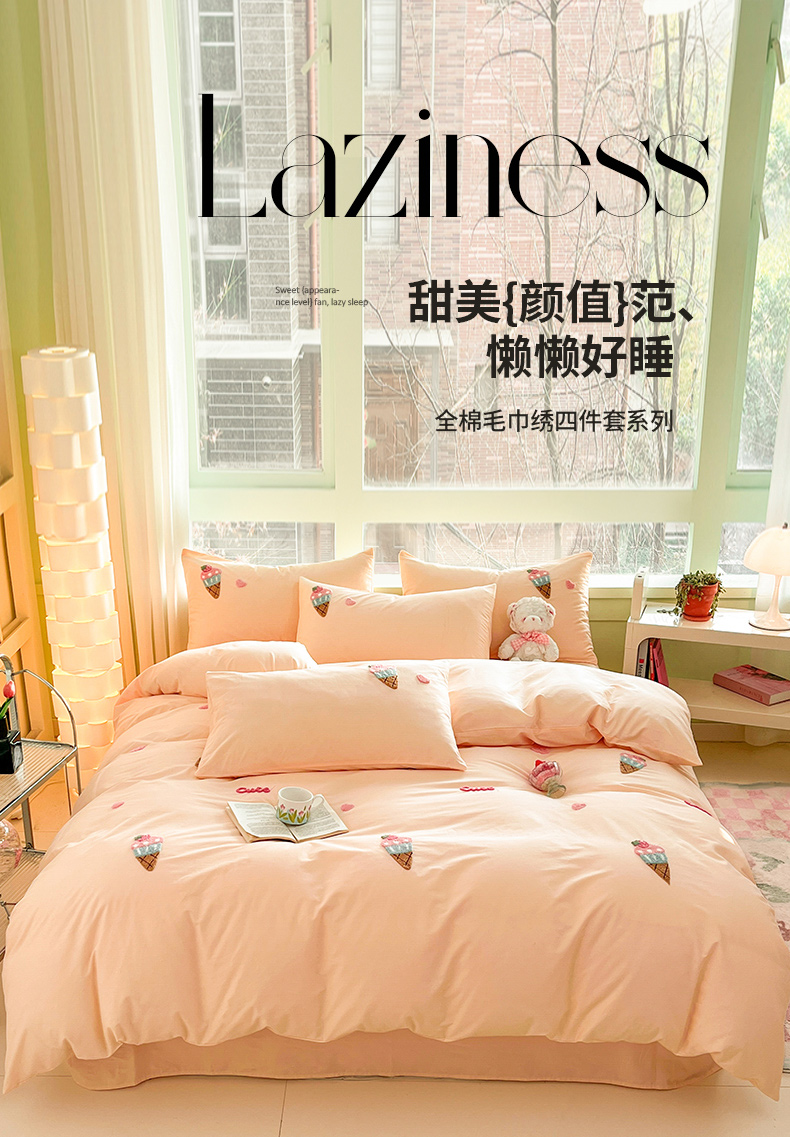 当前位置: 91家纺网 > 商品网购 > 床品套件 > 四件套 > 泽西家纺+V17798841158发大图 2025新品40支全棉纯棉13376成人卡通毛巾绣纯棉四件套冰淇淋系列 冰淇淋- 玉