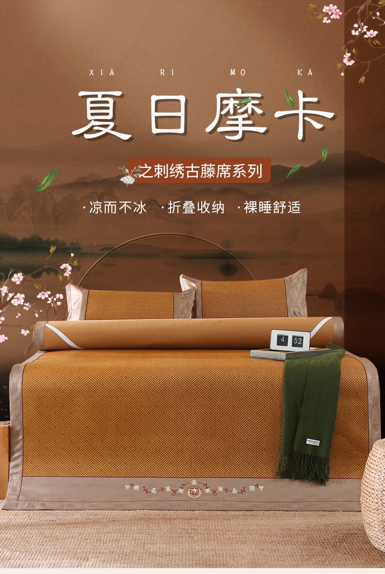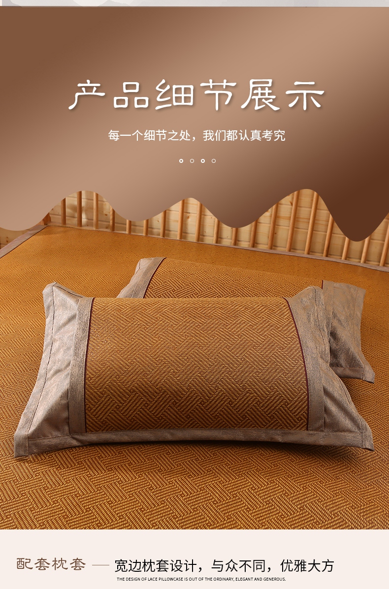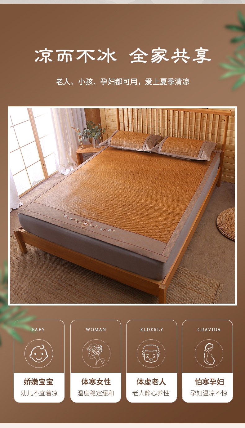商品名称:小牛席业 2025新款刺绣古藤席【常规款】凉席藤席冰藤席竹席空调席草席冰丝席豆豆席乳胶席三件套 夏日摩卡