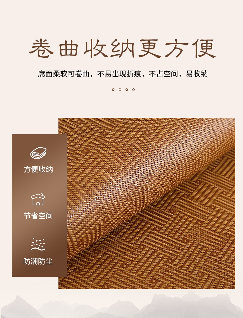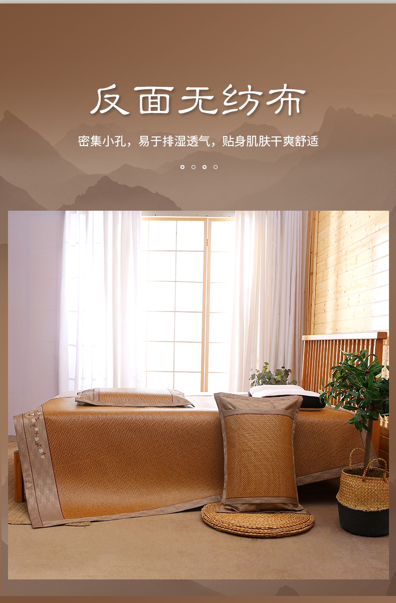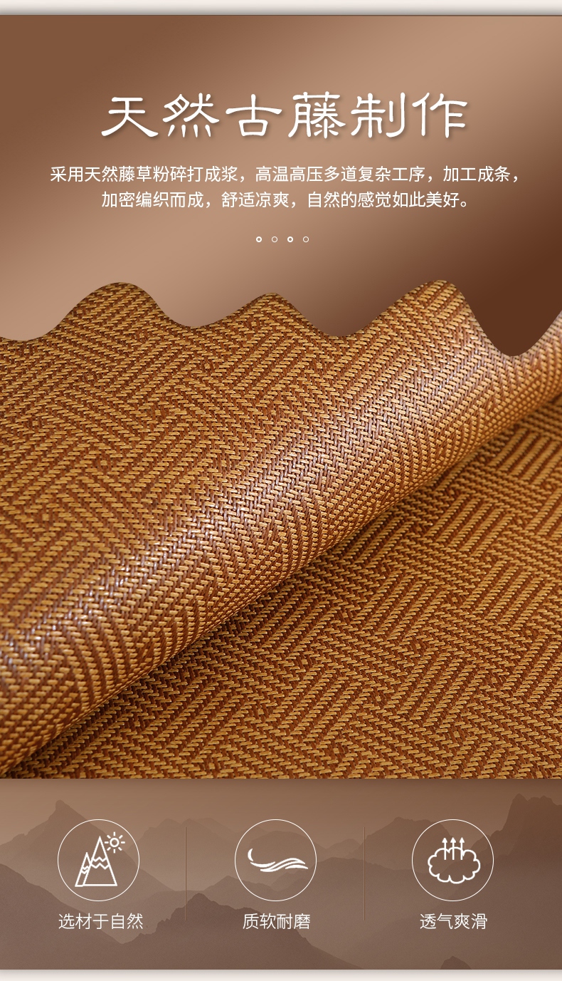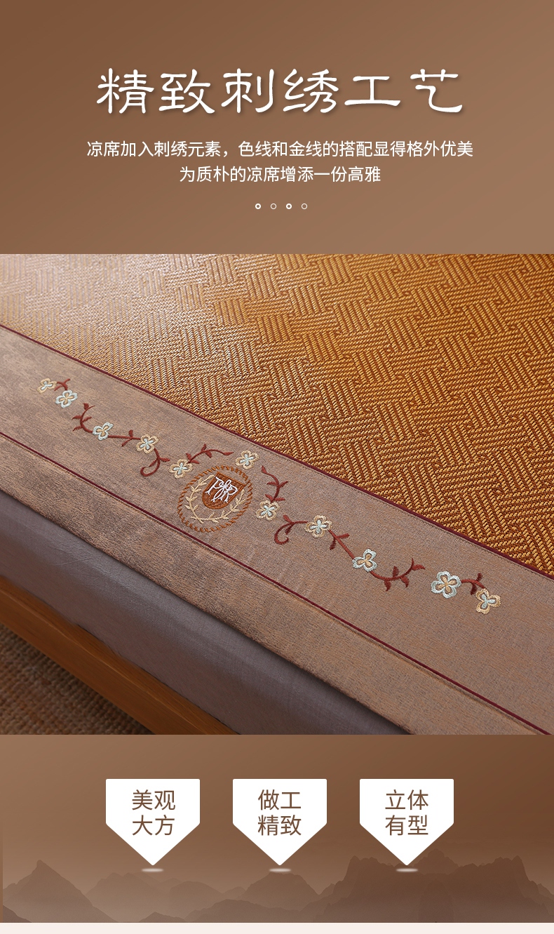 商品名称:小牛席业 2025新款刺绣古藤席【常规款】凉席藤席冰藤席竹席空调席草席冰丝席豆豆席乳胶席三件套 夏日摩卡