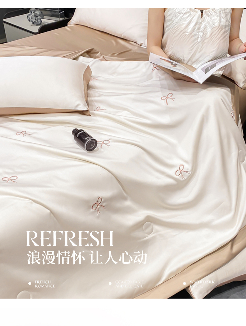 当前位置: 91家纺网 > 商品网购 > 床品套件 > 四件套 > 夏被四件套 > 益多眠 2026新款花朵夏被四件套 蝴蝶结奶白咖