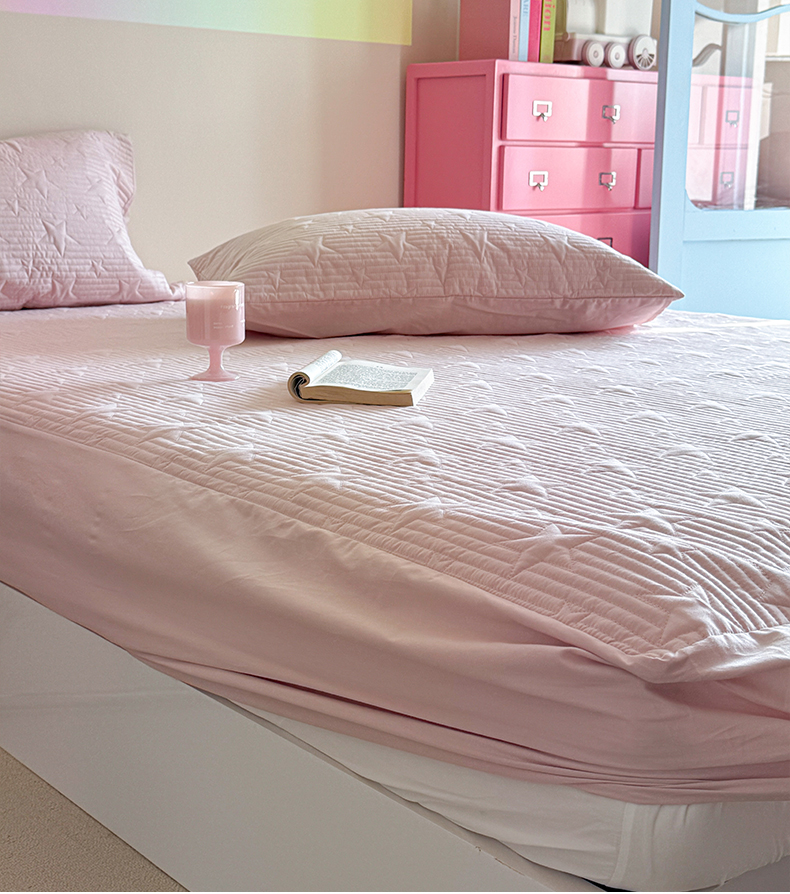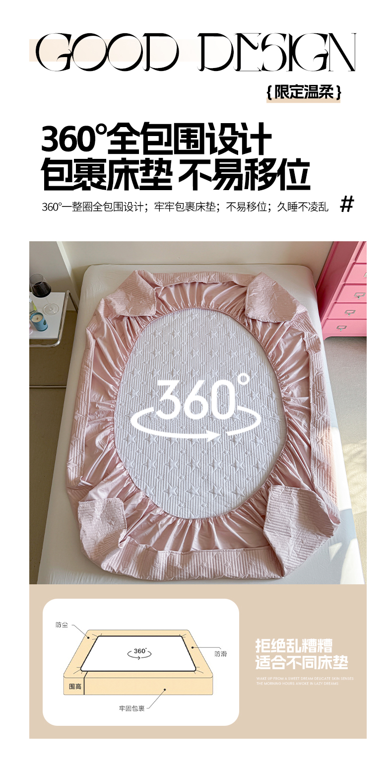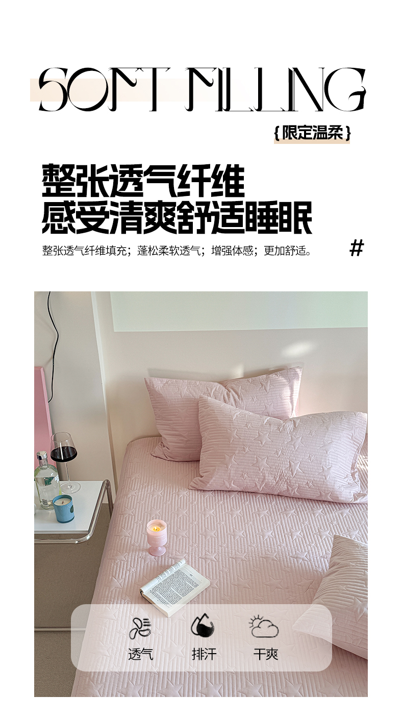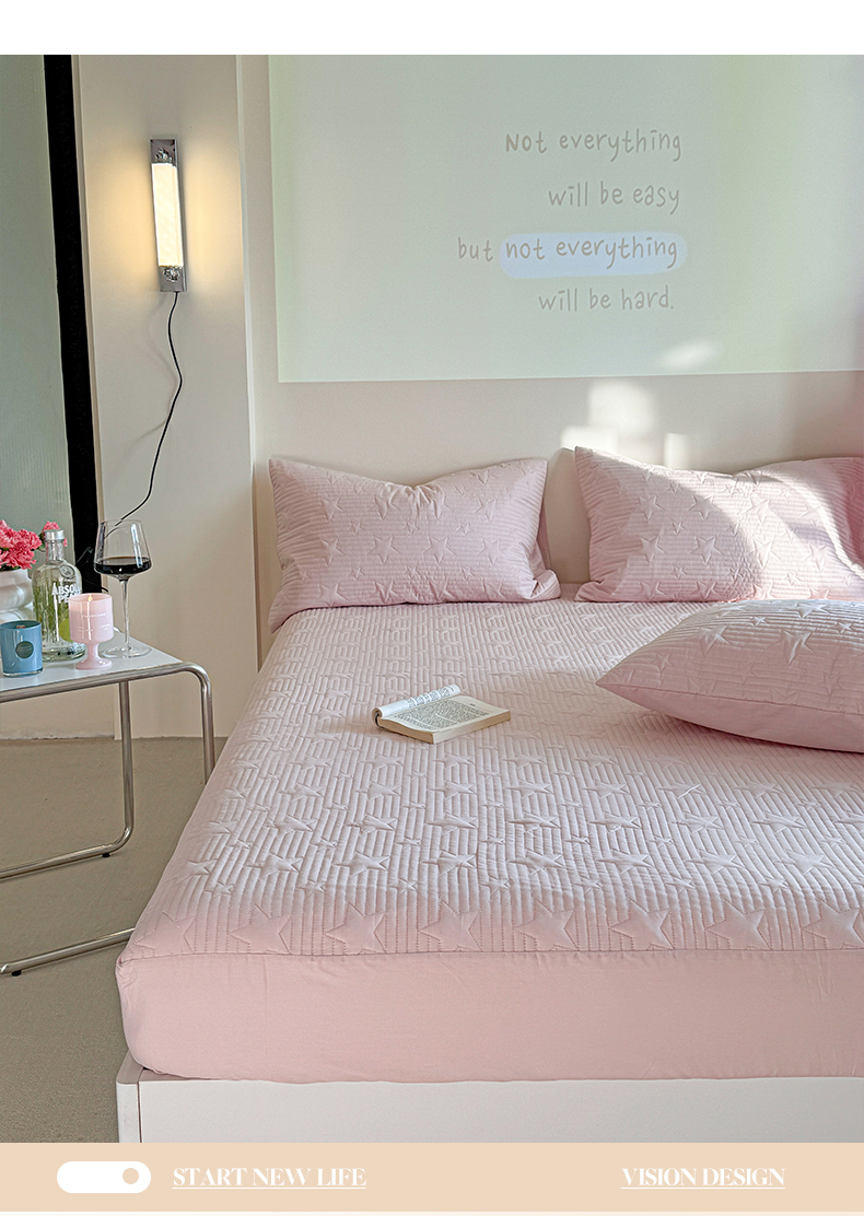 漫调2025新款全棉星星床垫保护套夹棉床笠-繁星 繁星粉