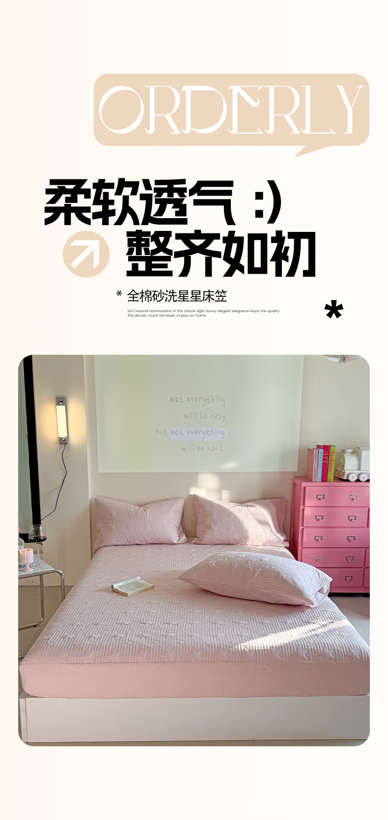 (总)漫调家纺 2025新款全棉星星床笠,繁星白,繁星粉,繁星灰,繁星咖,繁星绿,繁星杏