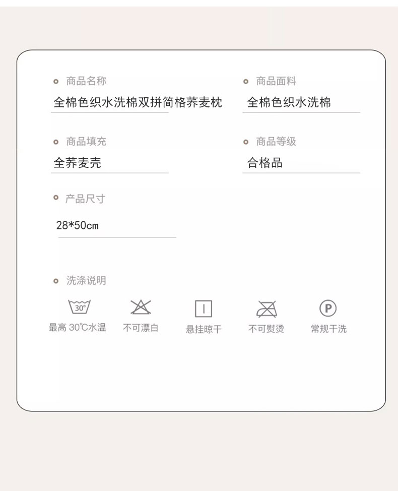 商品名称:(总)枕之坊 2025新款全棉色织水洗棉双拼简格荞麦枕