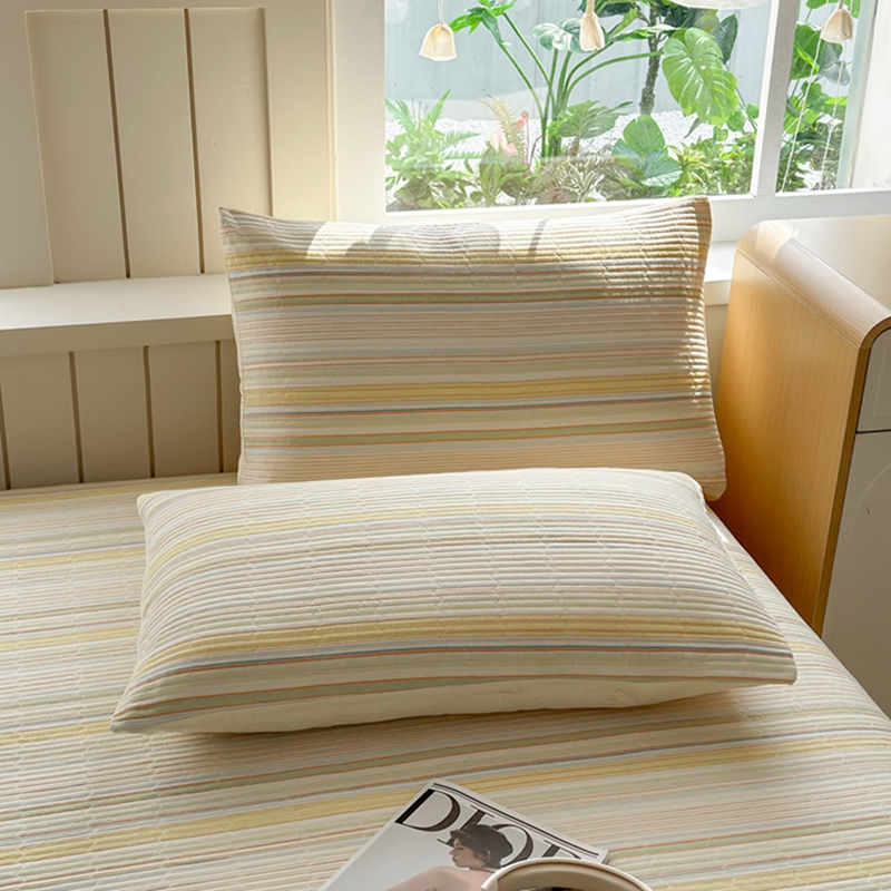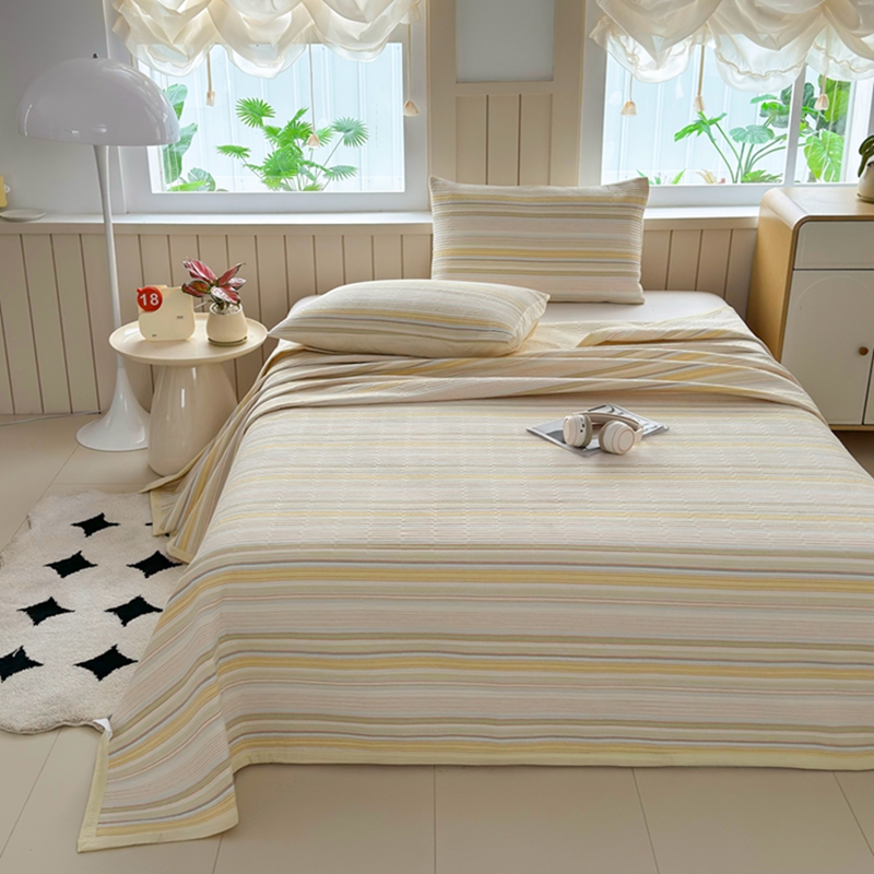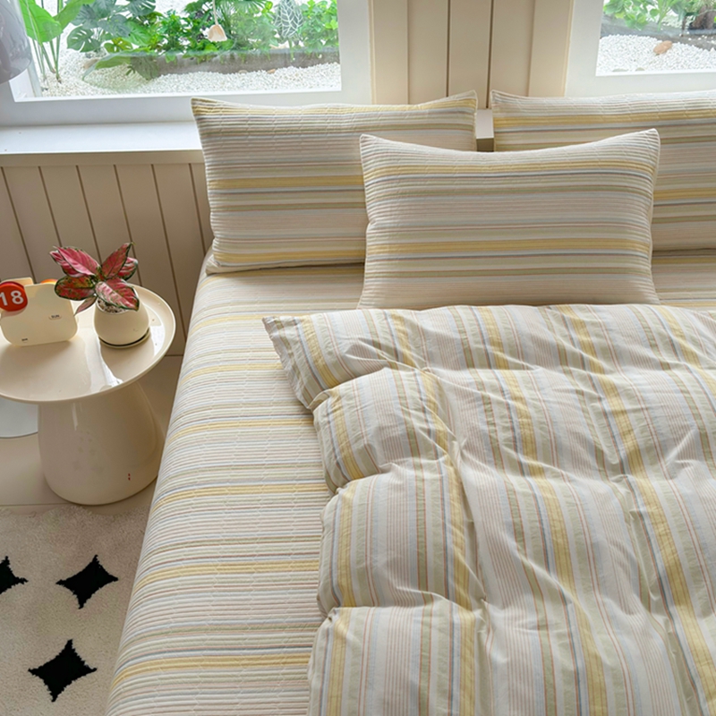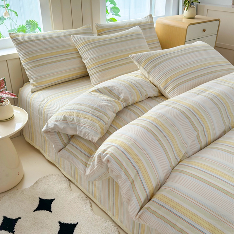 梦精灵家纺 2025新款全棉纯棉色织水洗棉床盖四件套加大尺寸单被套枕套 西蒙-黄