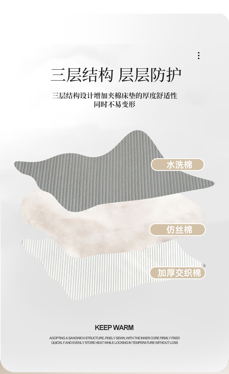 (总)法芙娜家纺 全棉40S斜纹13372水洗棉密道床垫,白色,粉色,抹茶,浅灰,深灰