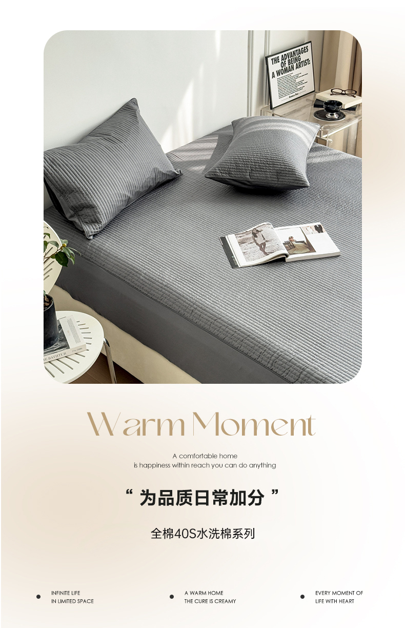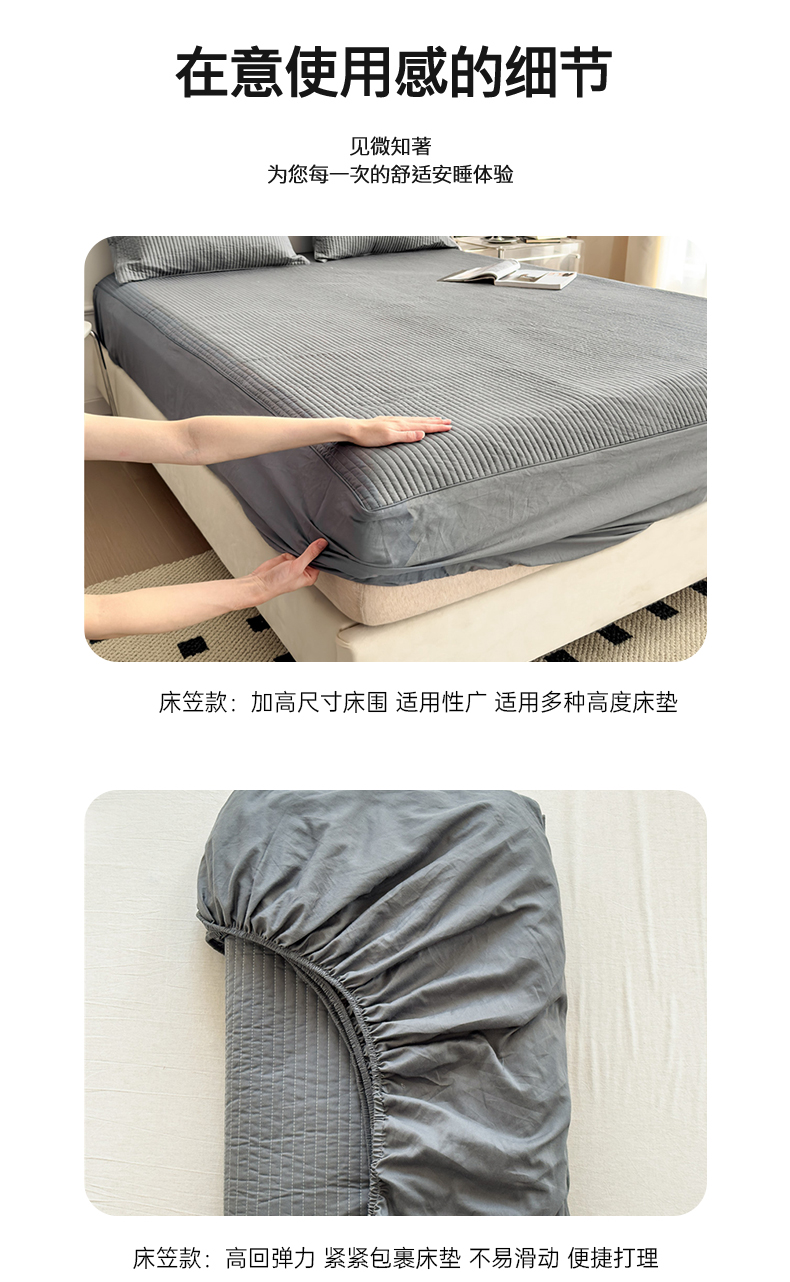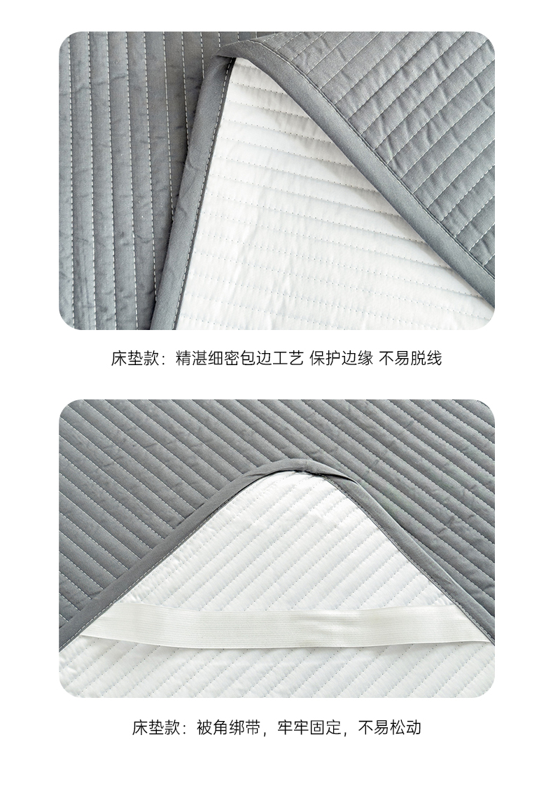 (总)安芯丝60S全棉夹棉床笠 抗菌防螨,白色,灰色