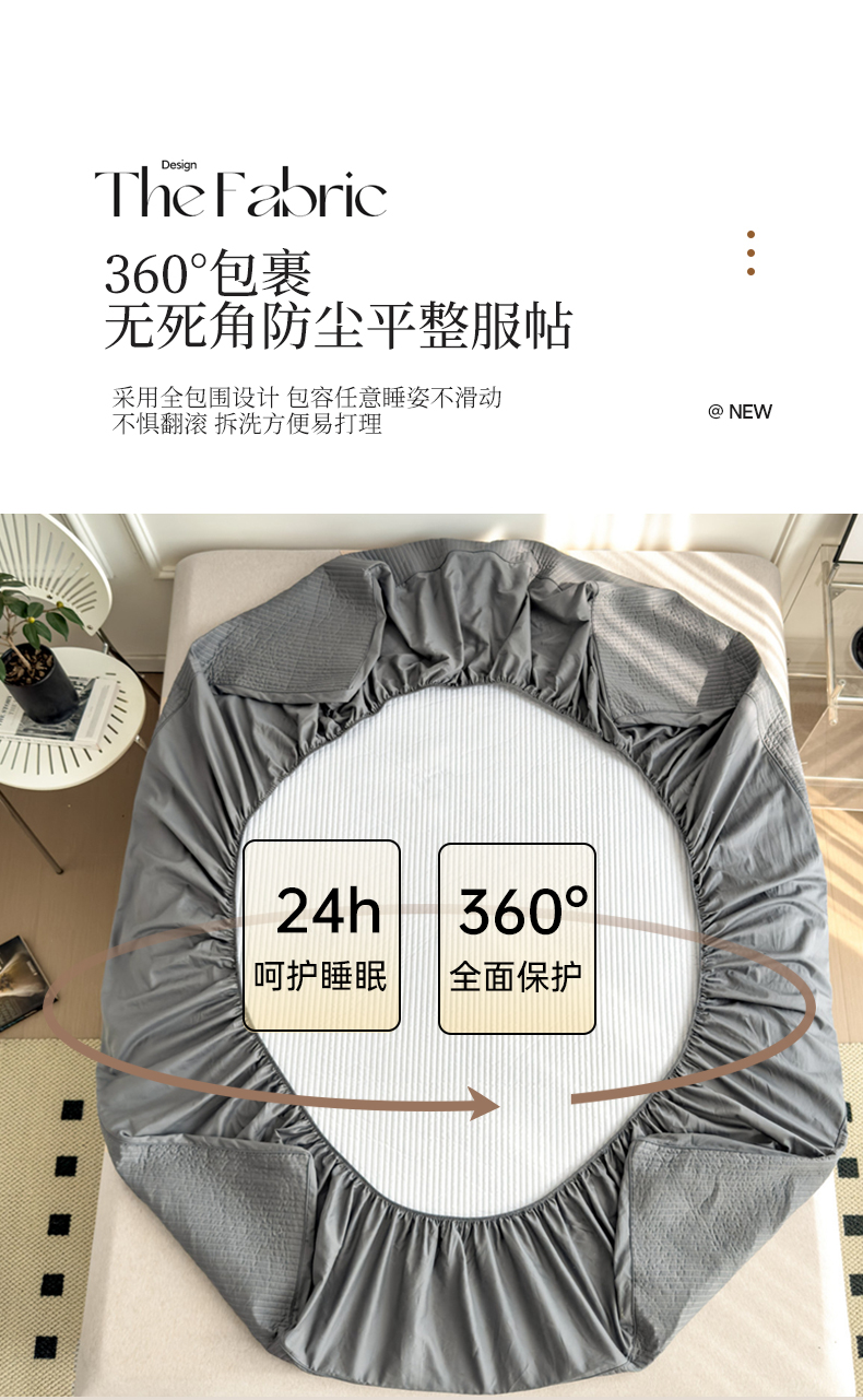 法芙娜家纺 2025新款全棉40S水洗棉床笠 深灰