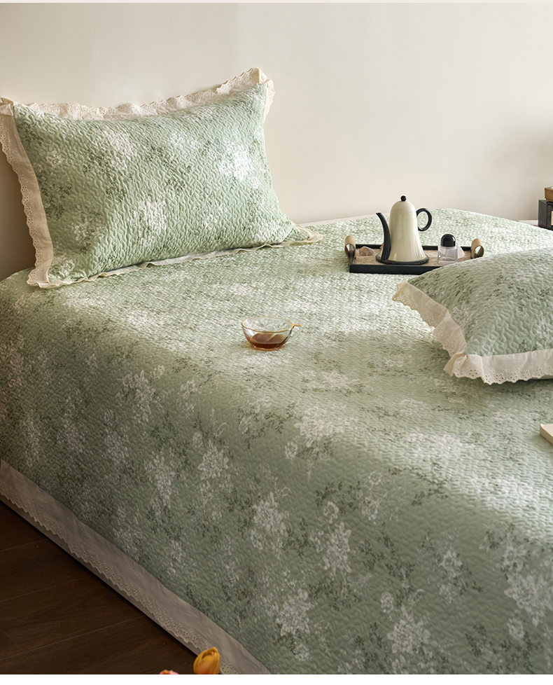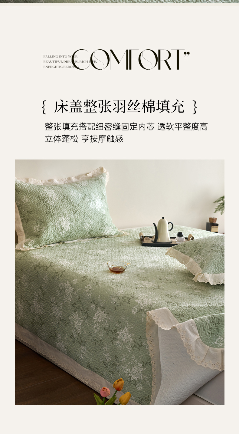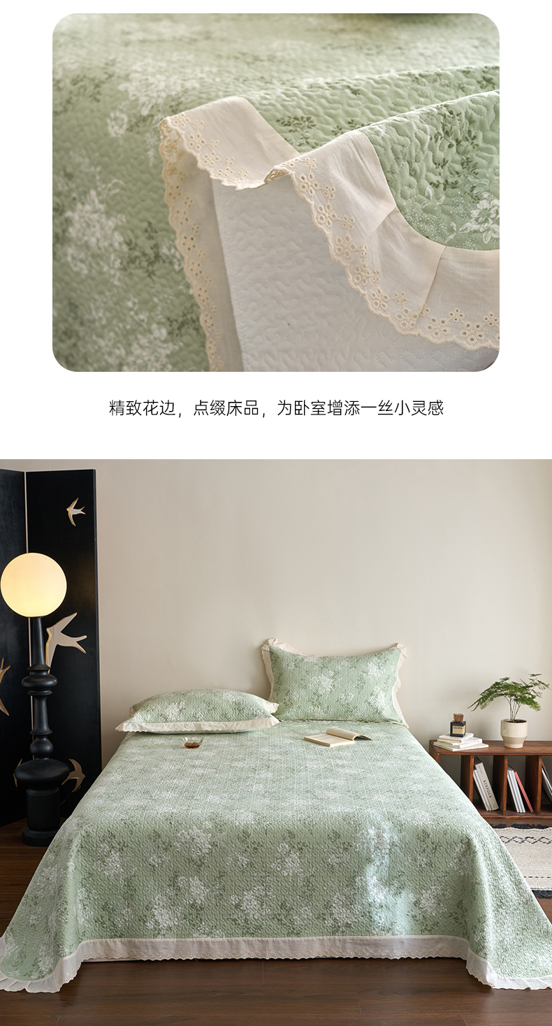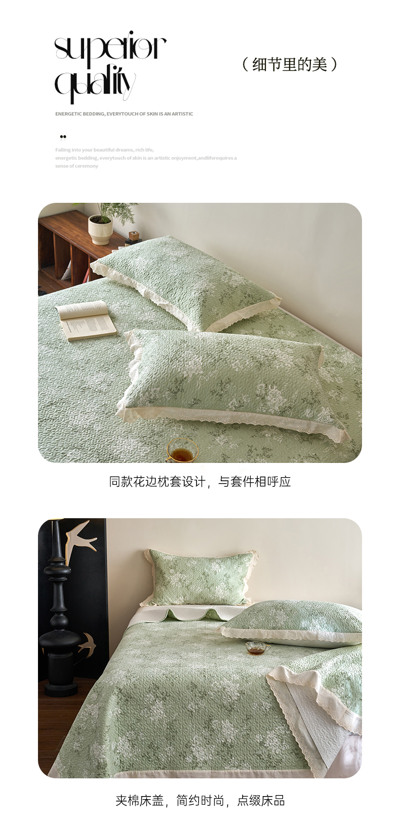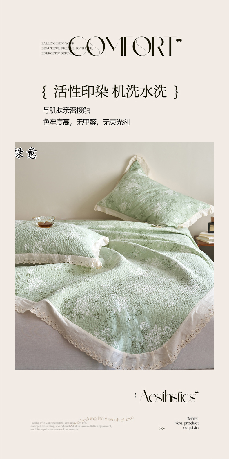 商品名称:漫仙阁家纺 2025新款热卖法式花边款加厚床盖床盖三件套 绿意