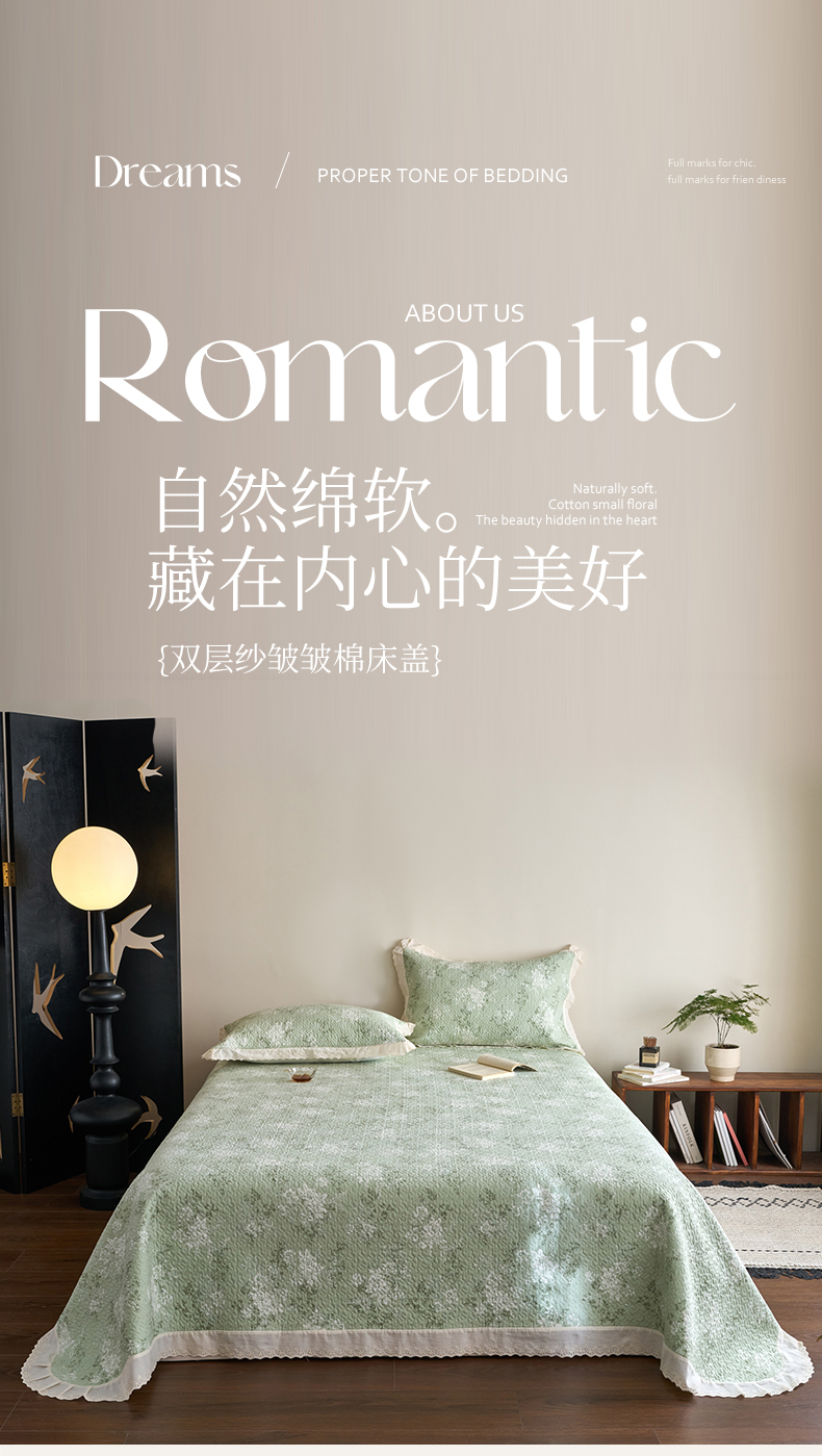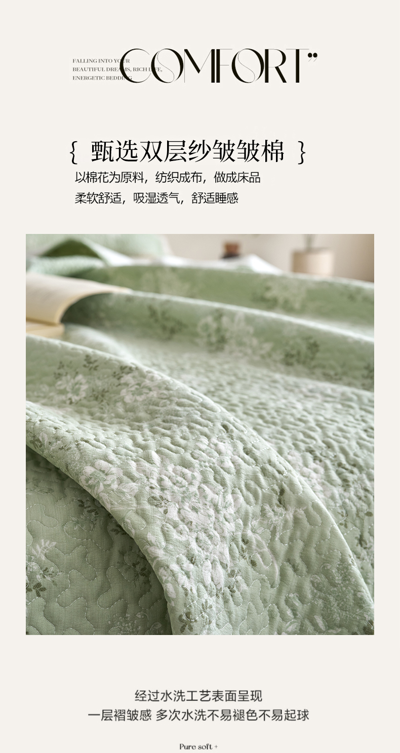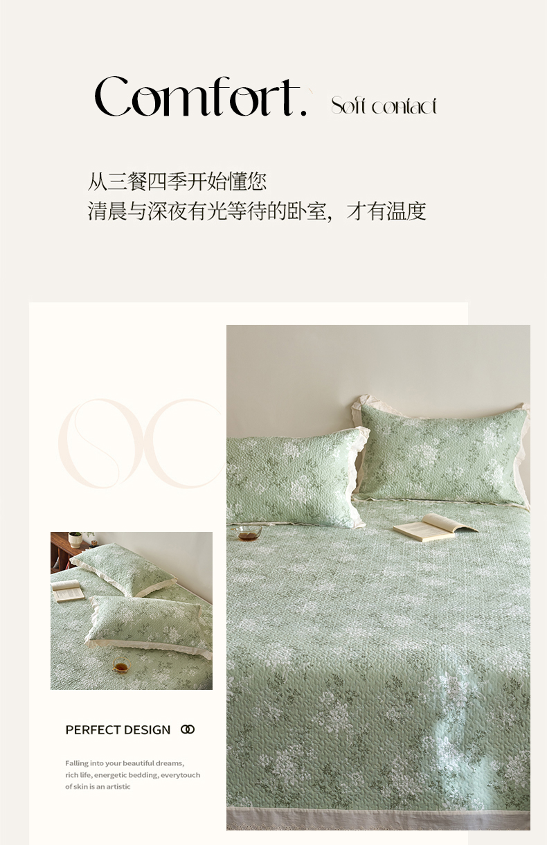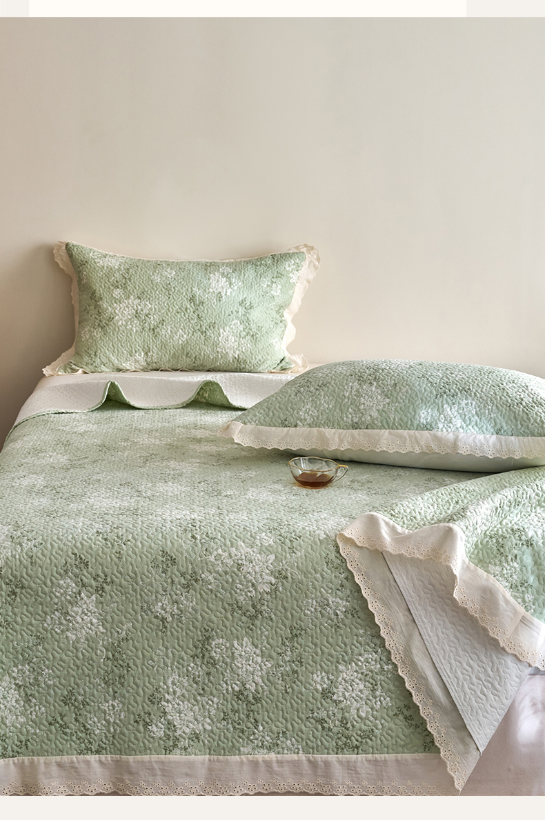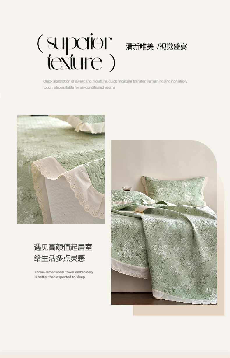 商品名称:漫仙阁家纺 2025新款热卖法式花边款加厚床盖床盖三件套 绿意