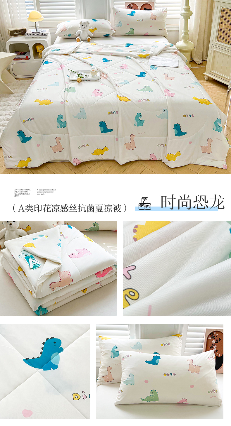 好梦来家纺(原锦茂家纺) 2026新款印花凉感丝抗菌夏被 时尚恐龙