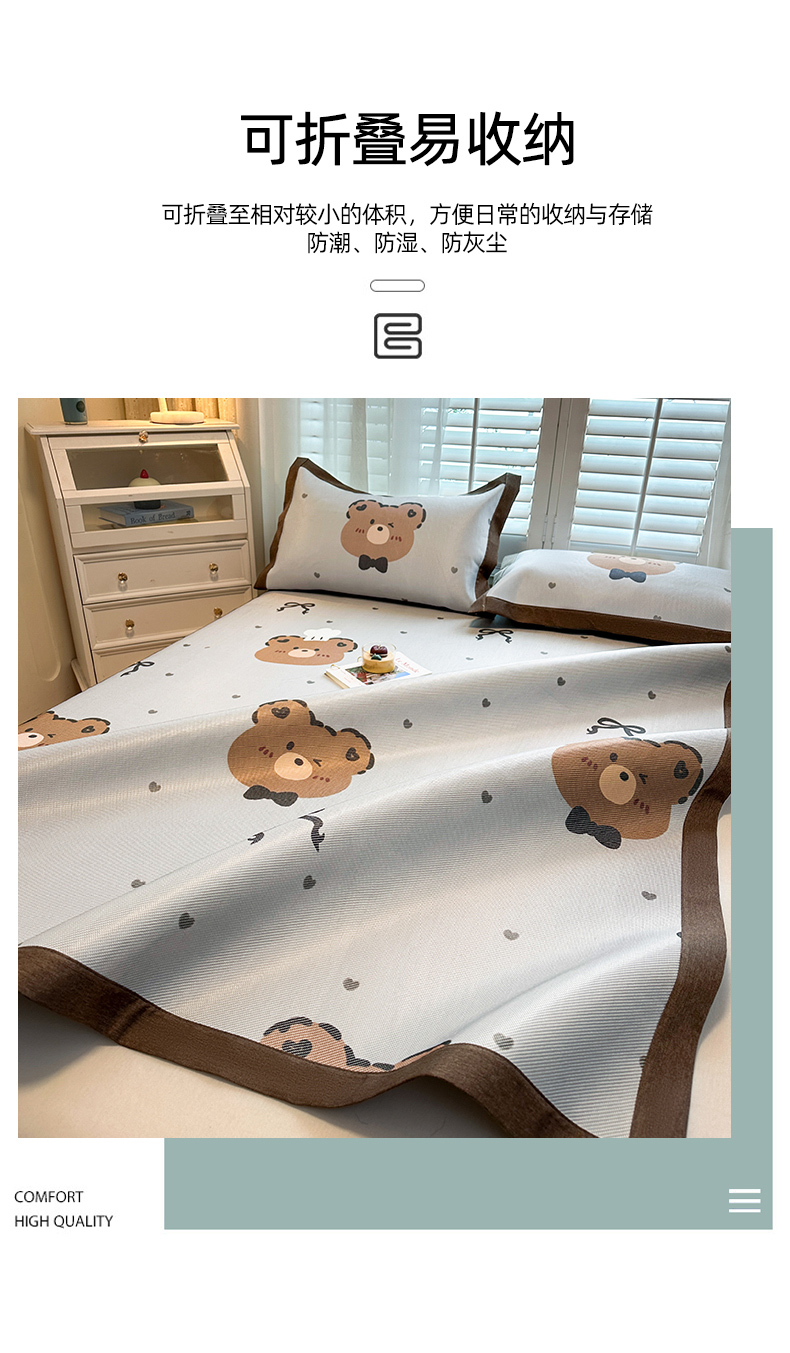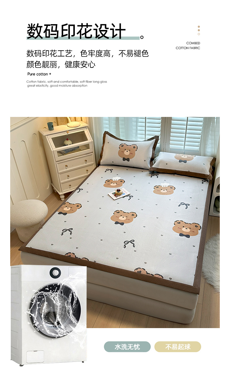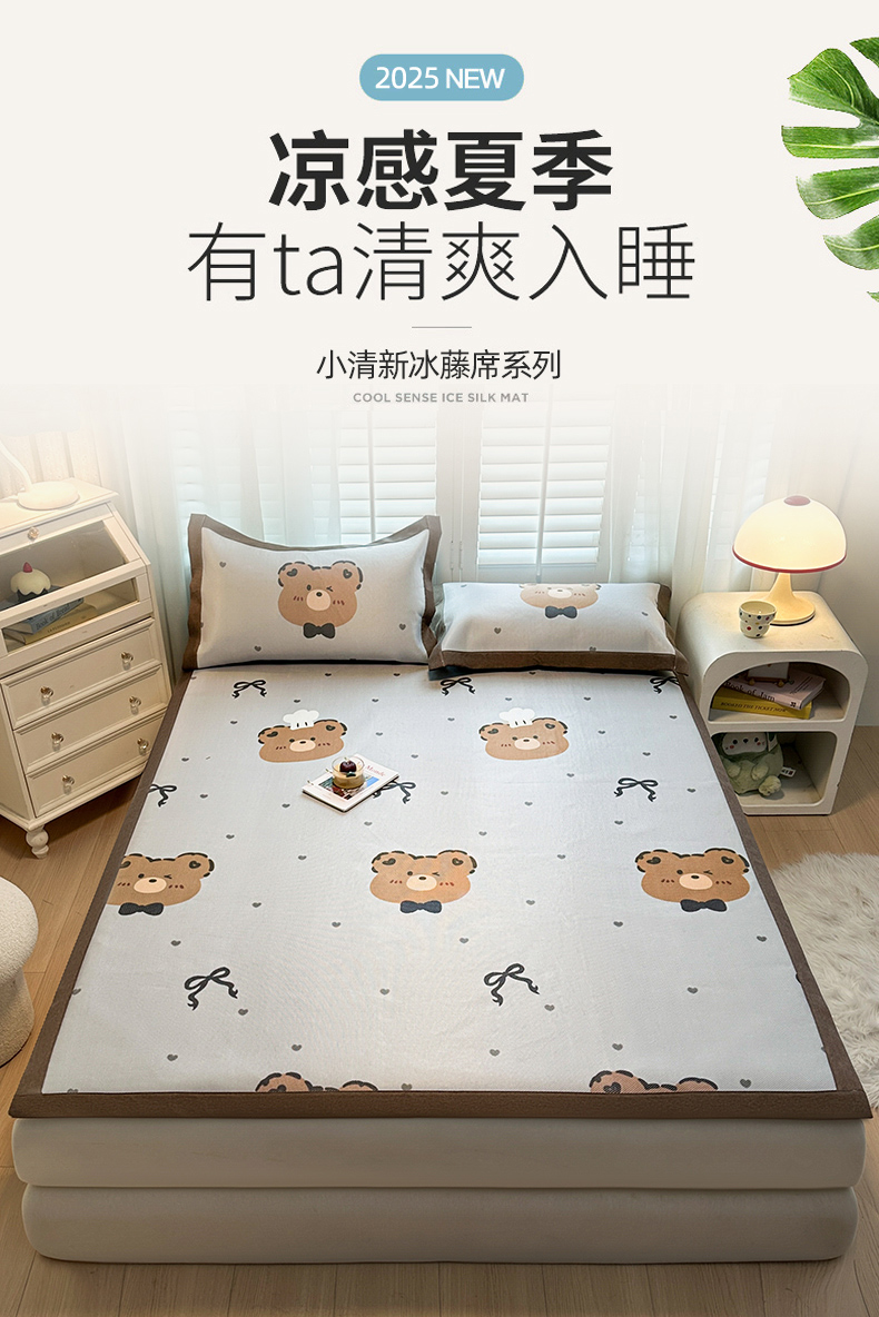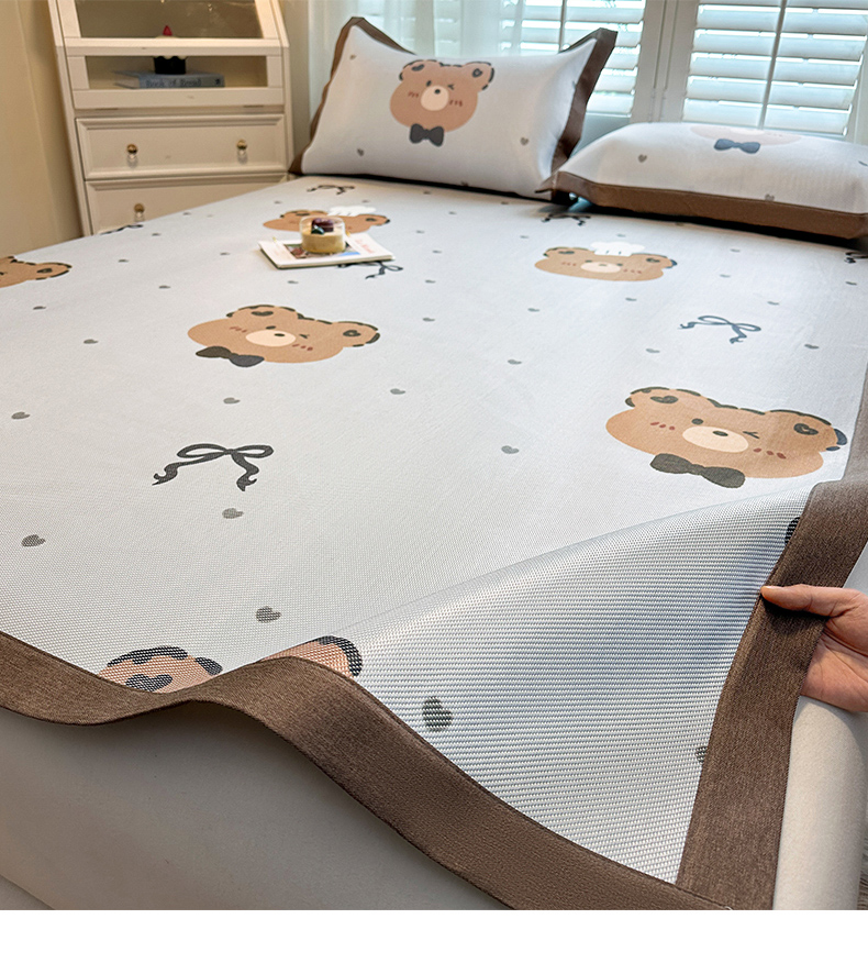 当前位置: 91家纺网 > 商品网购 > 床上用品 > 凉席 > 凉席套件 > 席佬大 2025新款高克重卡通数码印花冰藤席床席床笠款 爱心熊-平铺款