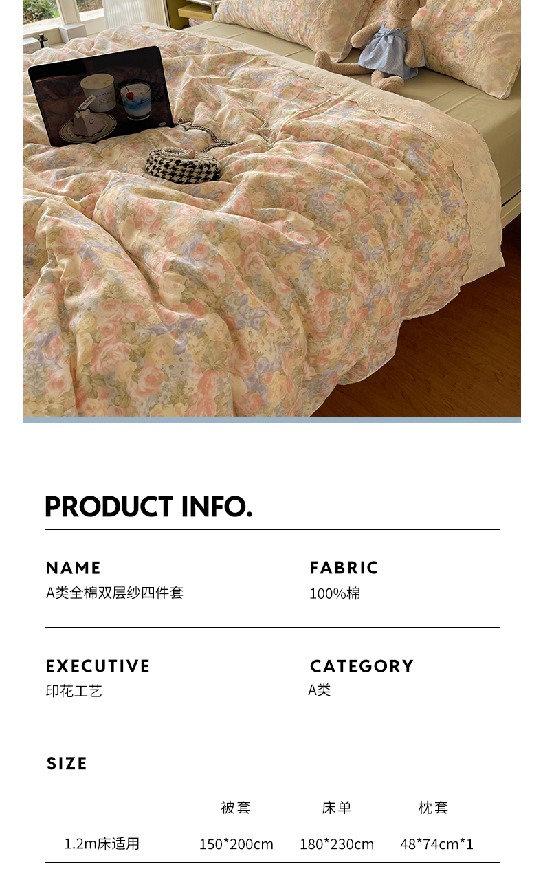 商品名称:HL原创 2025法式花边油画风全棉双层纱四件套 云水谣