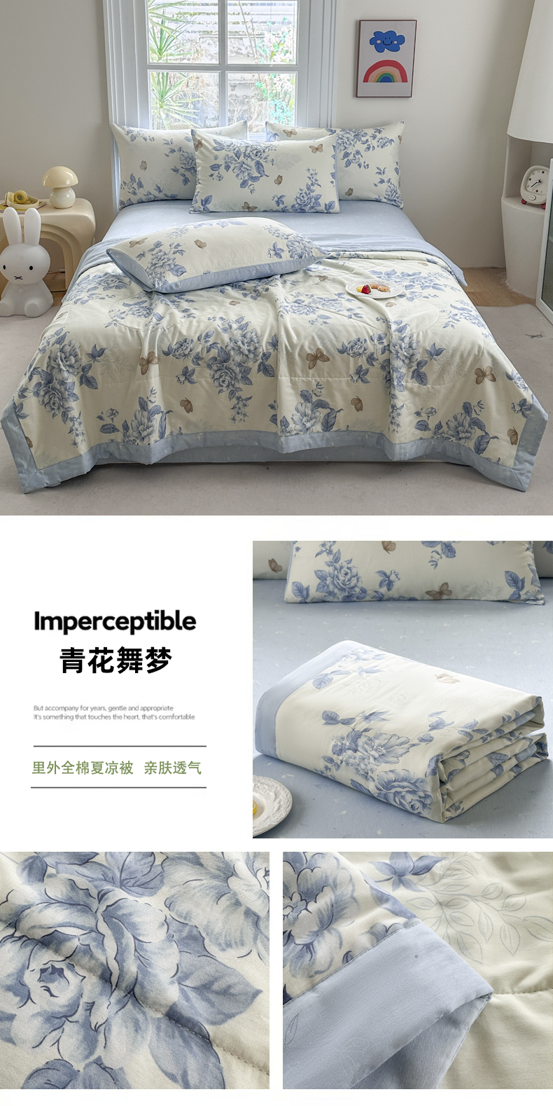 当前位置: 91家纺网 > 商品网购 > 被子 > 夏被 > 瑜珠家纺 2025新款里外全棉棉花夏被 青花舞梦