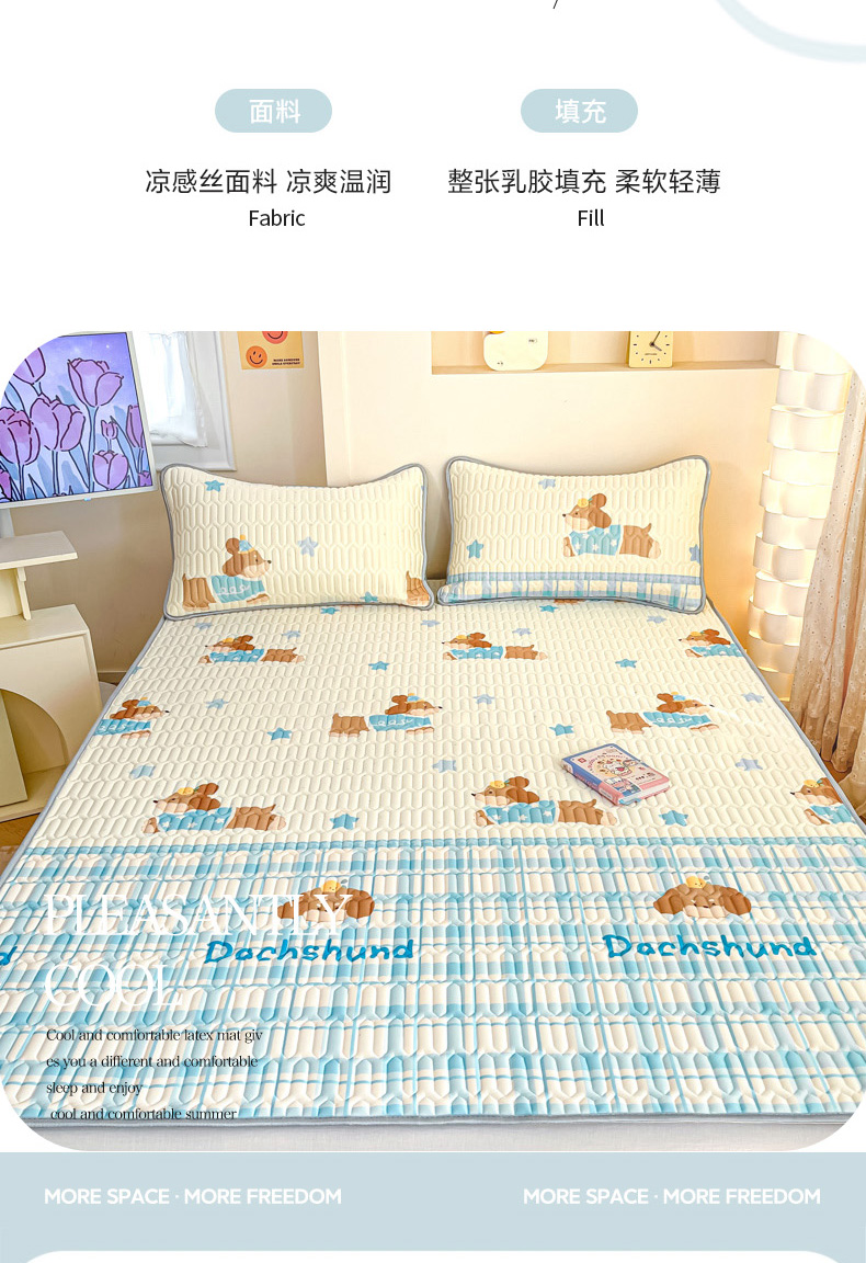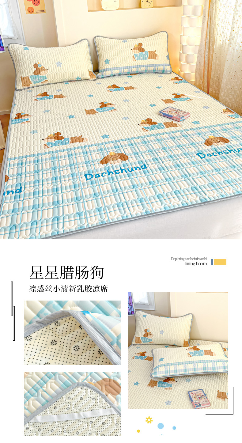 柒月家居 2025新款小清新乳胶凉席 星星腊肠狗