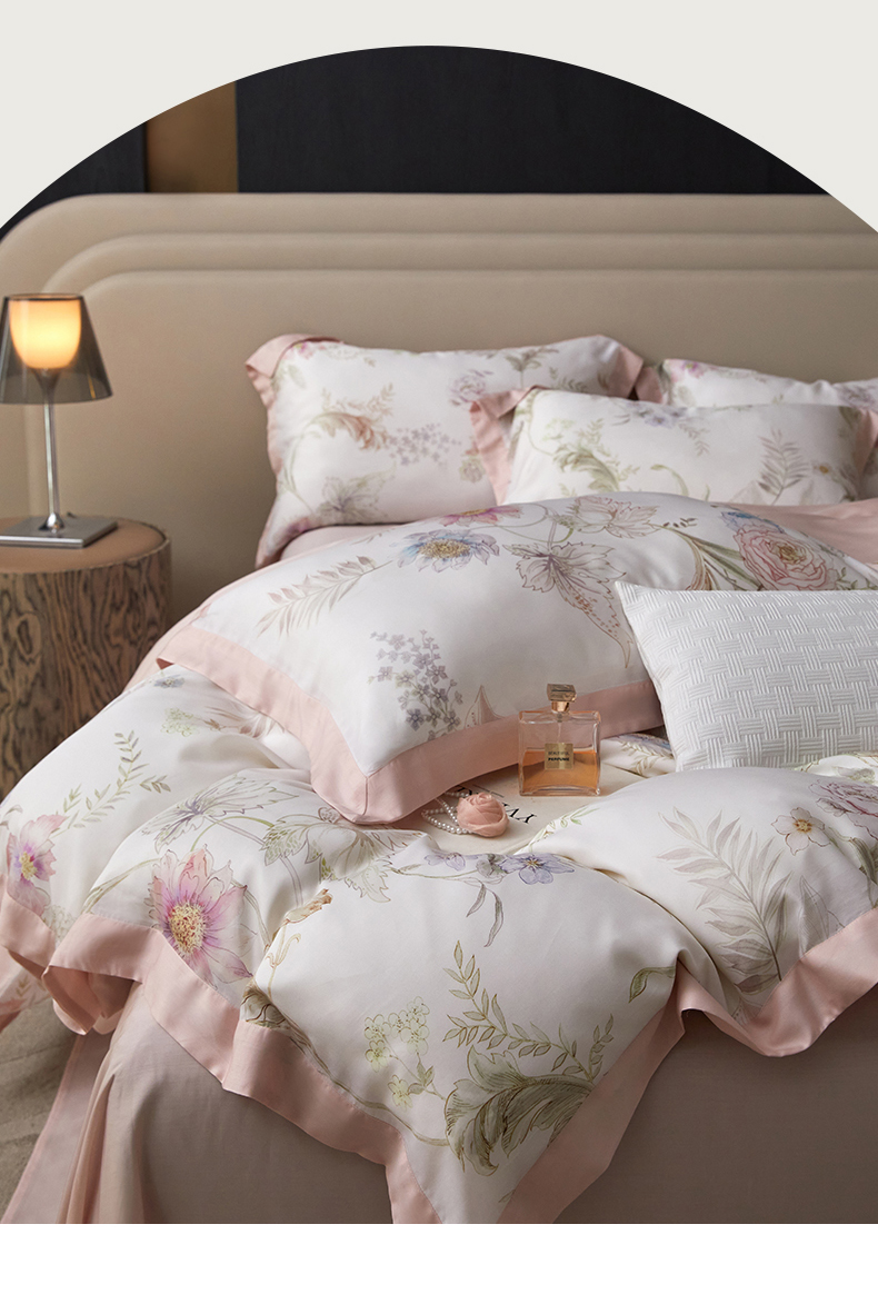 薏思家纺 2025新款50支莱赛尔天丝数码印花夏被+四件套(礼盒包装) 寻春色