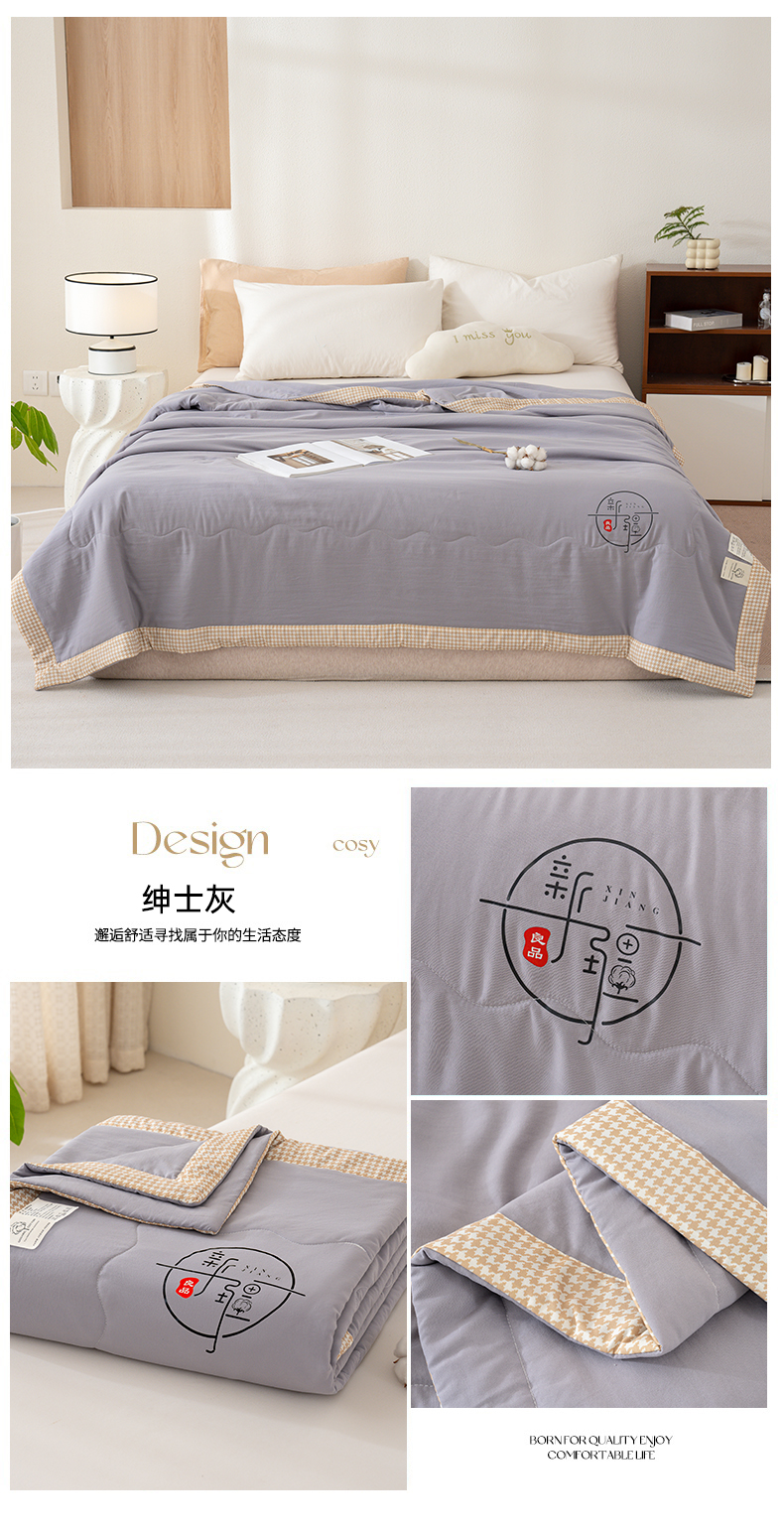 商品名称:芯恋 2025年新款无印风千鸟格水洗棉新疆棉花夏被 绅士灰