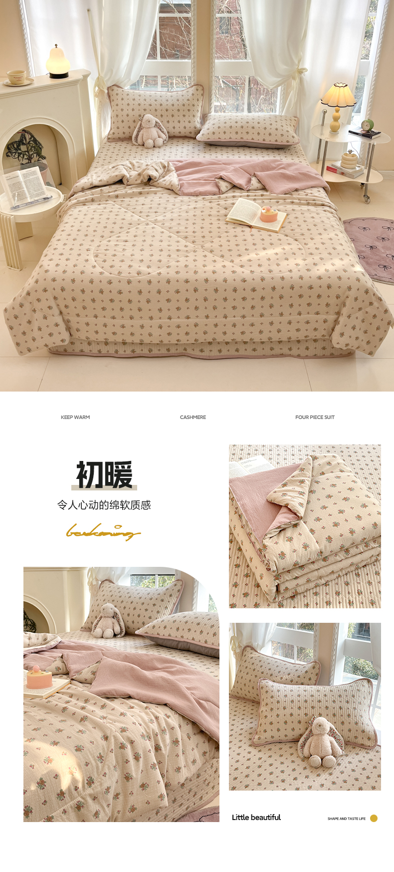 当前位置: 91家纺网 > 商品网购 > 床品套件 > 四件套 > 其它四件套 > 贝扬思家纺 2025新款云感双层纱7A抗菌夏被四件套系列 甜心兔