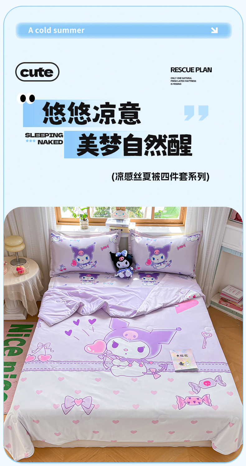 当前位置: 91家纺网 > 商品网购 > 床上用品 > 凉席 > 凉席套件 > 博雅 2025新款 三丽鸥凉感丝夏被冰丝凉席组合四件套 气球库洛米