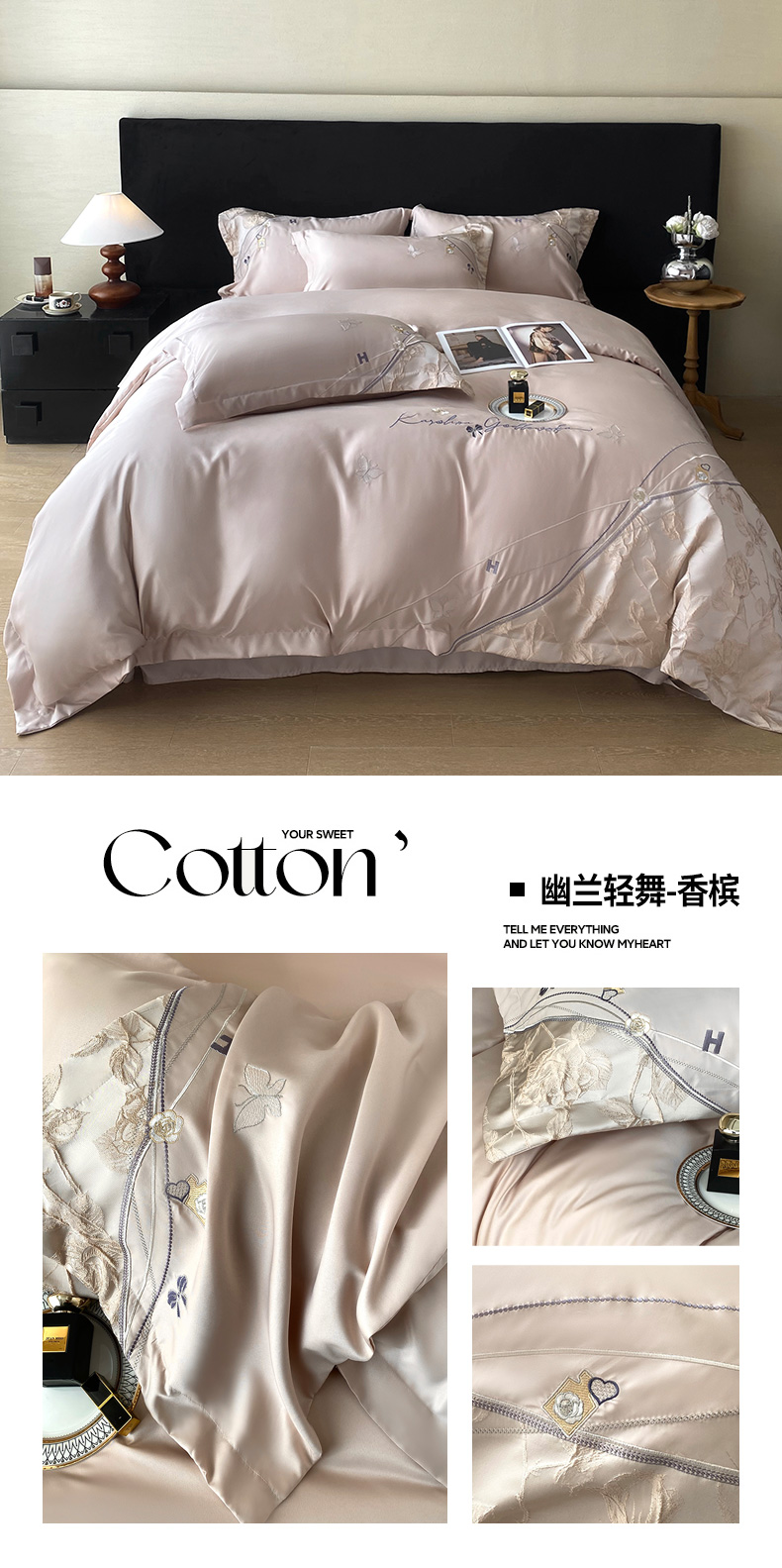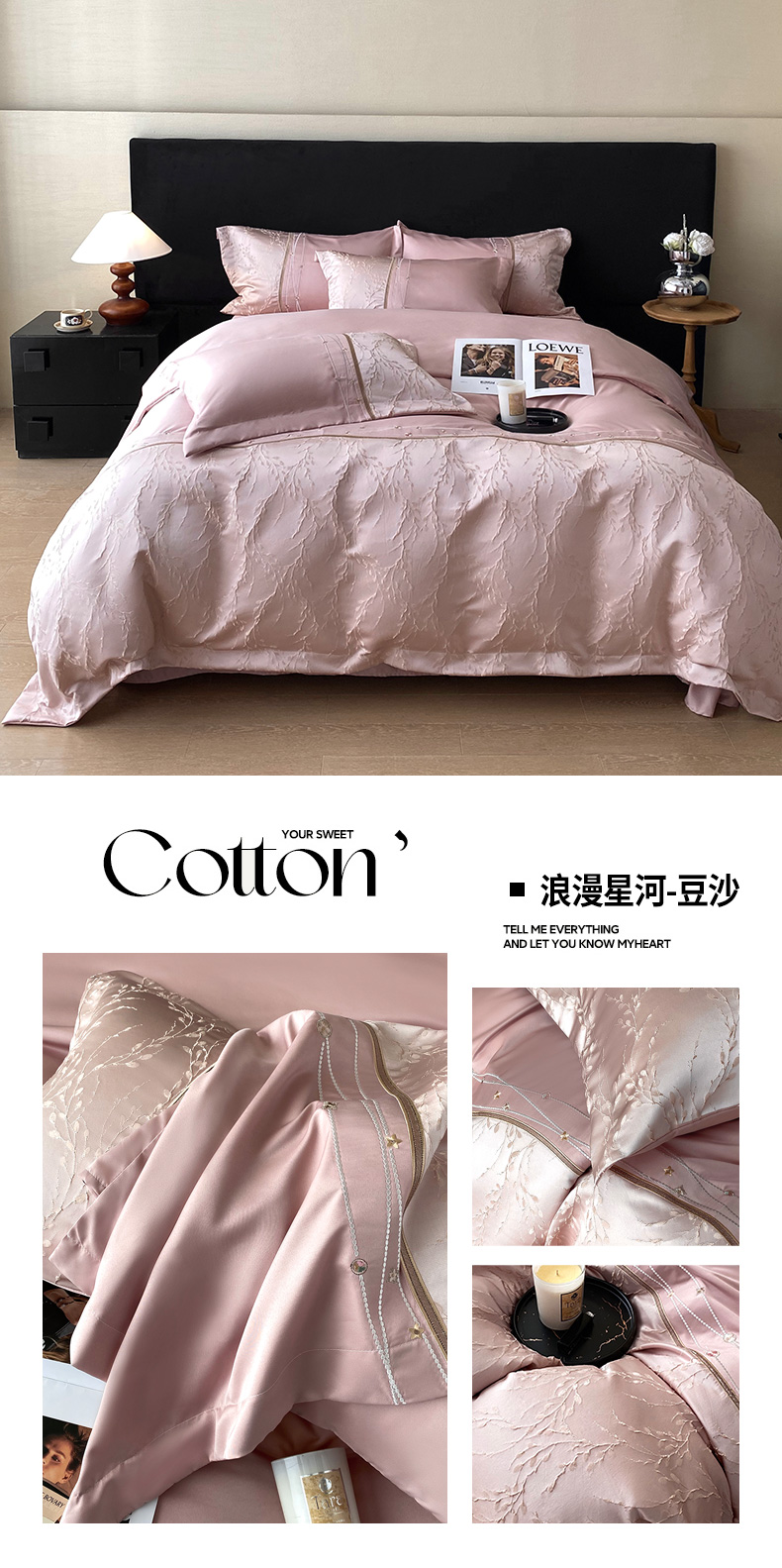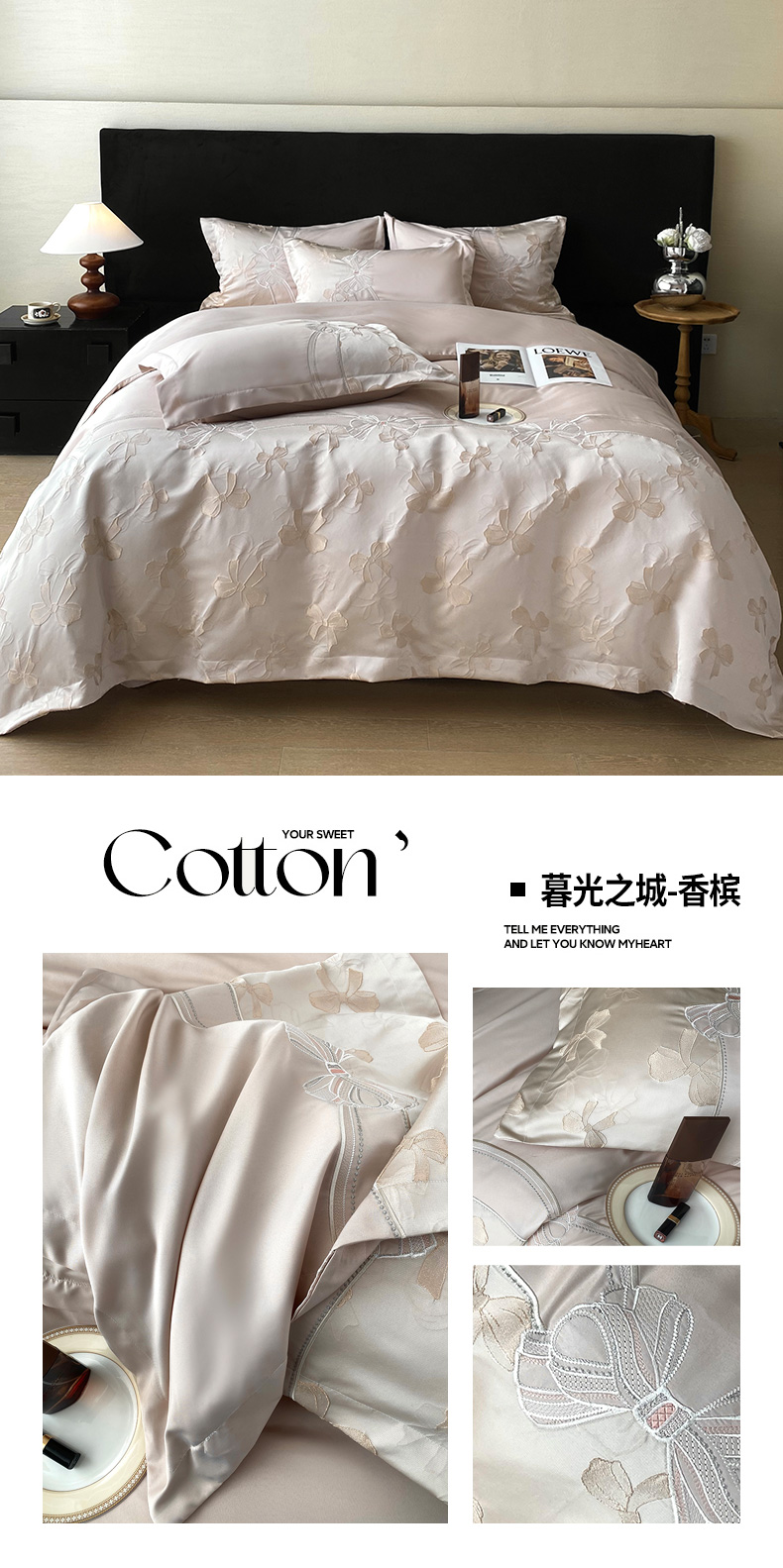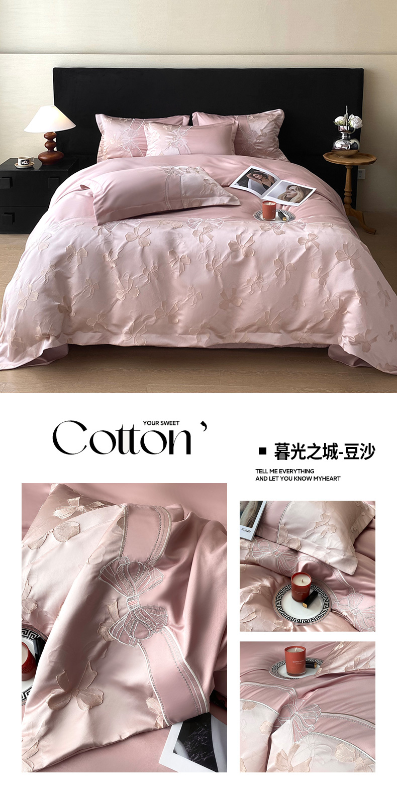 (总)优悦生活馆 2026新款全棉新疆长绒棉刺绣四件套-温情蜜意,温情蜜意-香槟,温情蜜意-白,温情蜜意-粉