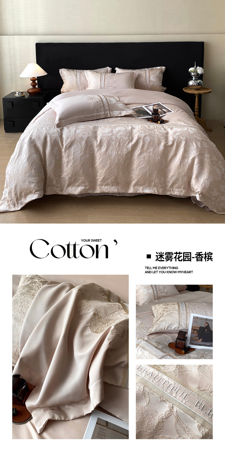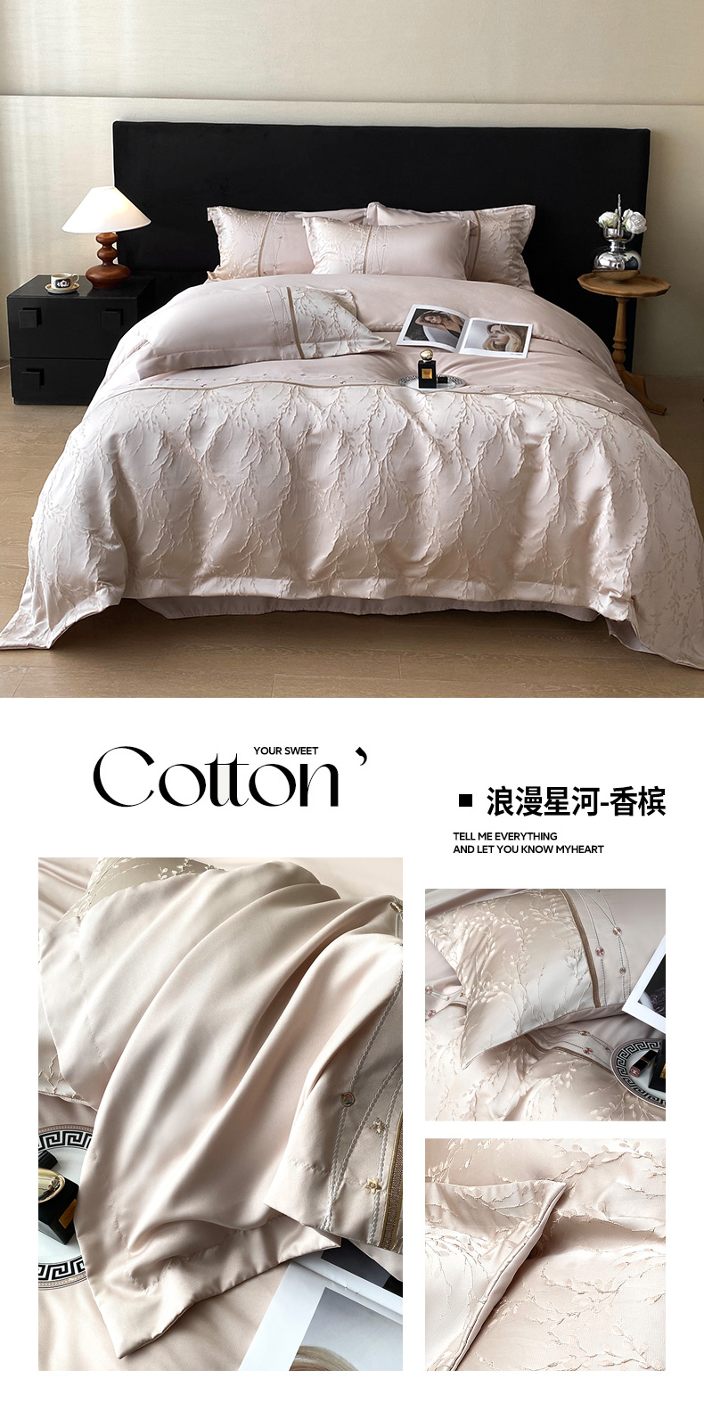 商品名称:优悦生活馆 2025新款冰丝浮雕绣花四件套 浪漫星河-香槟