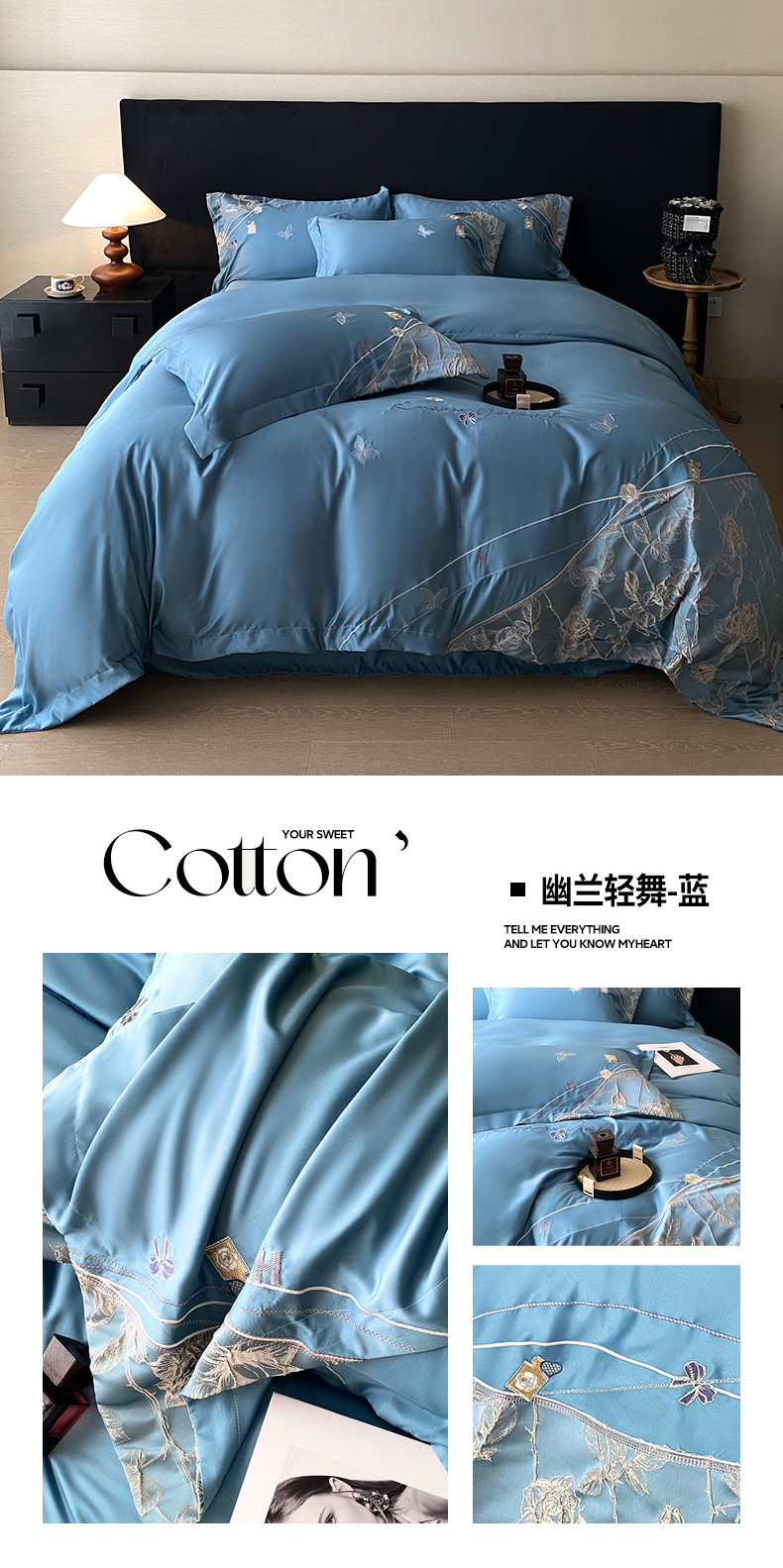 (总)优悦生活馆 2026新款全棉新疆长绒棉刺绣四件套-碟语森眠,碟语森眠-白,碟语森眠-粉,碟语森眠-蓝