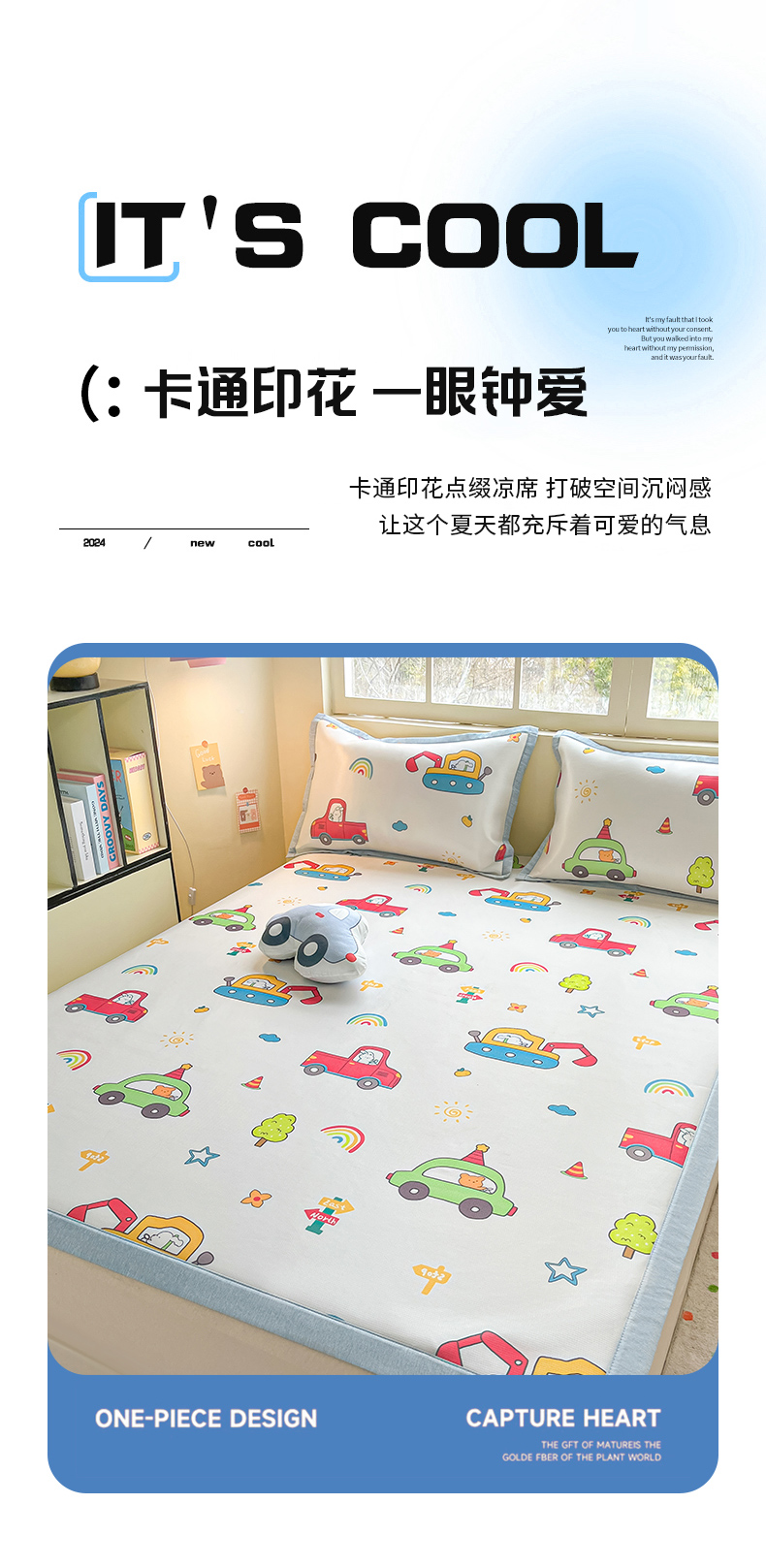 商品名称:博雅 2025新款独家版权A类大版数码印花1200D冰丝凉席 汽车派对
