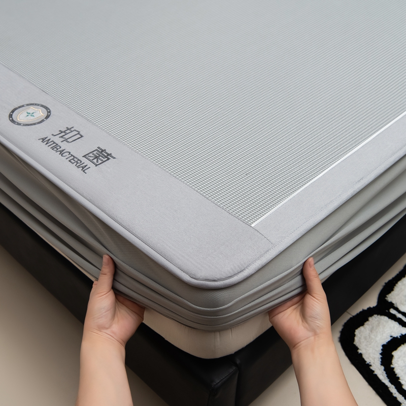 • 91家纺网 家纺一手货源 找家纺 水云缦 2025新款抗菌碳光冰丝席 床笠款-绅士灰