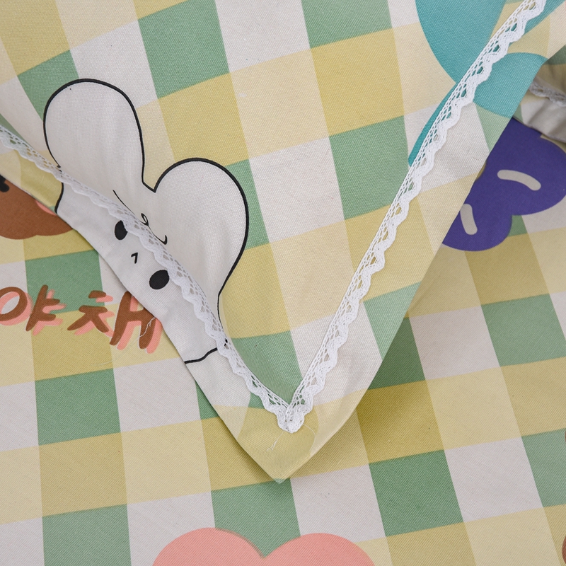 商品名称:仟网汇 2025全棉老粗布蕾丝花边三件套(无纺布手提包装) 彩虹熊