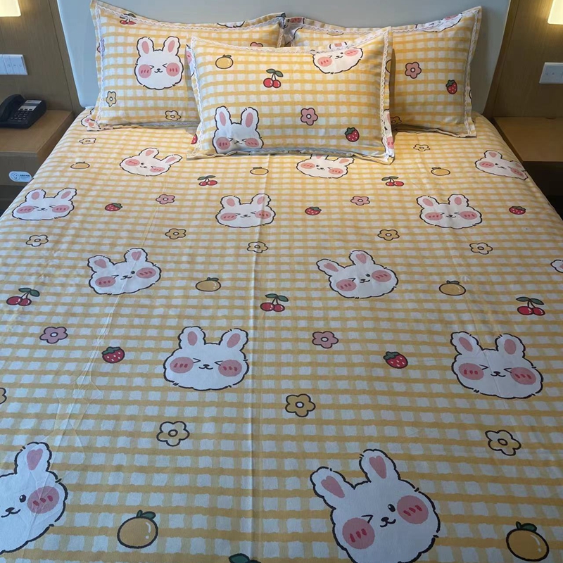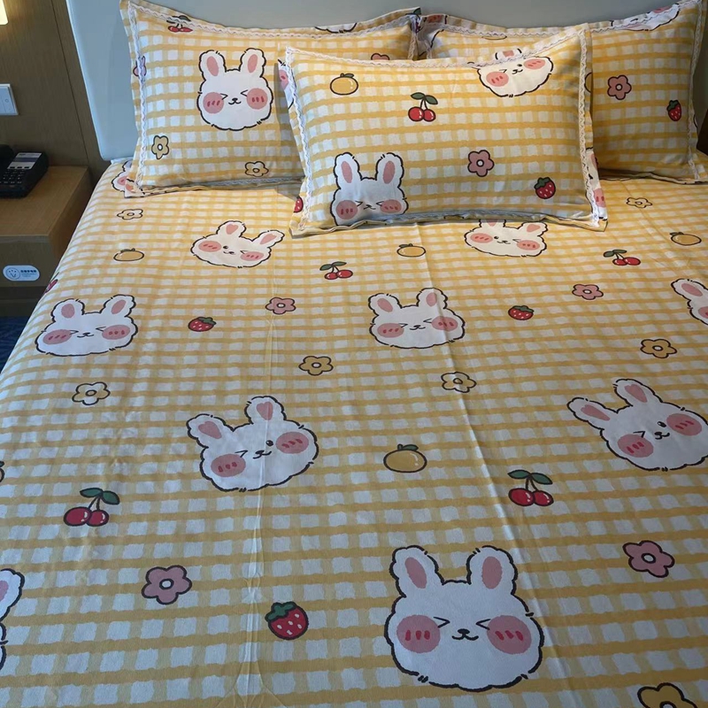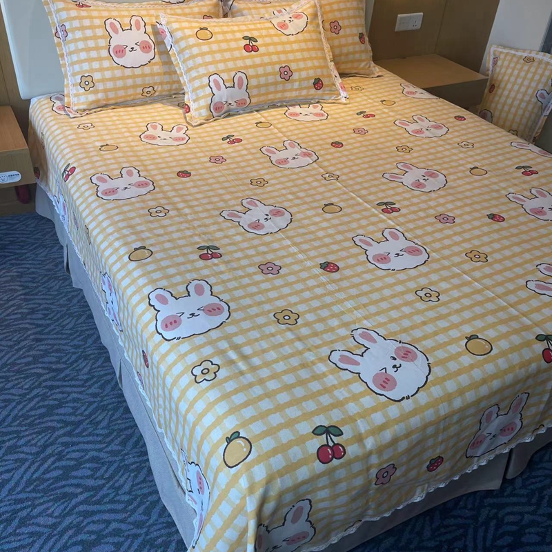 商品名称:仟网汇 2025全棉老粗布蕾丝花边三件套(无纺布手提包装) 水果兔