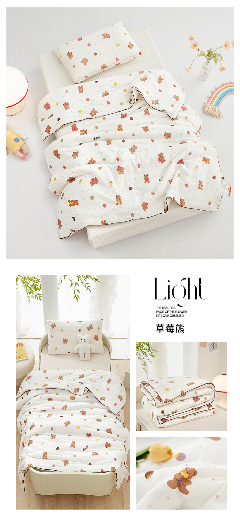 商品名称:丝涟家居 2025新款A类双面针织棉卡通小清新滚绳工艺夏被草莓熊