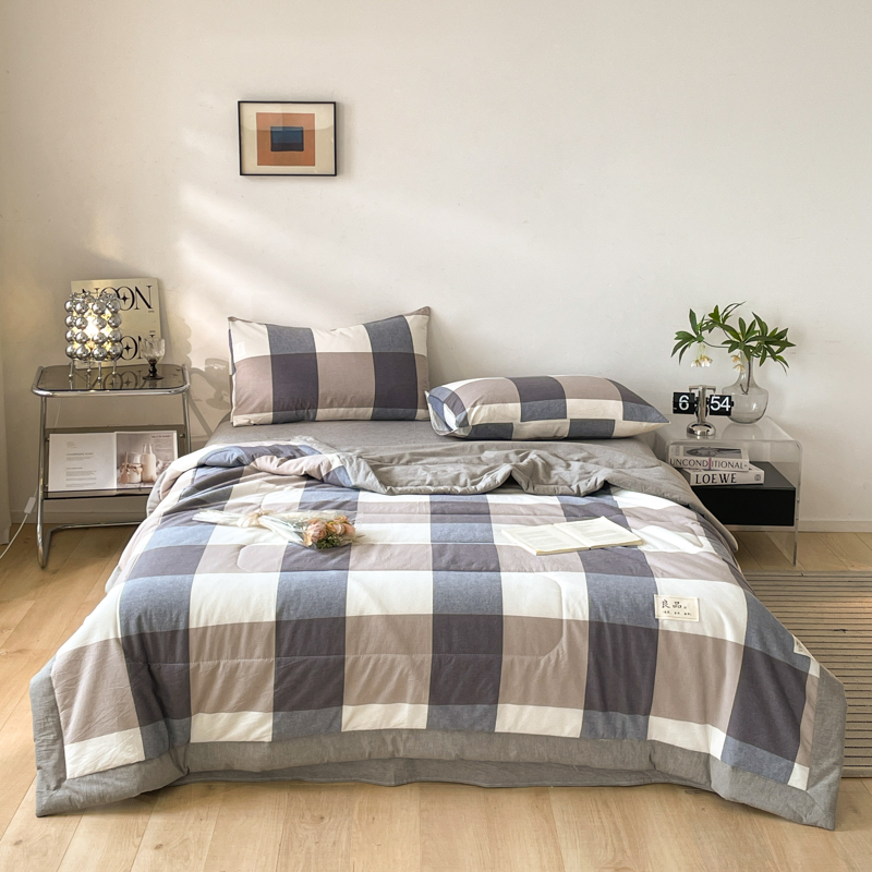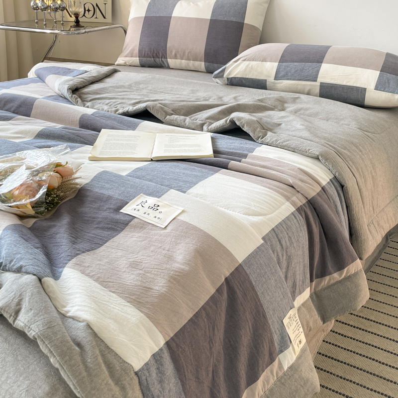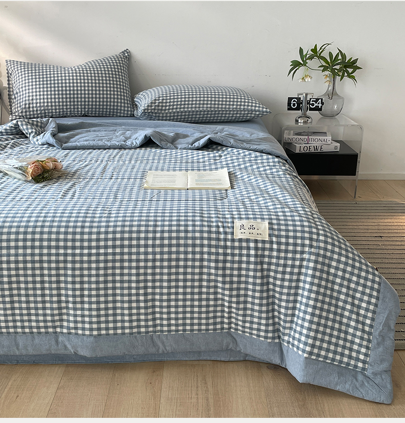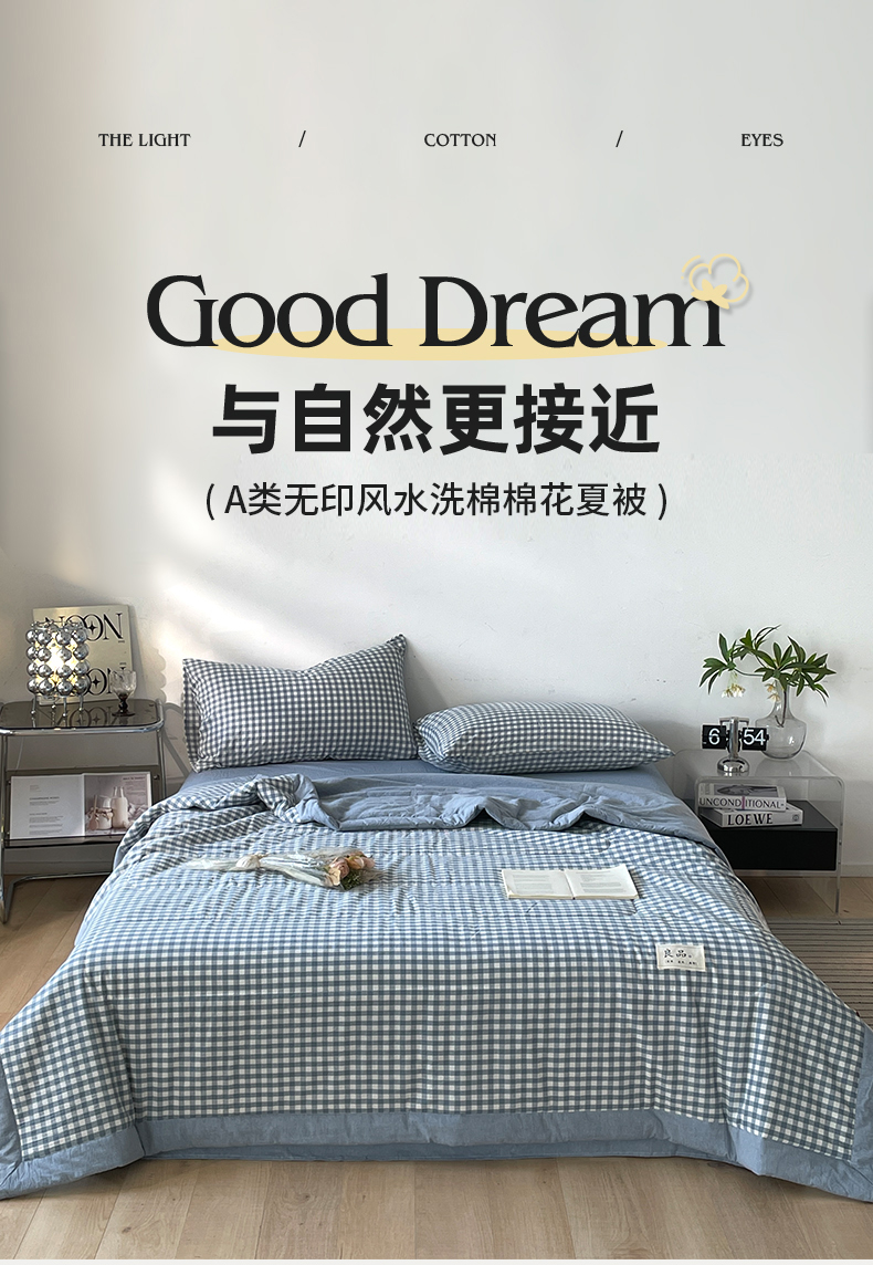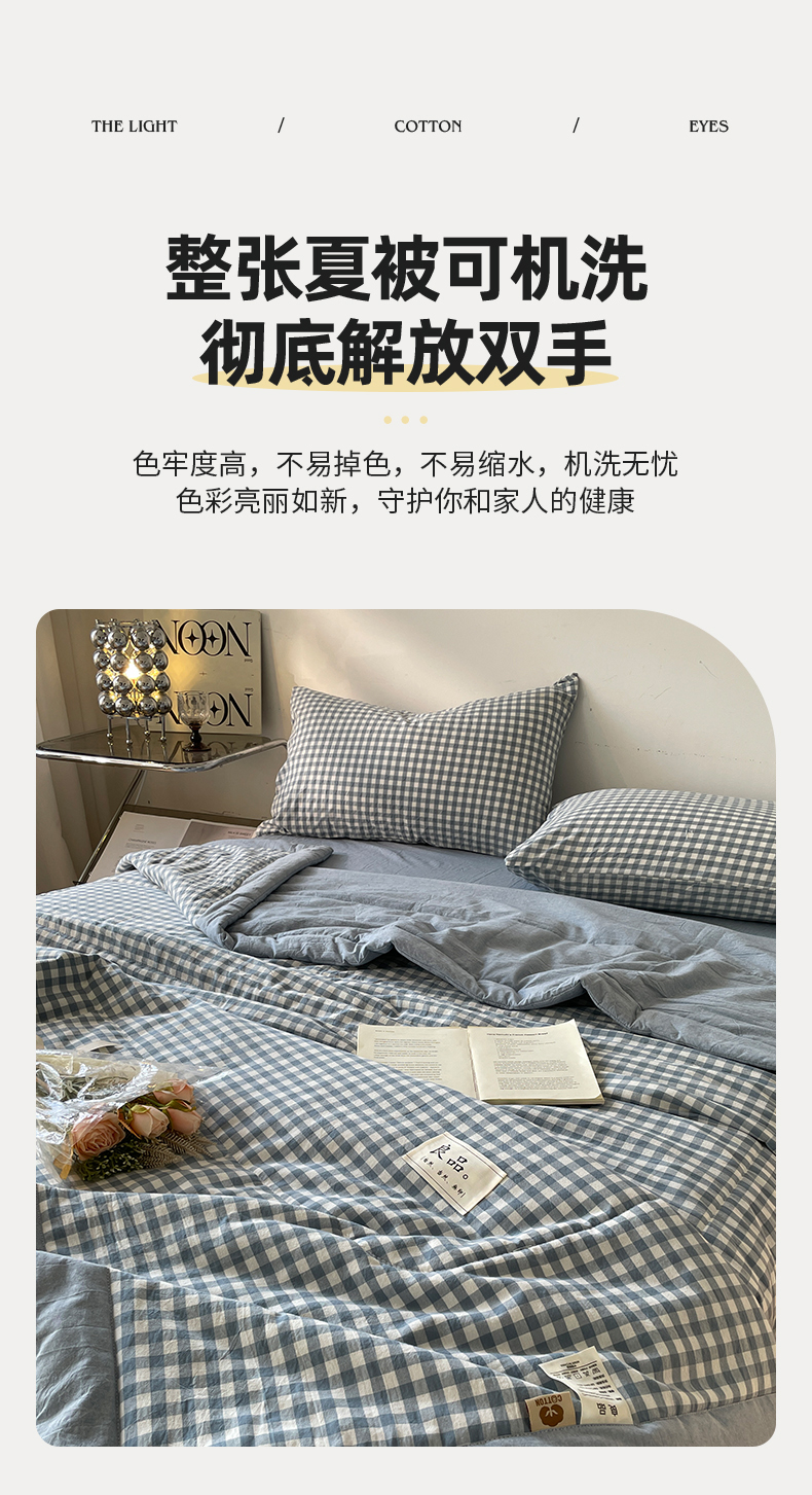 商品名称:2025梦初语新款无印风棉花夏被 蓝灰大格