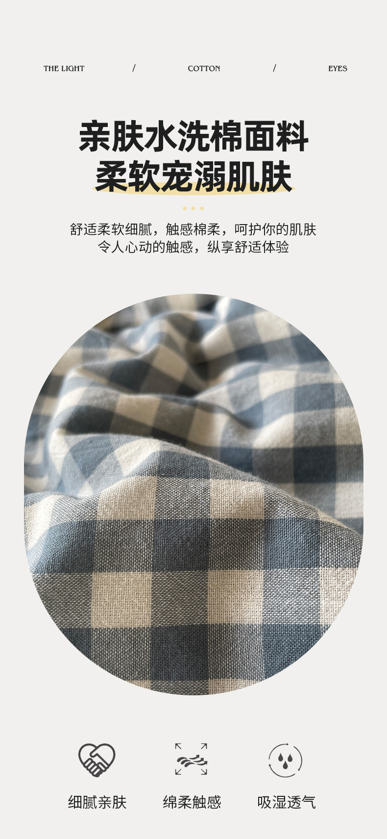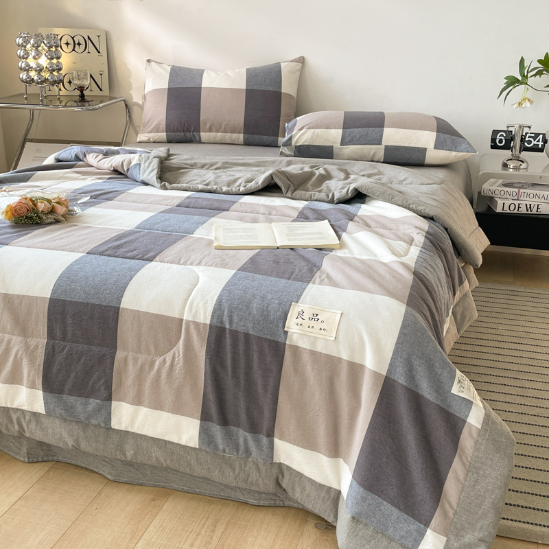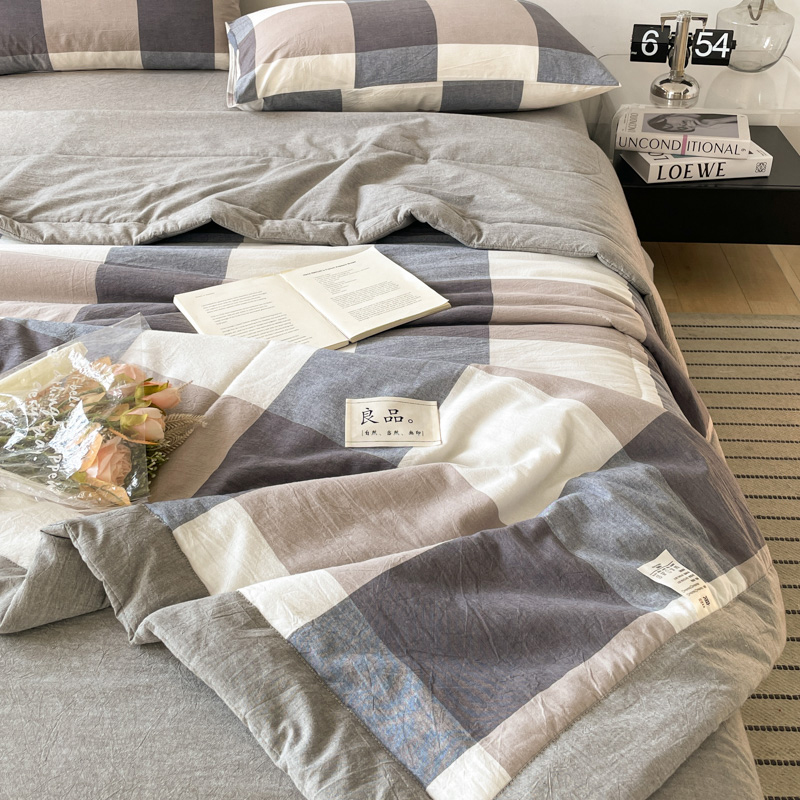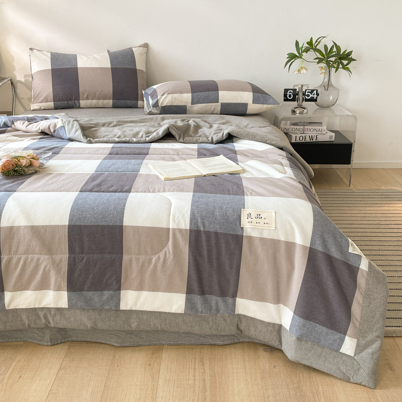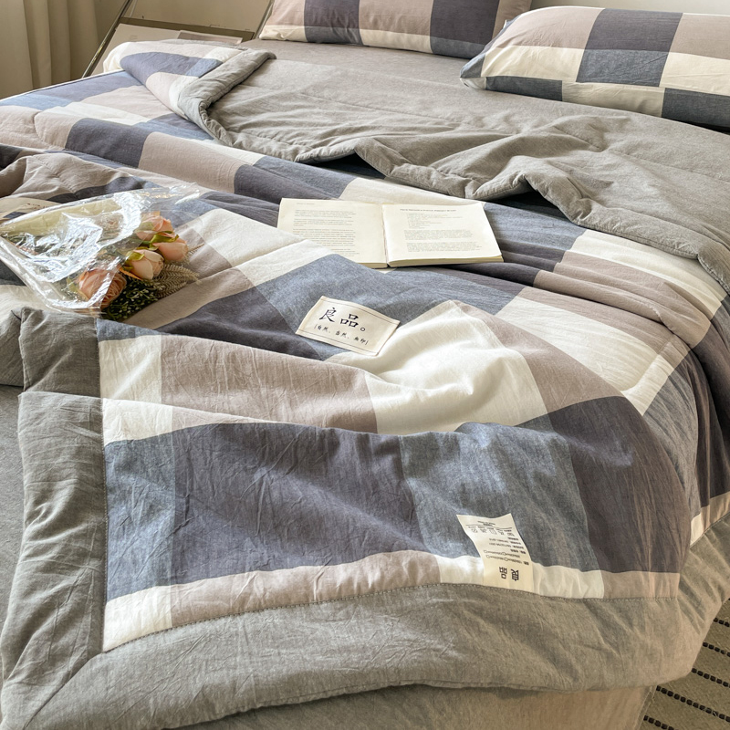 商品名称:2025梦初语新款无印风棉花夏被 蓝灰大格
