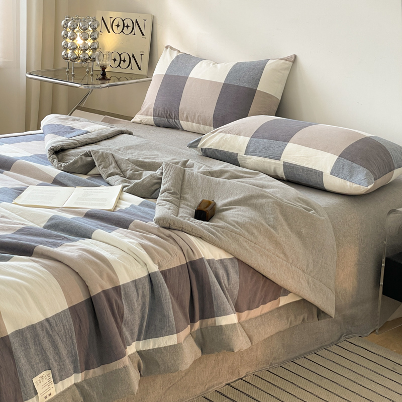 2025梦初语新款无印风棉花夏被 蓝灰大格