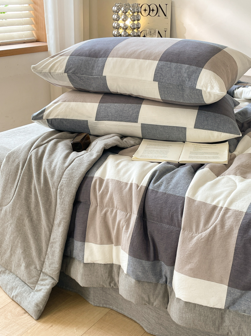 (总)梦初语 2025新款A类水洗棉超柔格子系列学生宿舍上下铺三件套套件,灰中格,咖小格,蓝大格,蓝小格,绅士格,温馨格